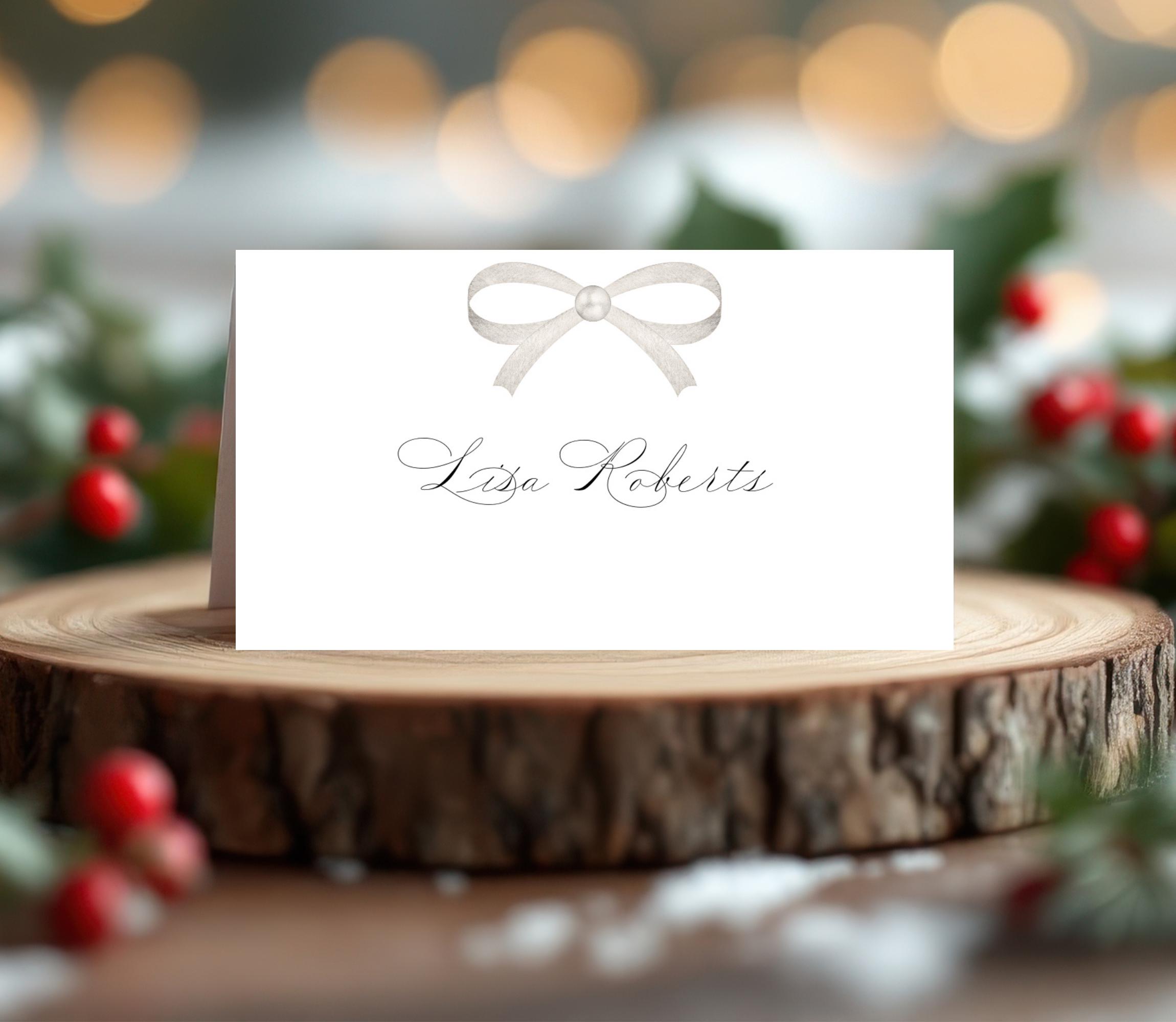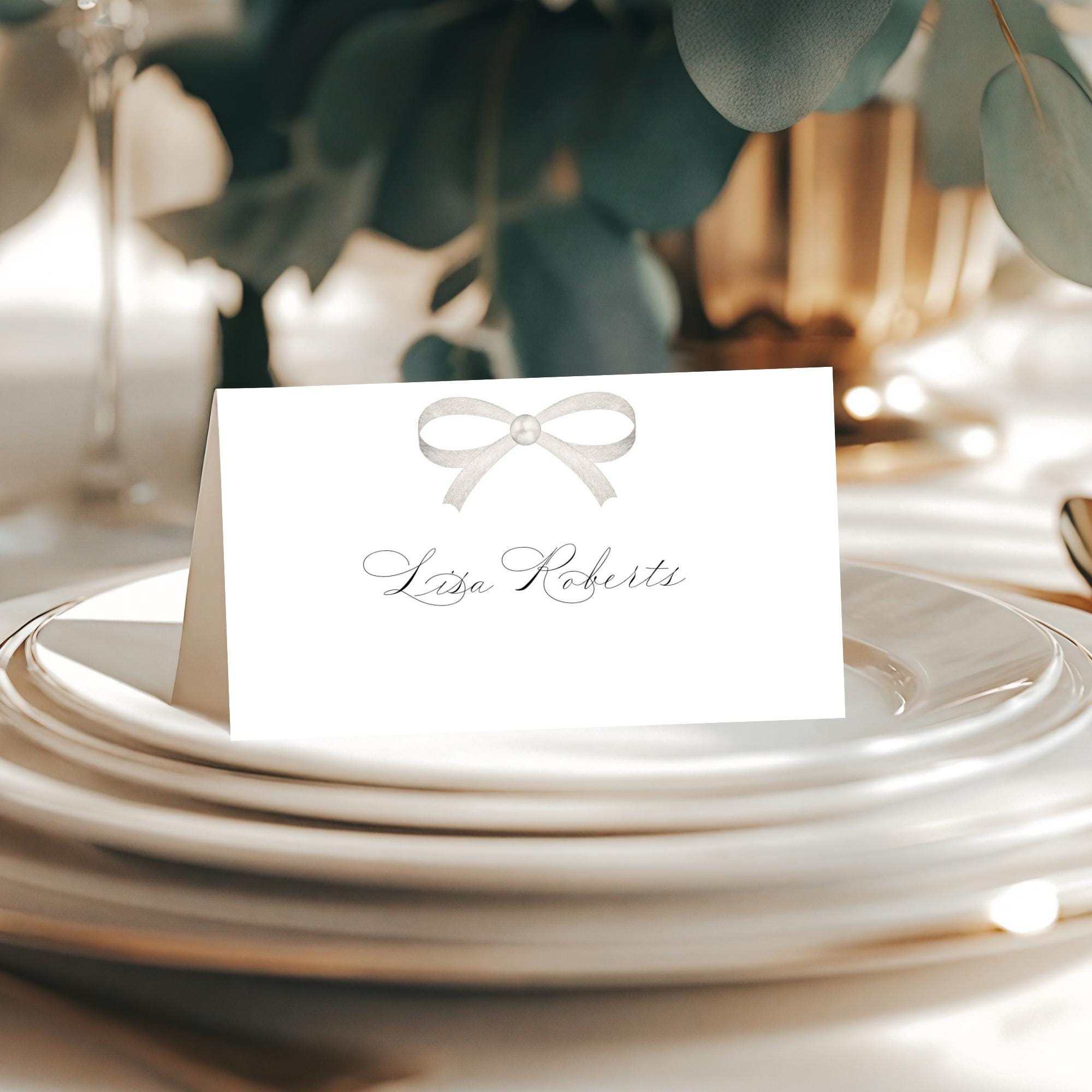Pearl Bow Wedding Name Place Card Template. An Instant download digital file for you to edit in your web browser with Templett straight after your purchase. Once personalized you are ready to print.