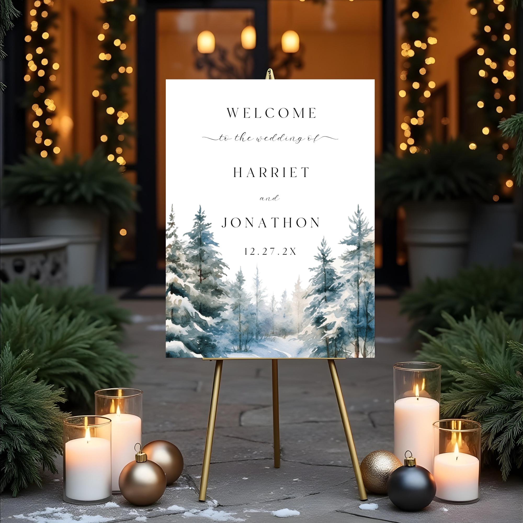 Winter Wedding Welcome Sign Template. An Instant download digital file for you to edit in your web browser with Templett straight after your purchase. Once personalized you are ready to print.