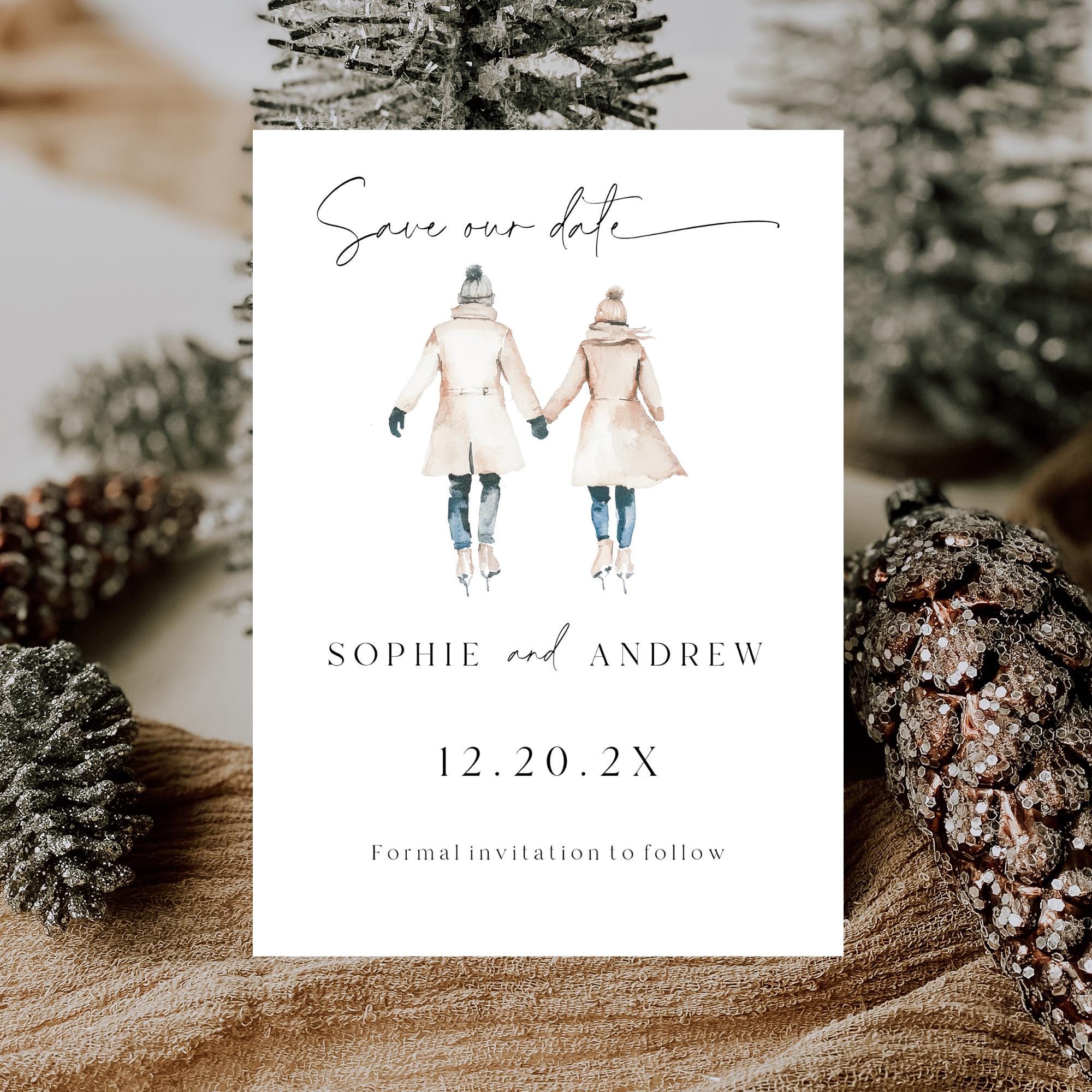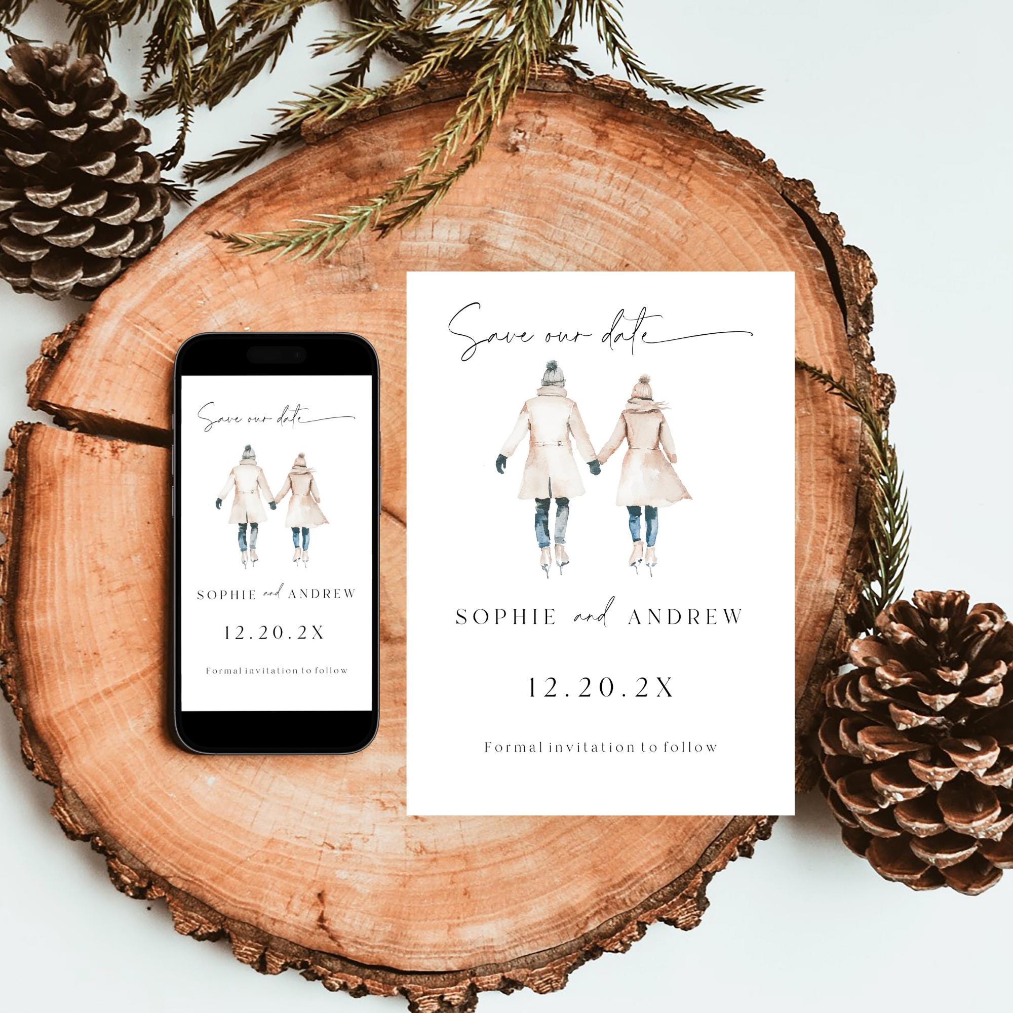 Winter Wedding Save Our Date Invitation Template. An Instant download digital file for you to edit in your web browser with Templett straight after your purchase. Once personalized you are ready to print.