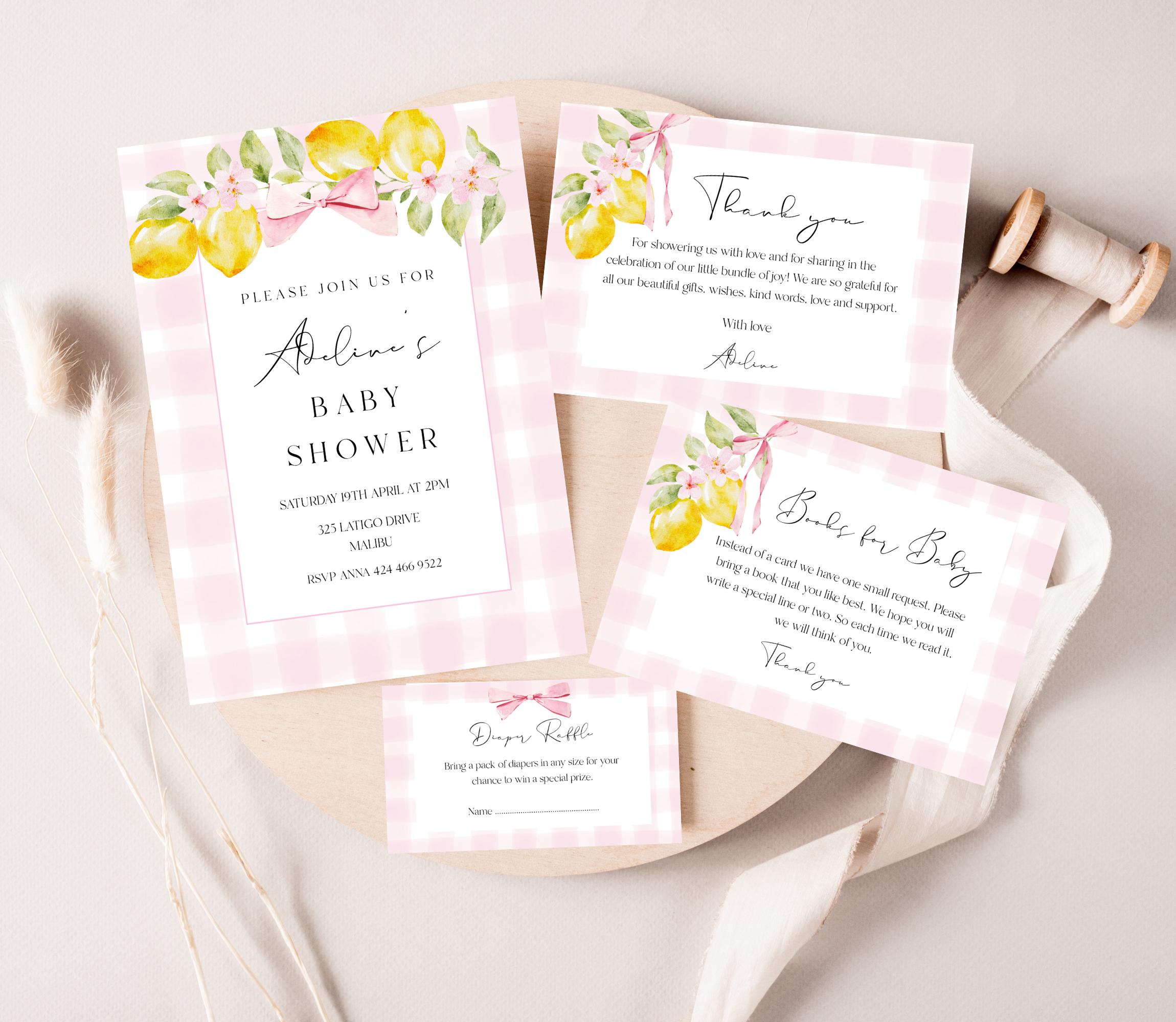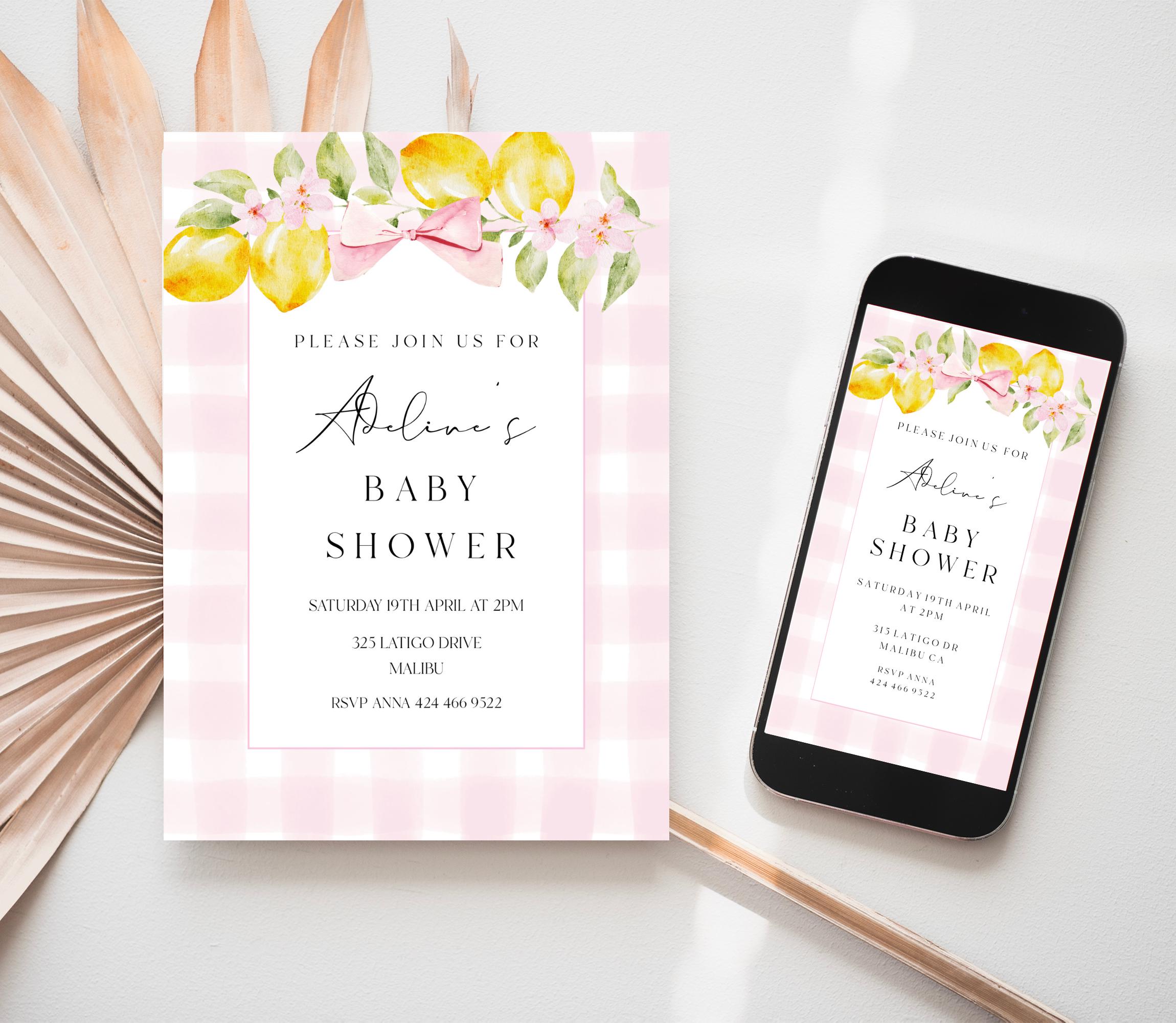 Lemons Baby Shower Invitation Template Set. An Instant download digital file for you to edit in your web browser with Templett straight after your purchase. Once personalized you are ready to print.