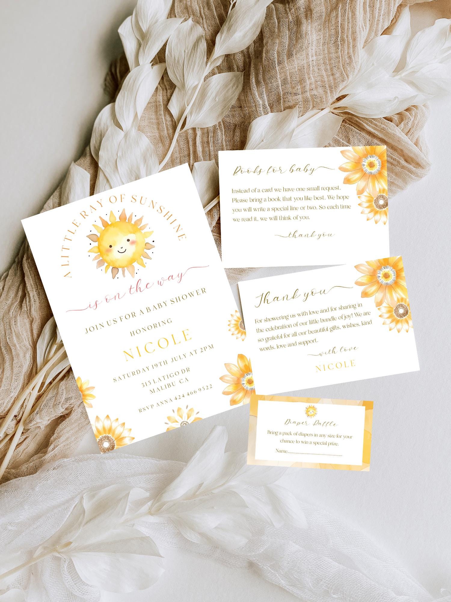Ray Of Sunshine Baby Shower Invitation Template. An Instant download digital file for you to edit in your web browser with Templett straight after your purchase. Once personalized you are ready to print.