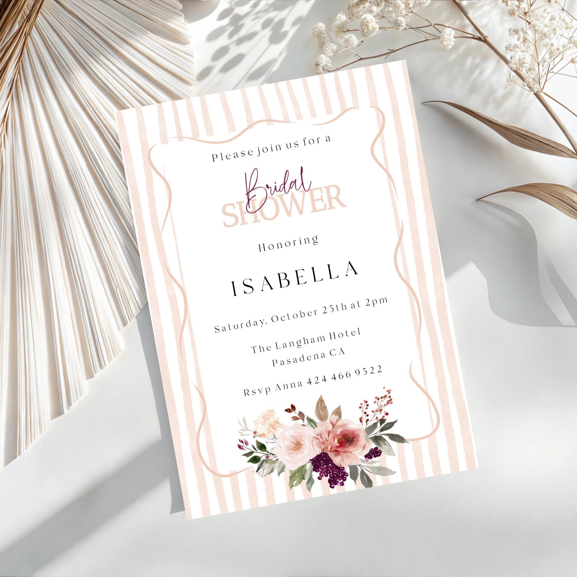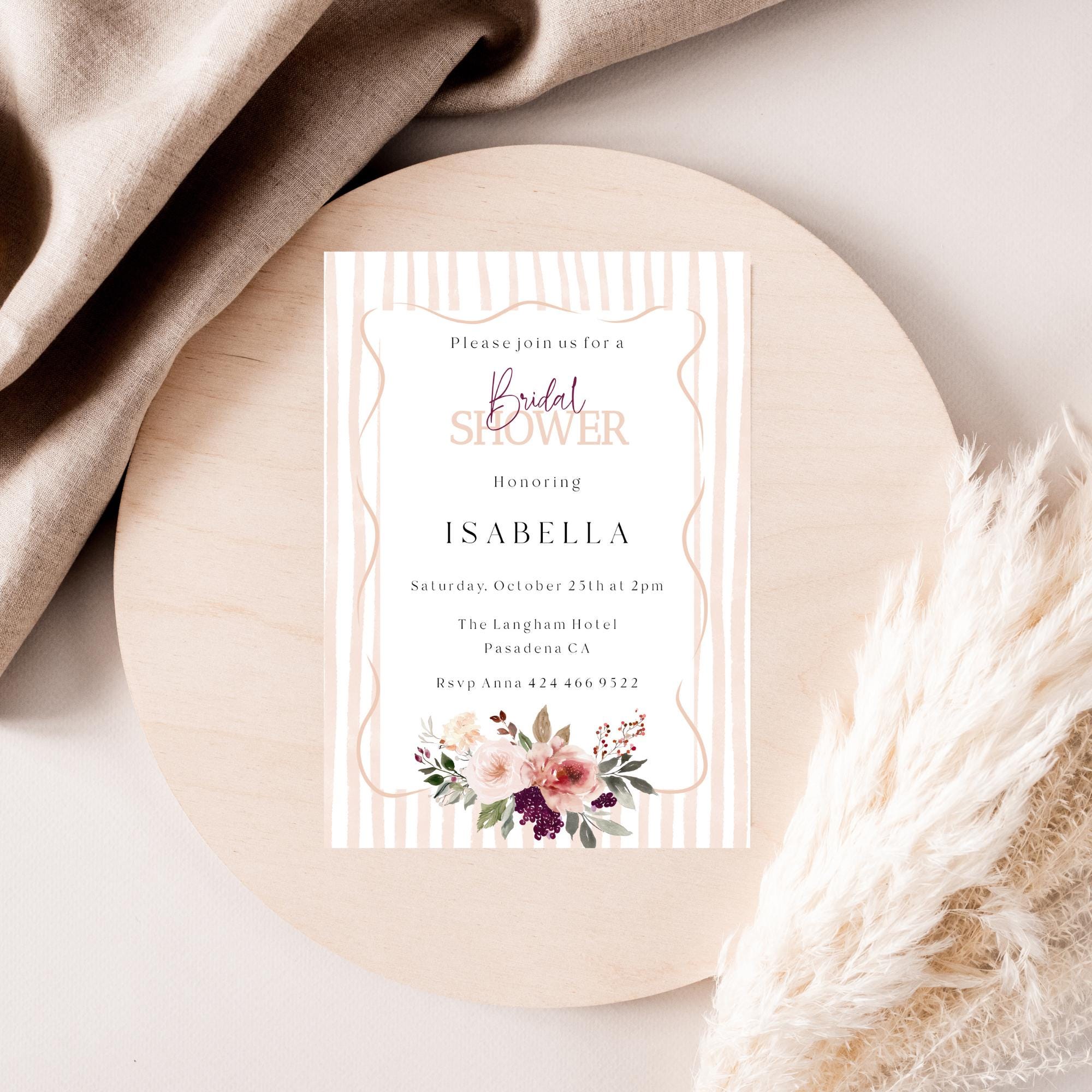 Fall Blush Bridal Shower Invitation Template. An Instant download digital file for you to edit in your web browser with Templett straight after your purchase. Once personalized you are ready to print.