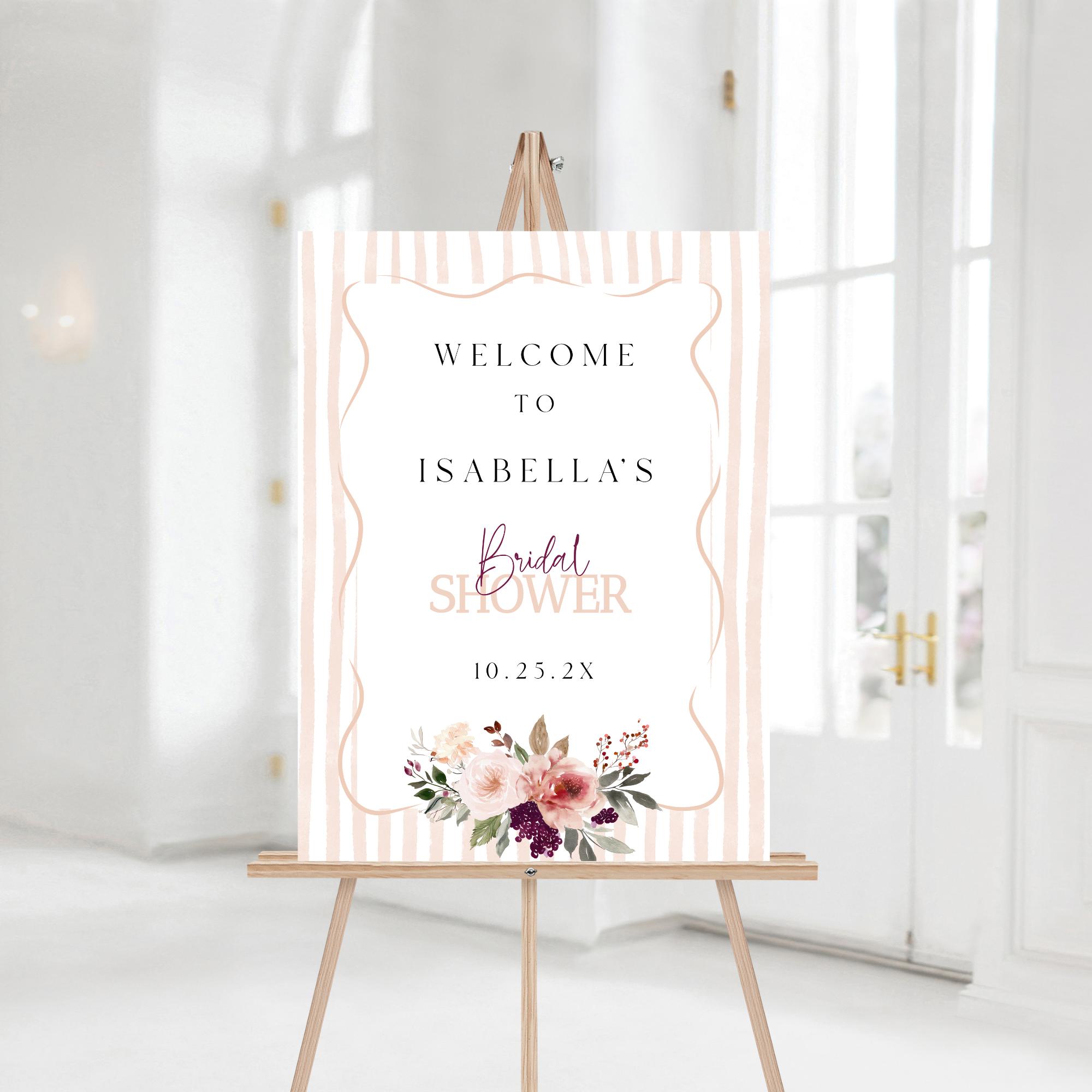 Fall Blush Bridal Shower Welcome Sign Template. An Instant download digital file for you to edit in your web browser with Templett straight after your purchase. Once personalized you are ready to print.