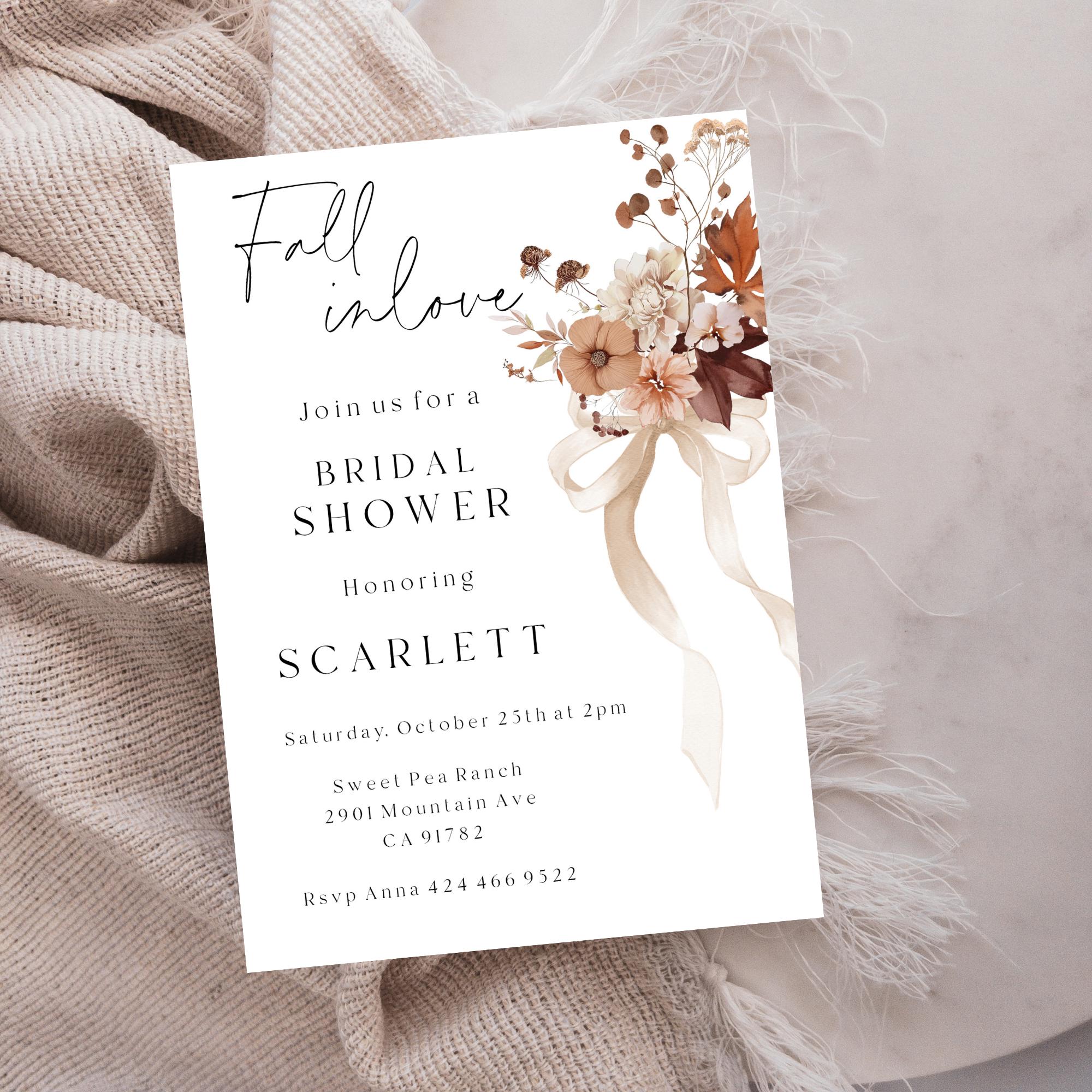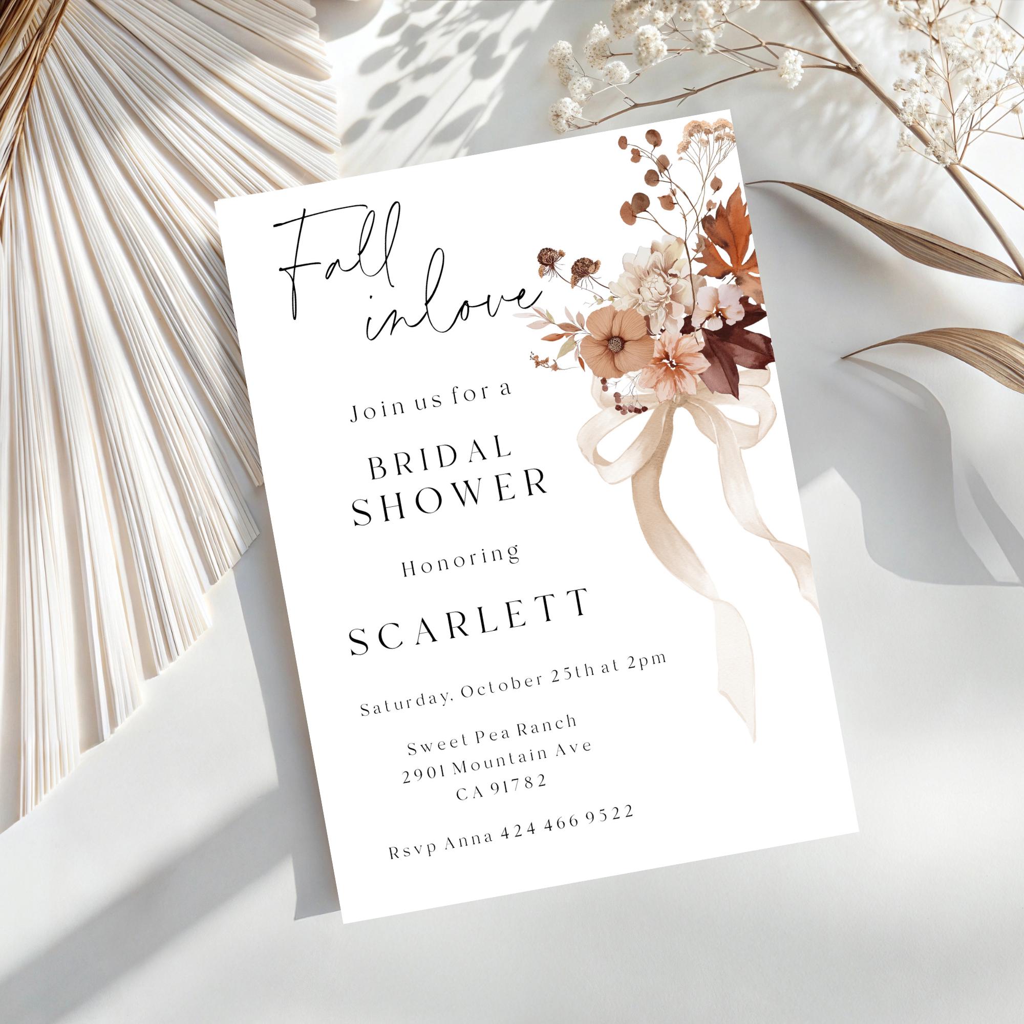 Fall In Love Bridal Shower Invitation Template. An Instant download digital file for you to edit in your web browser with Templett straight after your purchase. Once personalized you are ready to print.