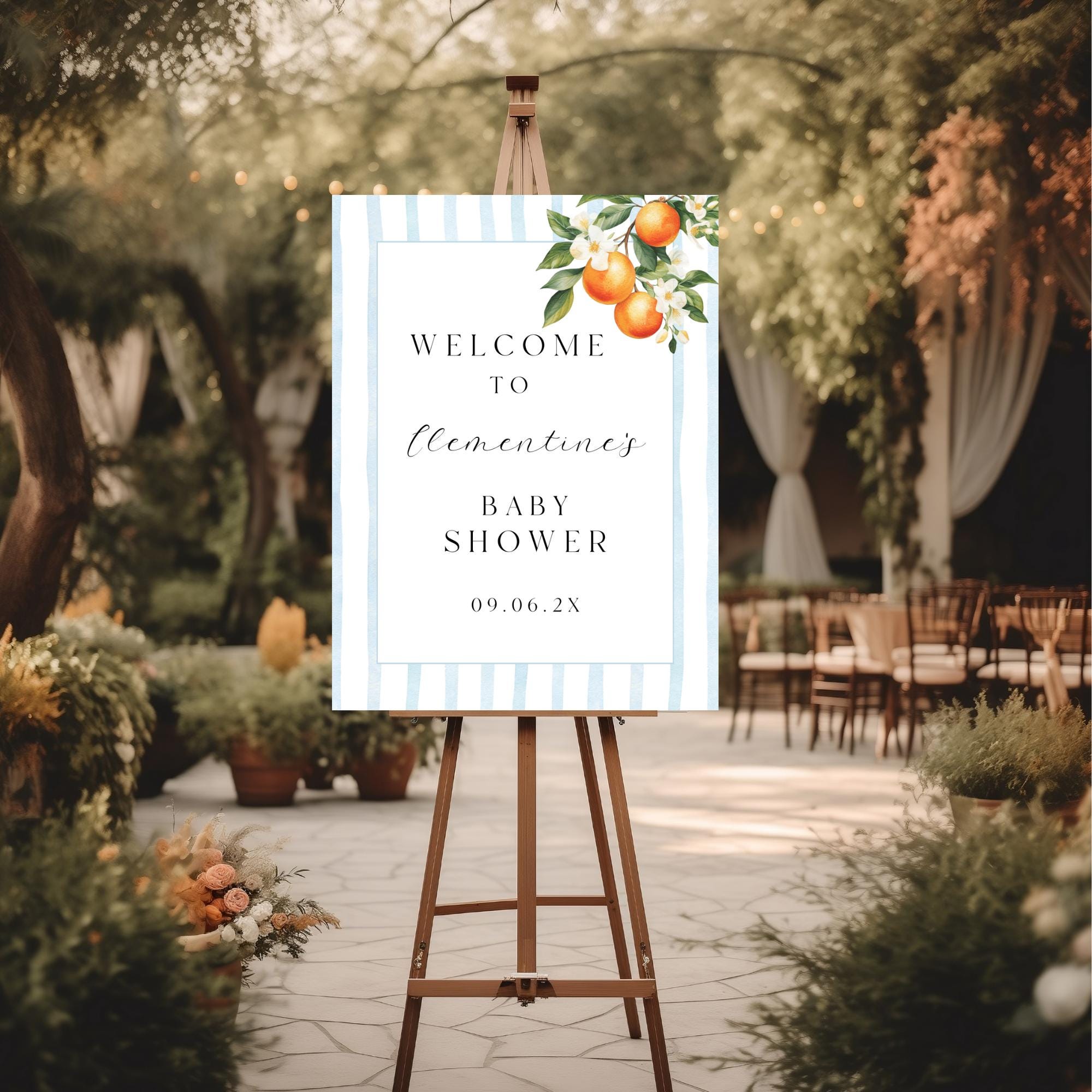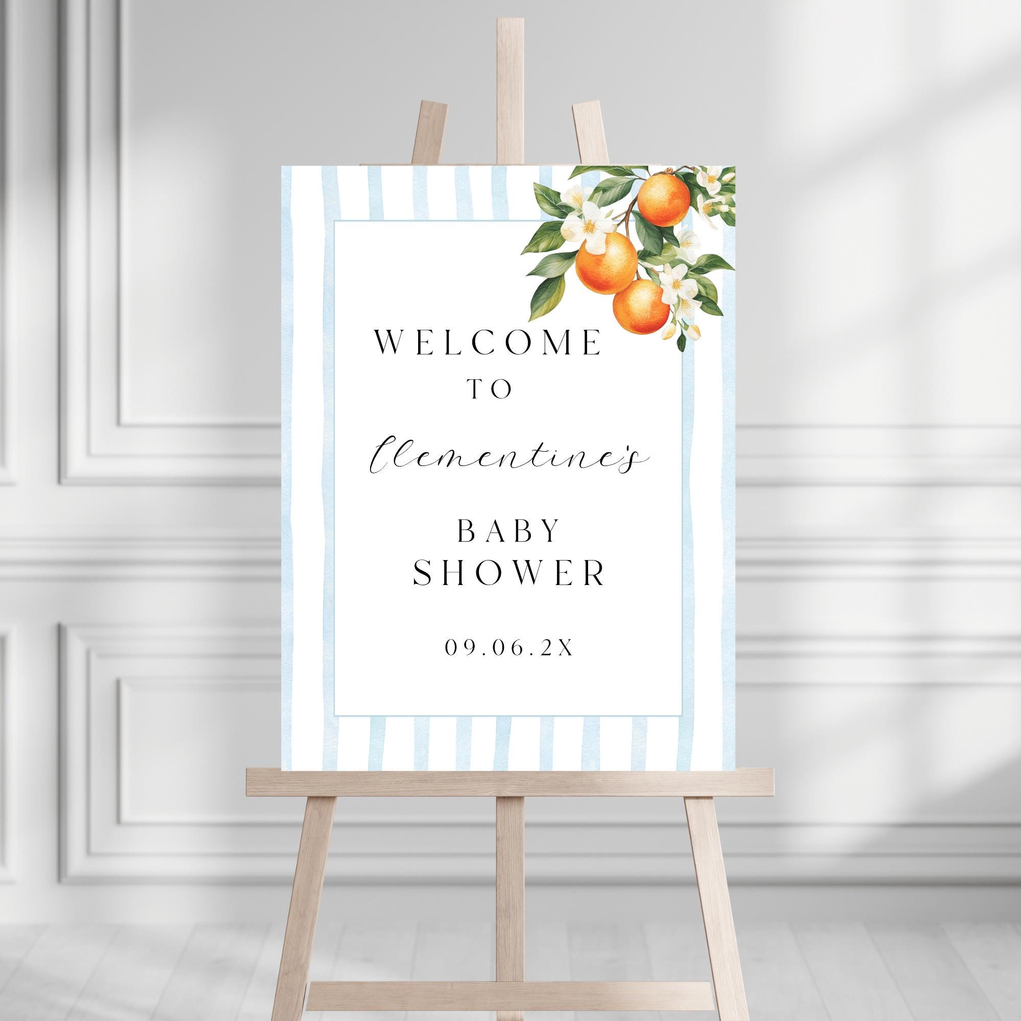 Sweet Oranges Baby Shower Welcome Sign Template. An Instant download digital file for you to edit in your web browser with Templett straight after your purchase. Once personalized you are ready to print.