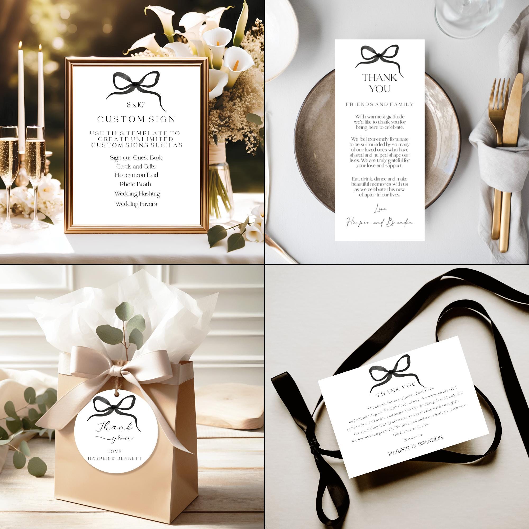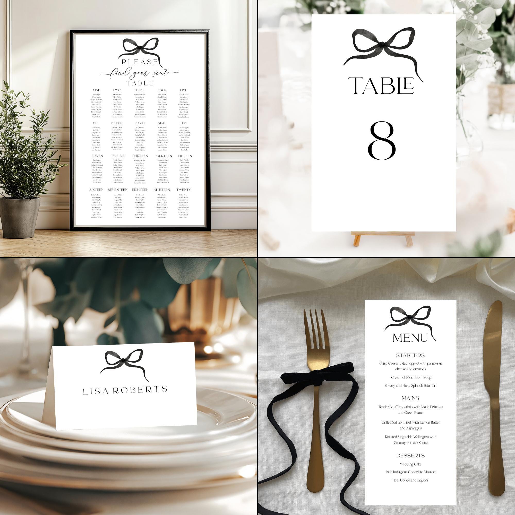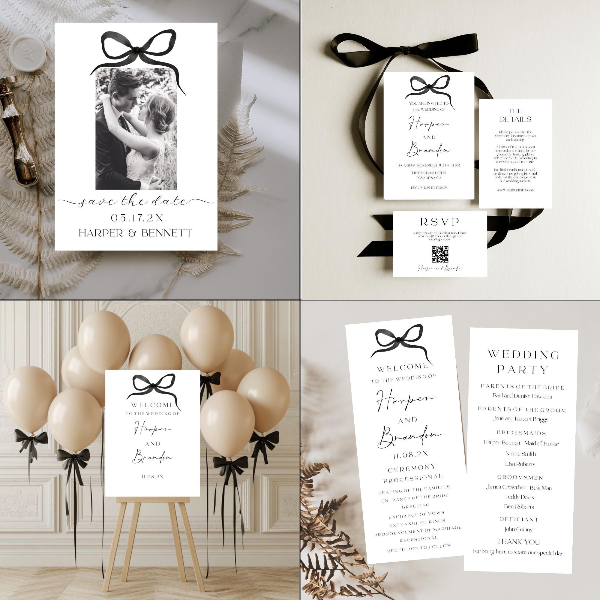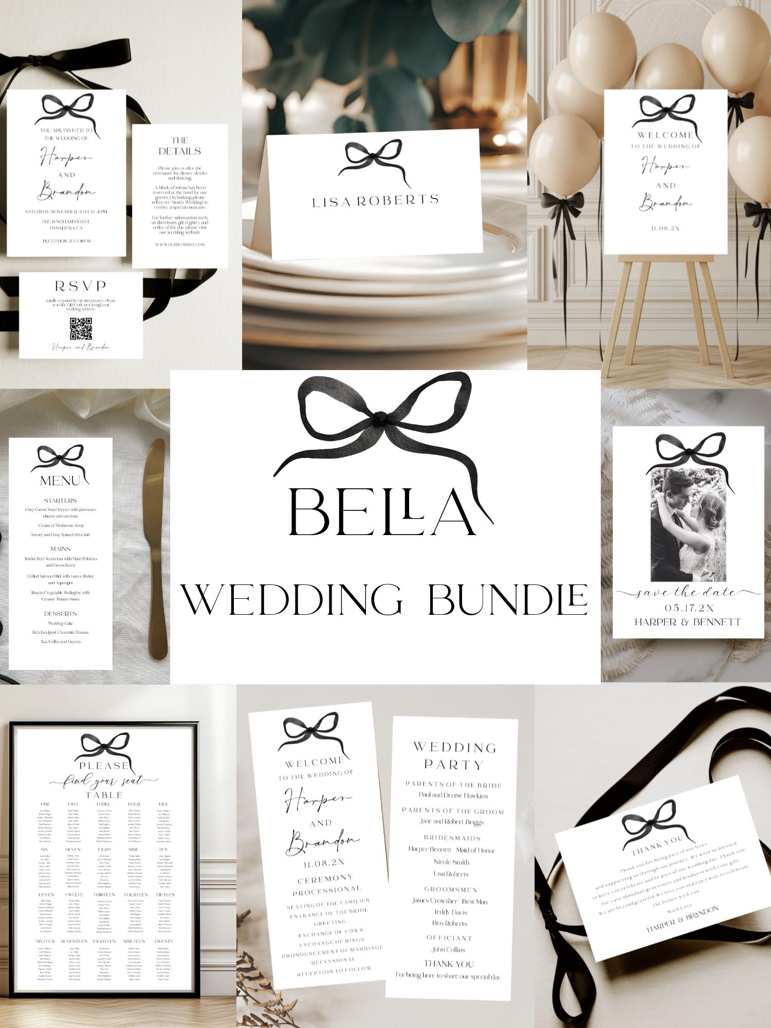 Modern Bow Bella Wedding Invitation Bundle Templates. An Instant download digital file for you to edit in your web browser with Templett straight after your purchase. Once personalized you are ready to print.