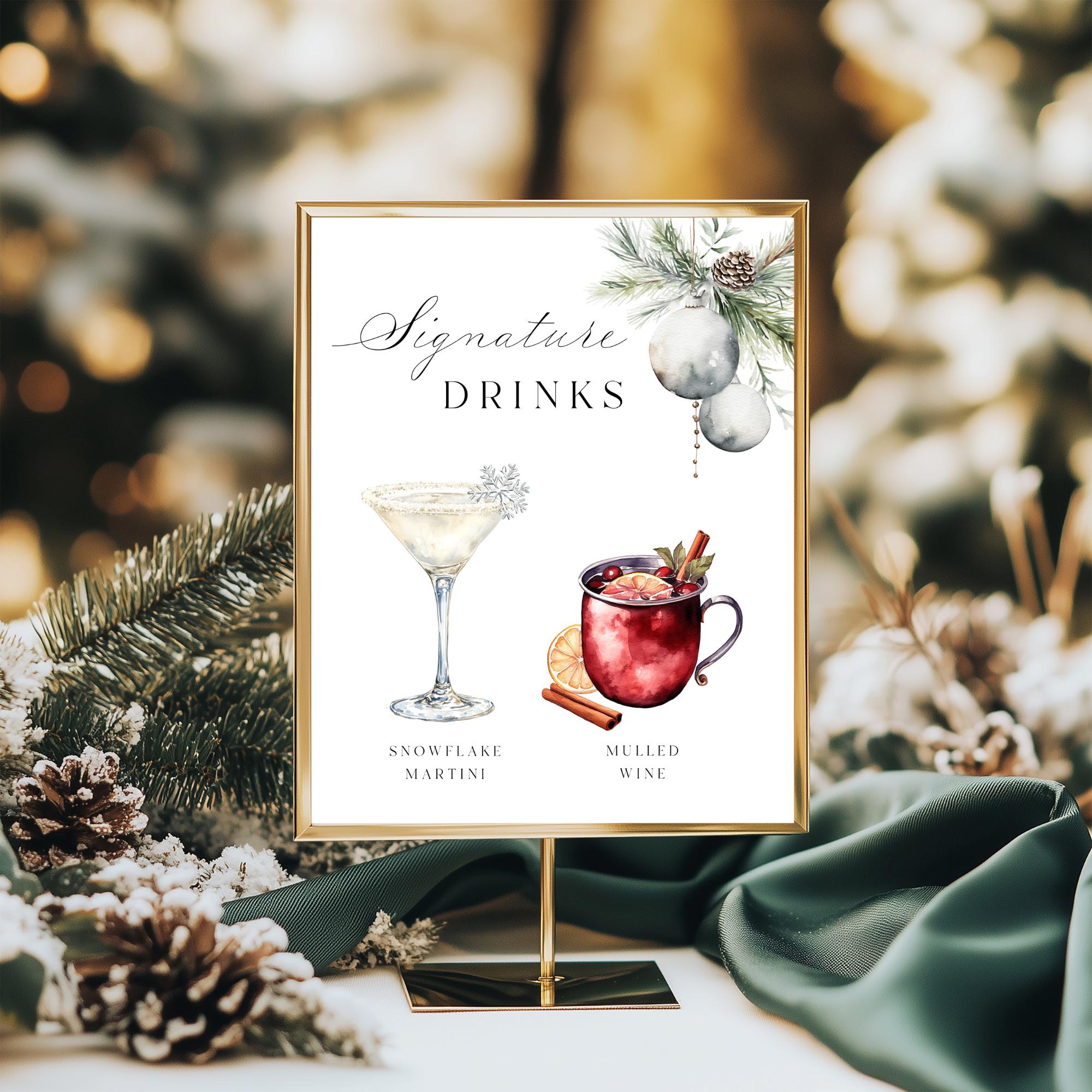 Christmas Signature Drinks Sign Template. An Instant download digital file for you to edit in your web browser with Templett straight after your purchase. Once personalized you are ready to print.