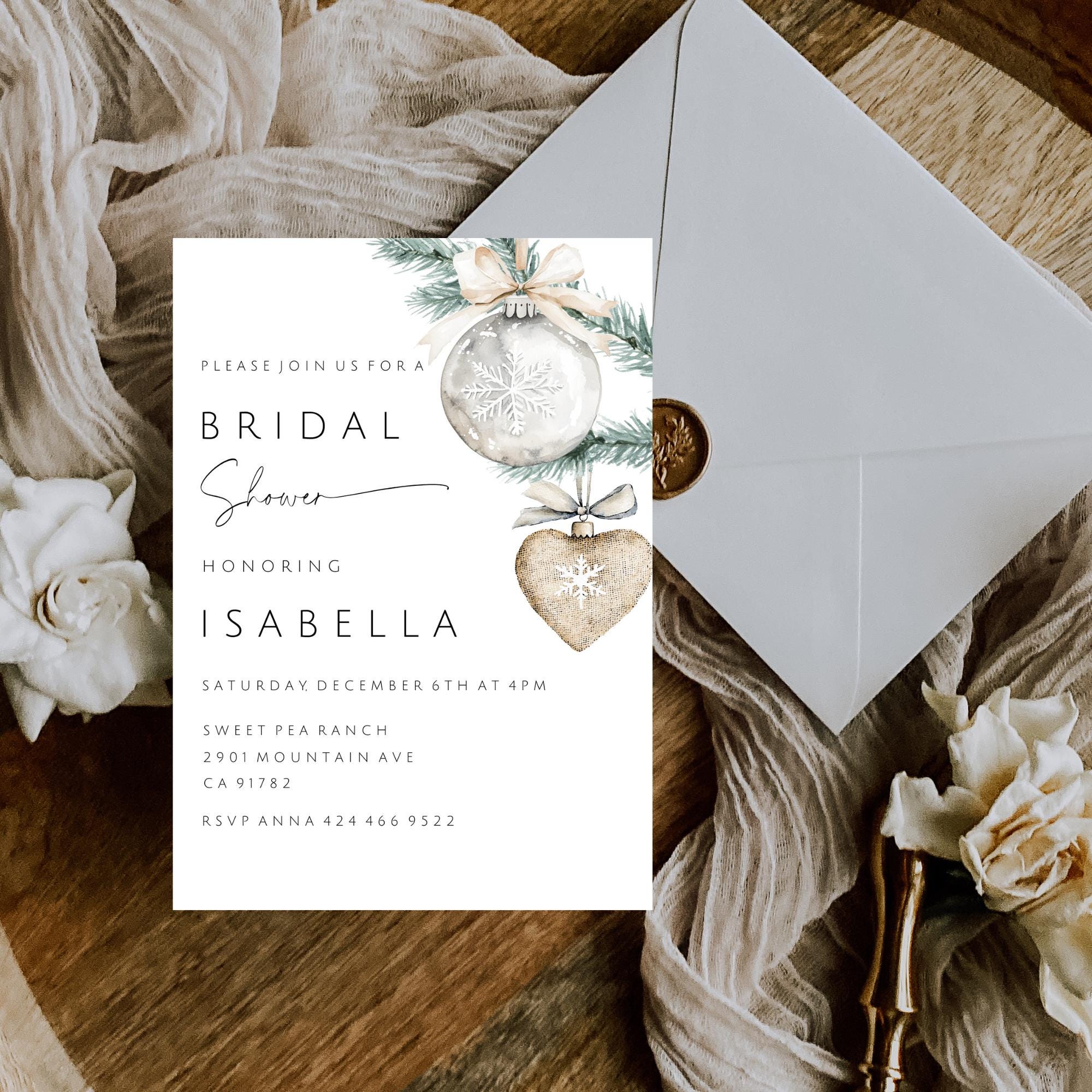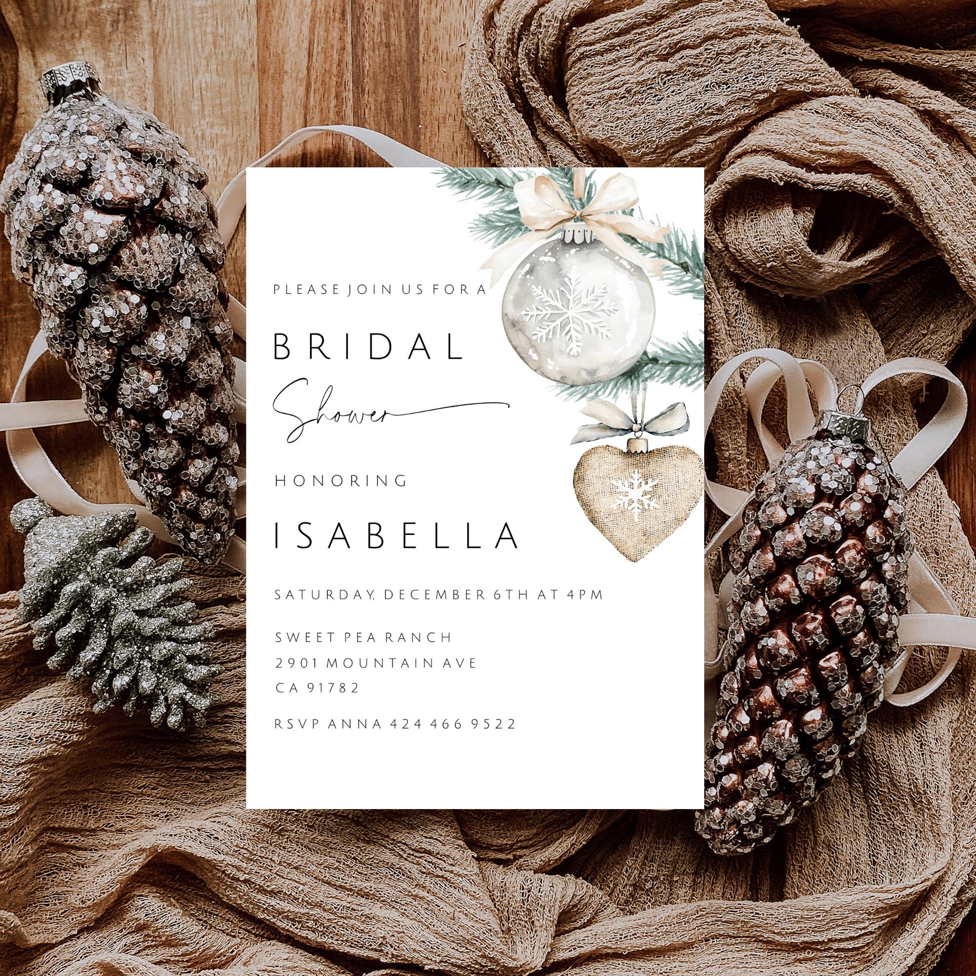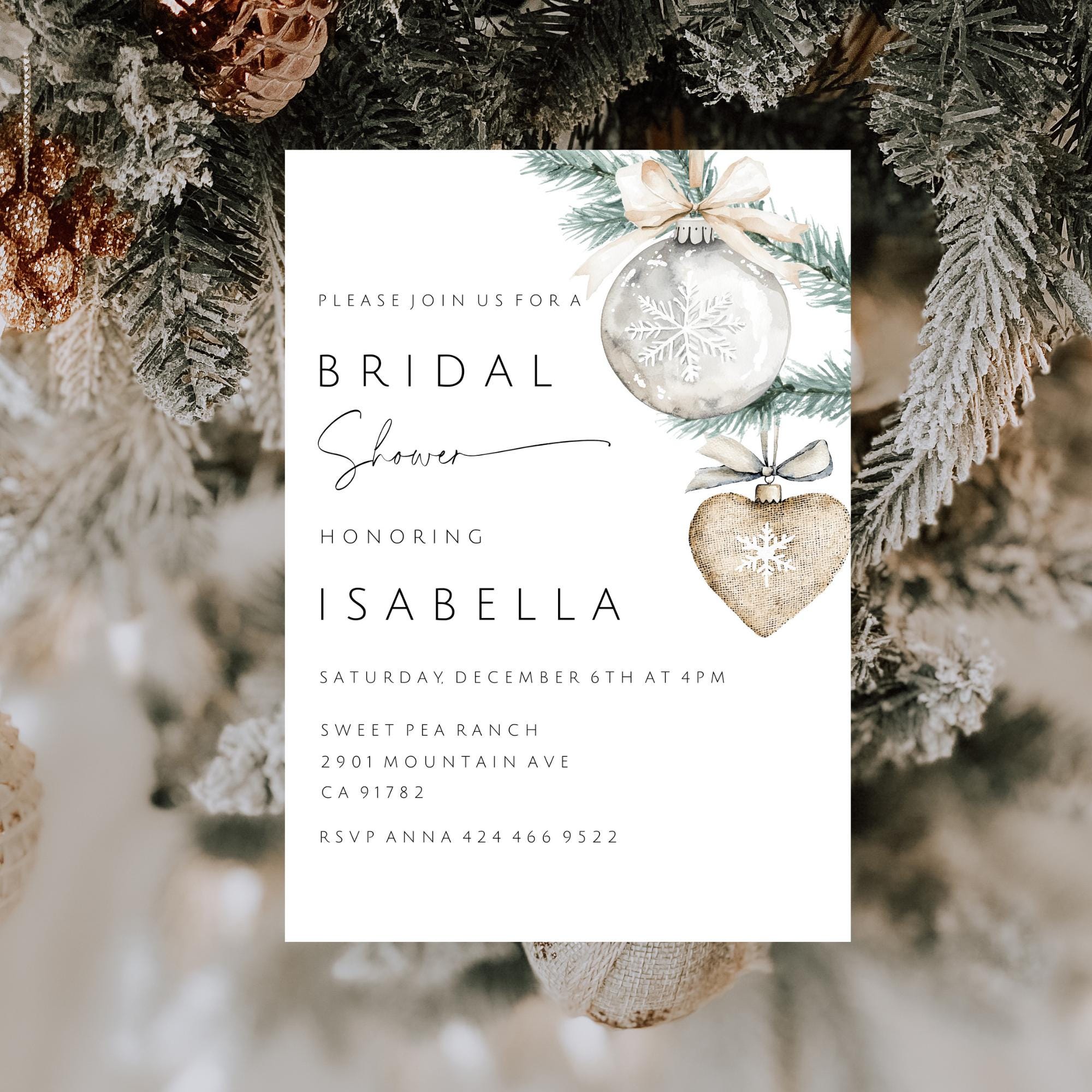 Christmas Bridal Shower Invitation Template. An Instant download digital file for you to edit in your web browser with Templett straight after your purchase. Once personalized you are ready to print.