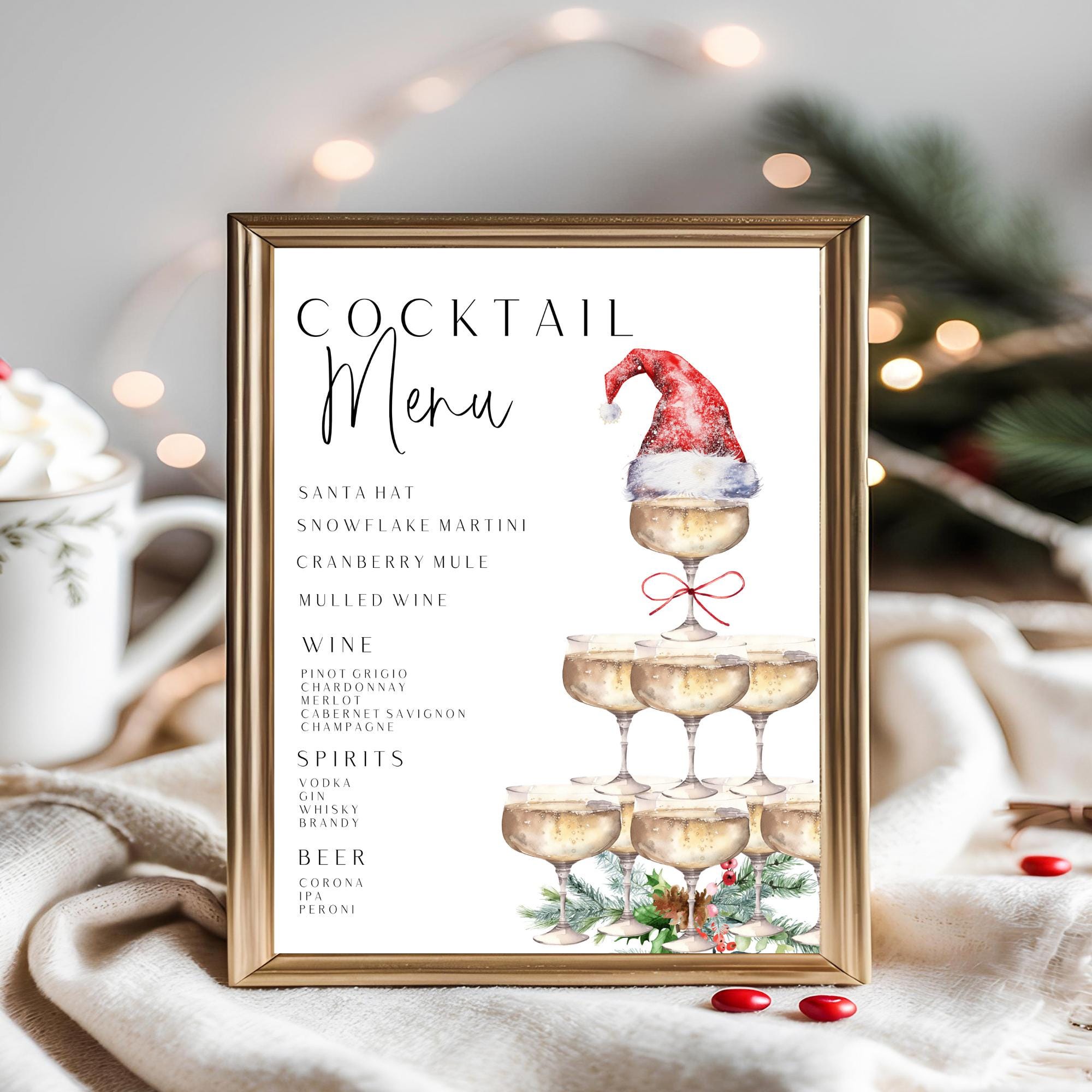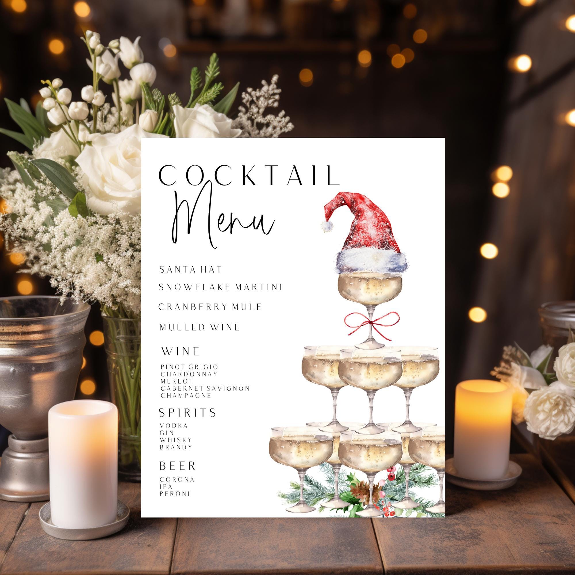 Christmas Cocktail Menu Template. An Instant download digital file for you to edit in your web browser with Templett straight after your purchase. Once personalized you are ready to print.