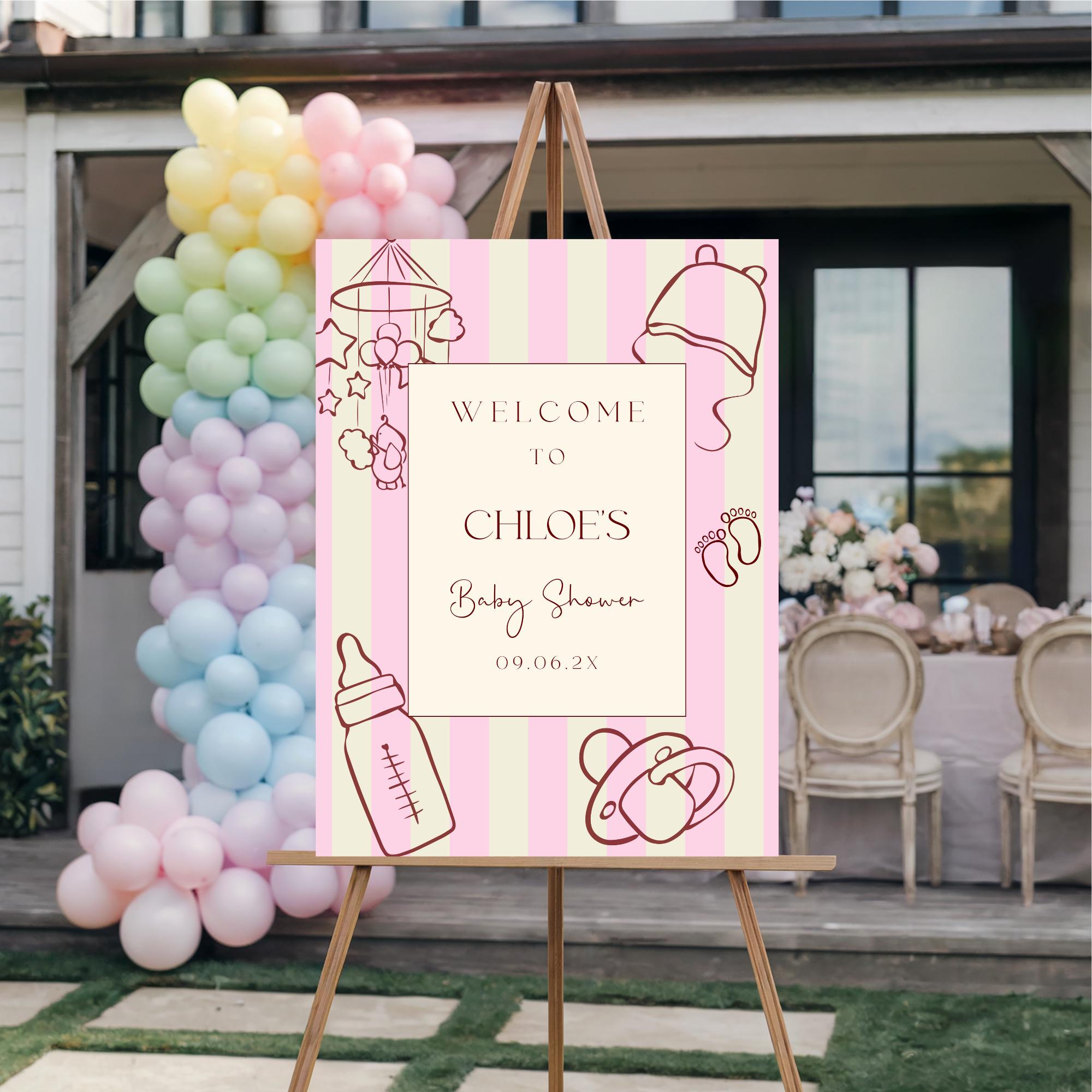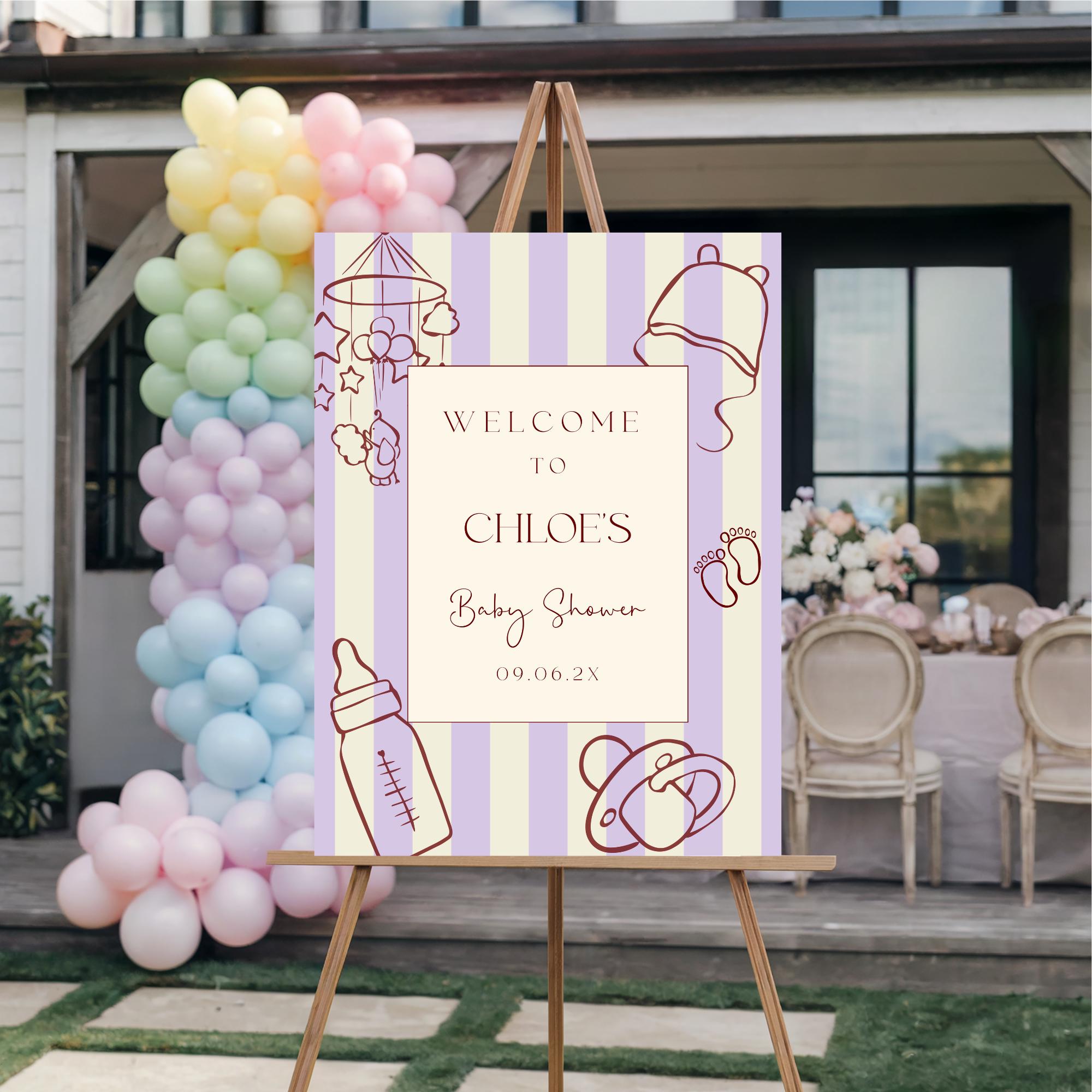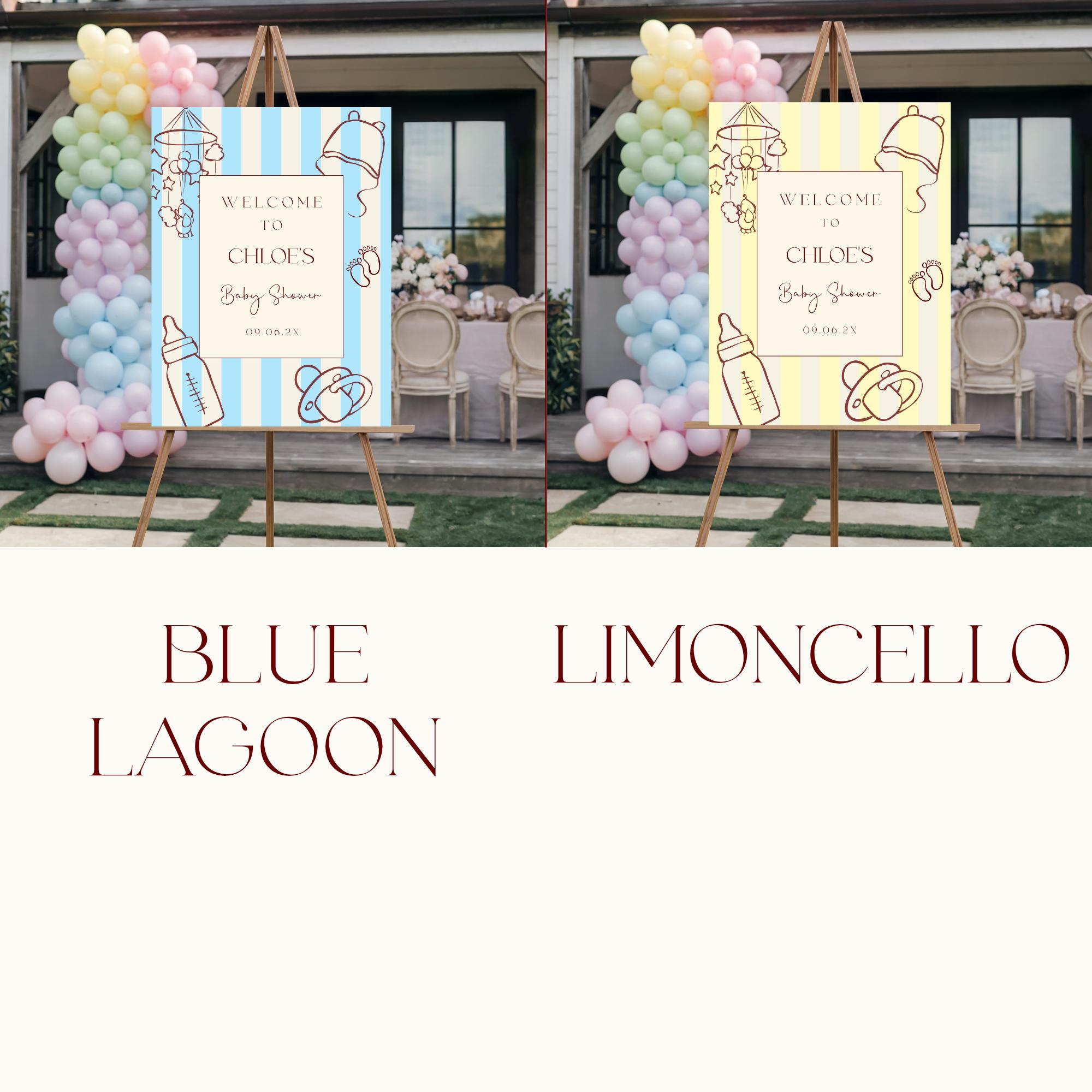 Modern Florence Baby Shower Welcome Sign Template. An Instant download digital file for you to edit in your web browser with Templett straight after your purchase. Once personalized you are ready to print.