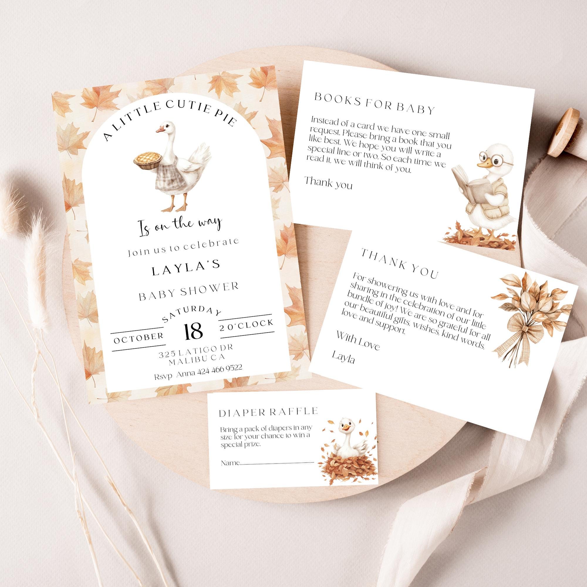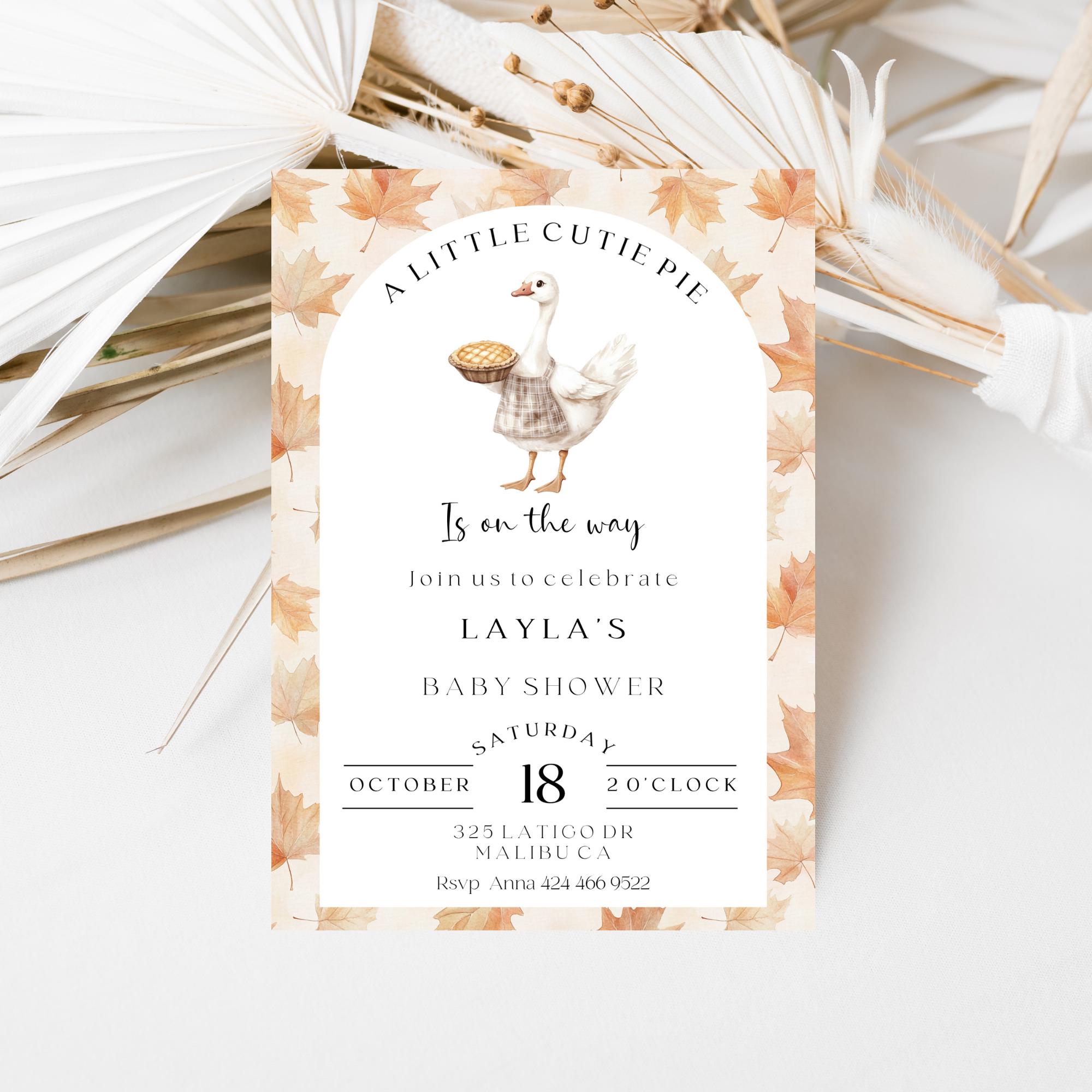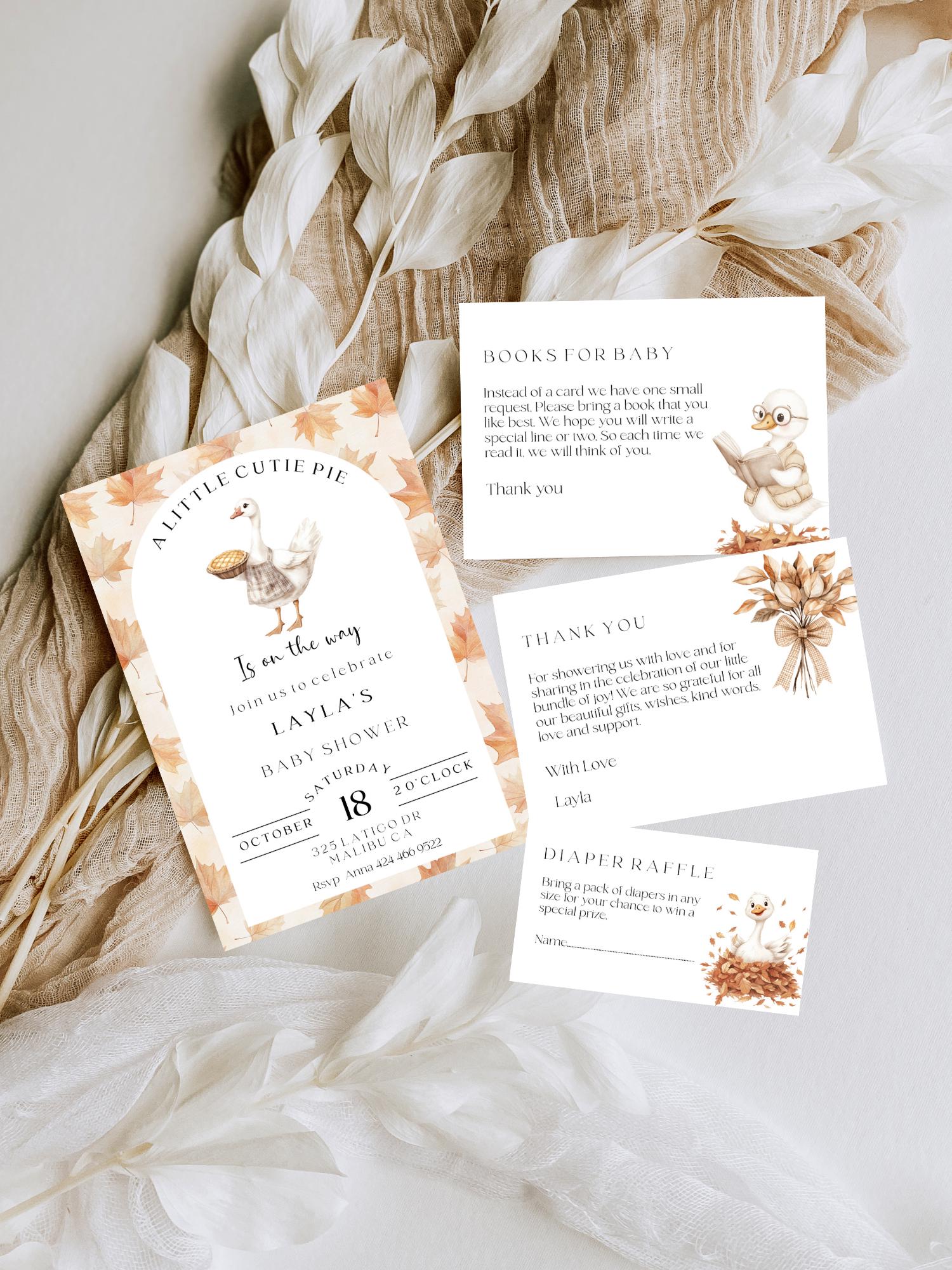 Cutie Pie Baby Shower Invitation Set. An Instant download digital file for you to edit in your web browser with Templett straight after your purchase. Once personalized you are ready to print.