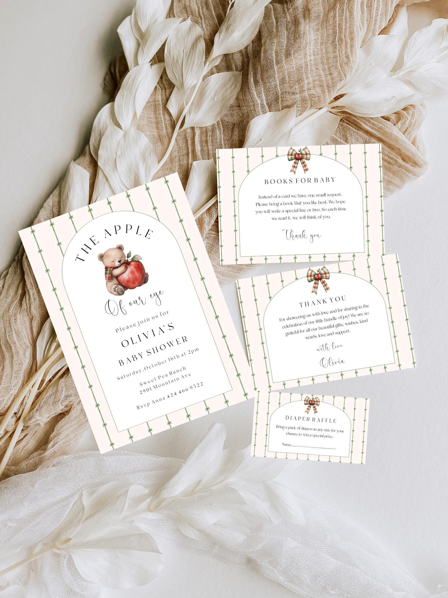 Apple Of Eye Baby Shower Invitation Set. An Instant download digital file for you to edit in your web browser with Templett straight after your purchase. Once personalized you are ready to print.