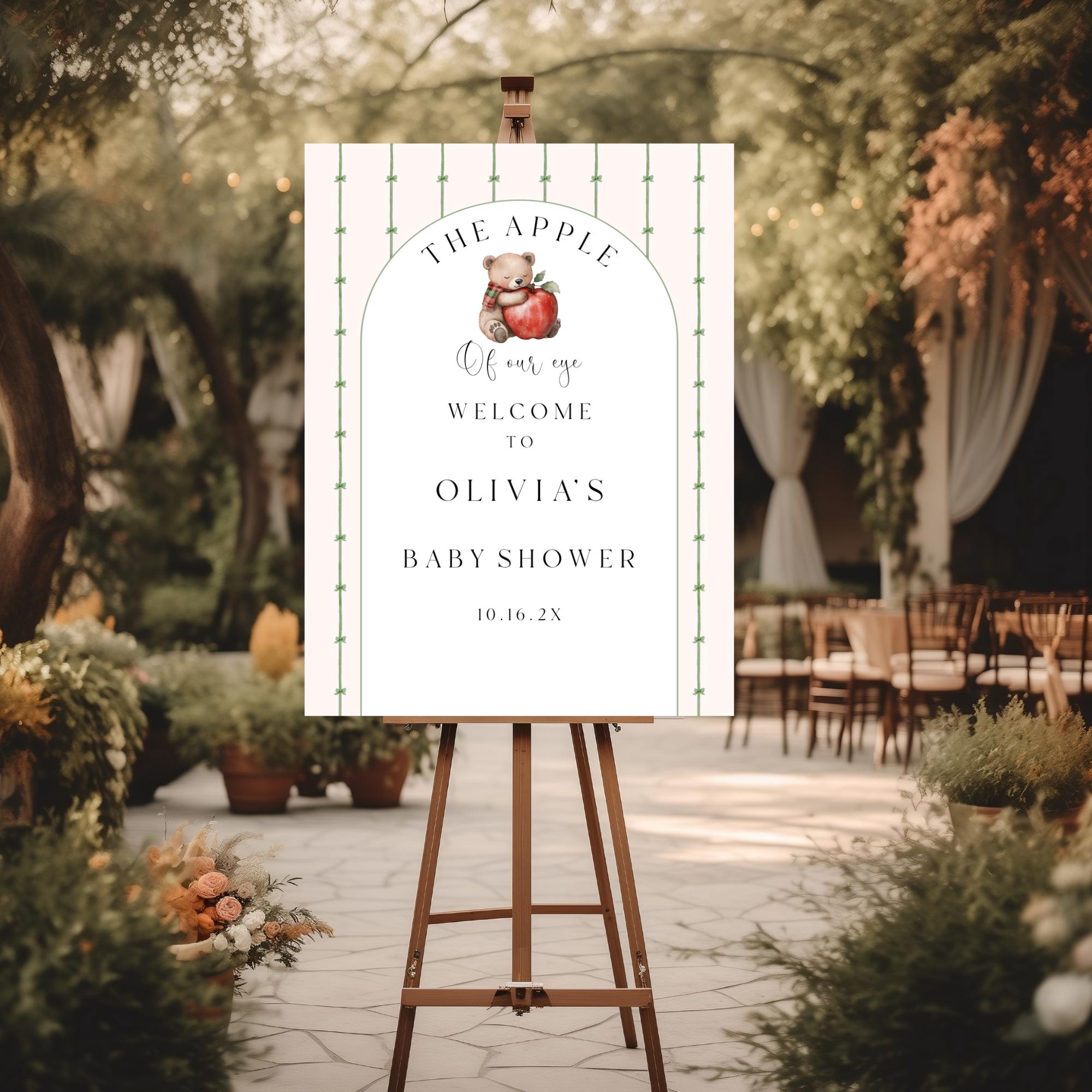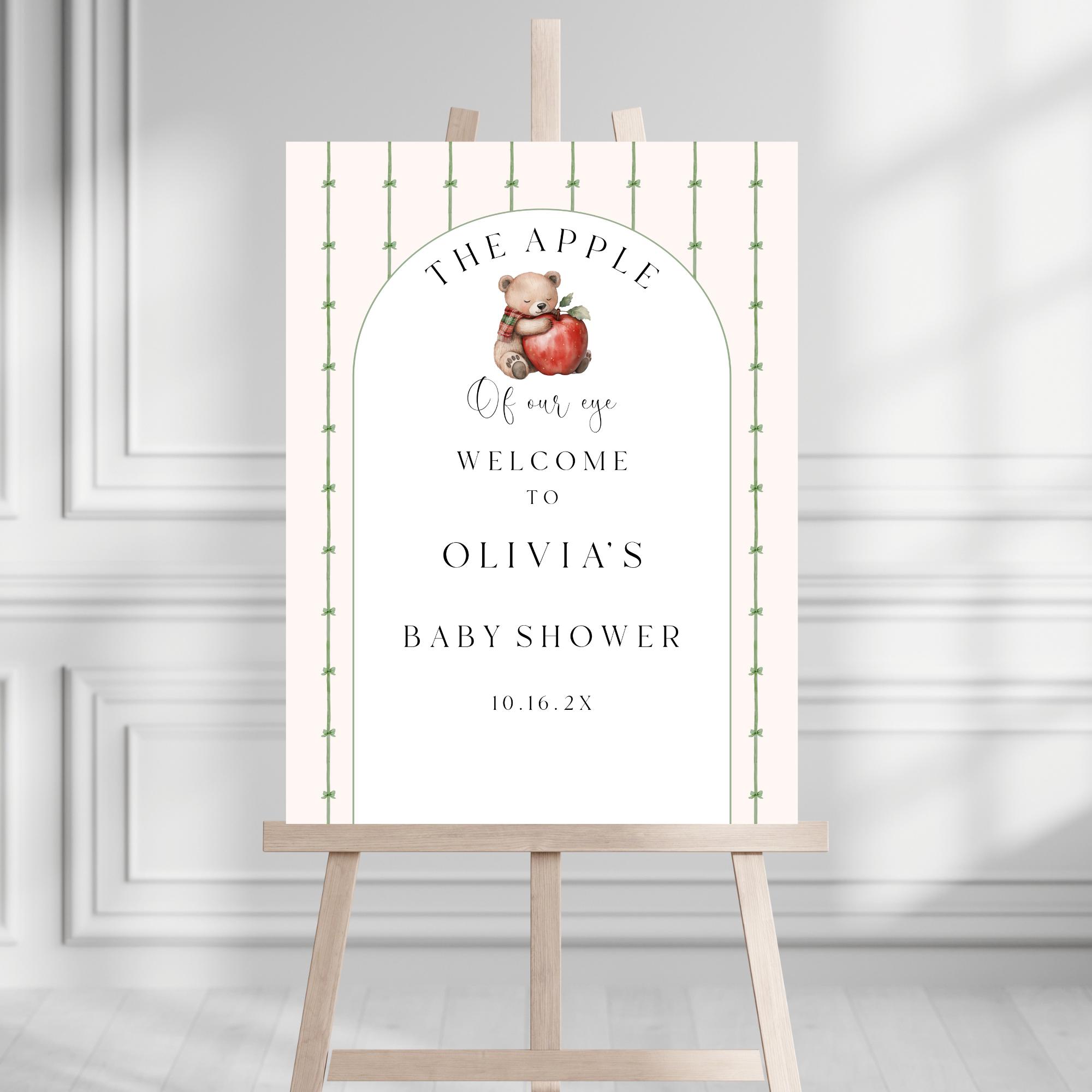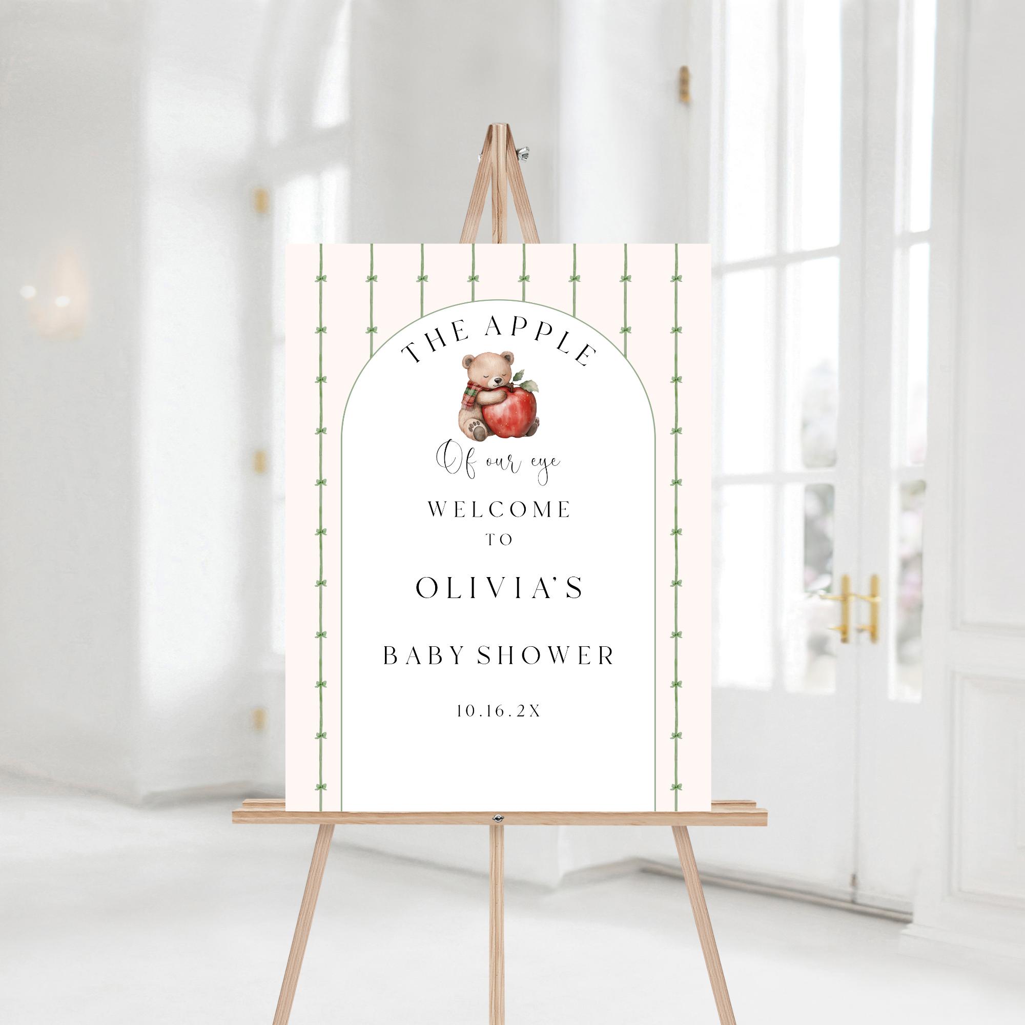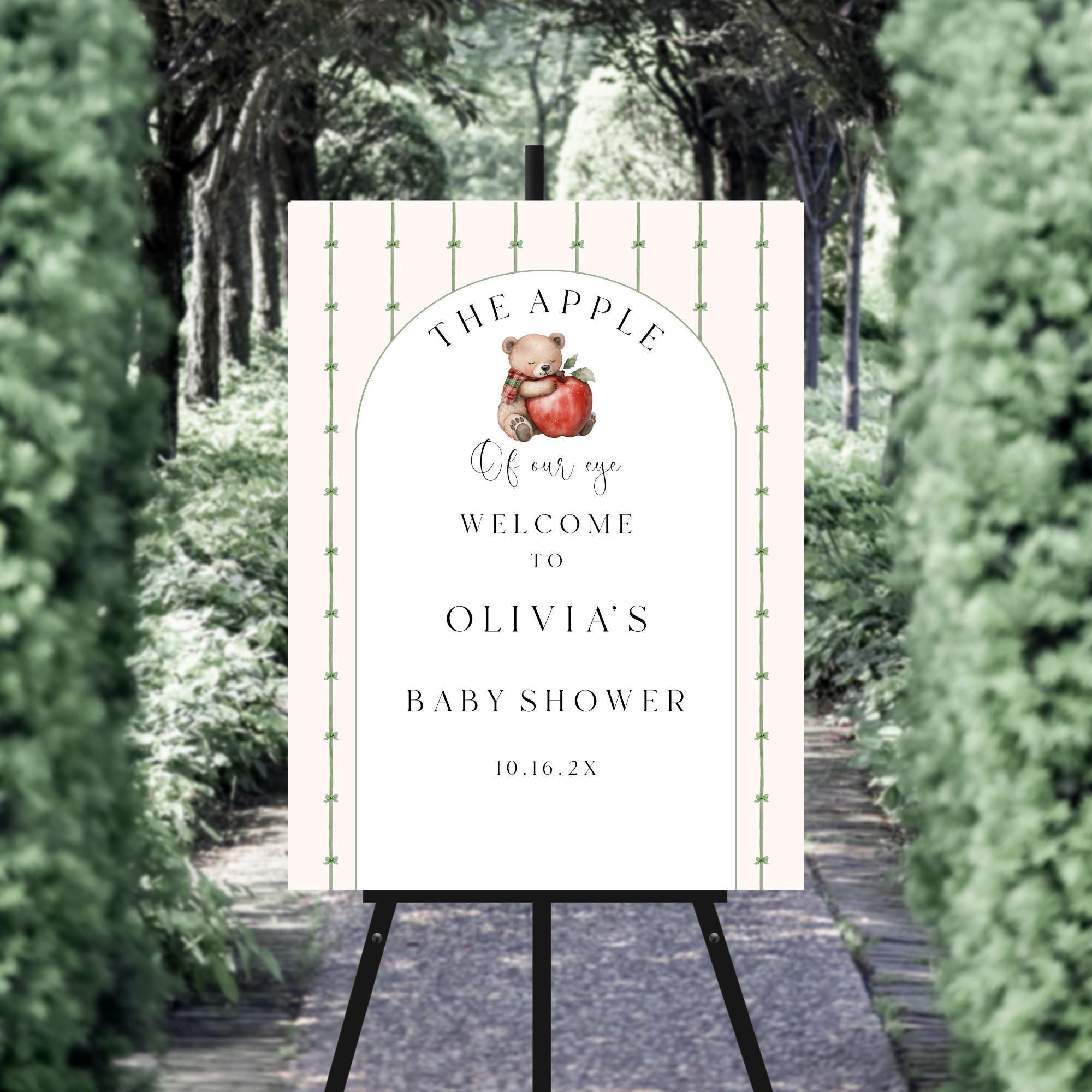 Apple Of Eye Baby Shower Welcome Sign. An Instant download digital file for you to edit in your web browser with Templett straight after your purchase. Once personalized you are ready to print.