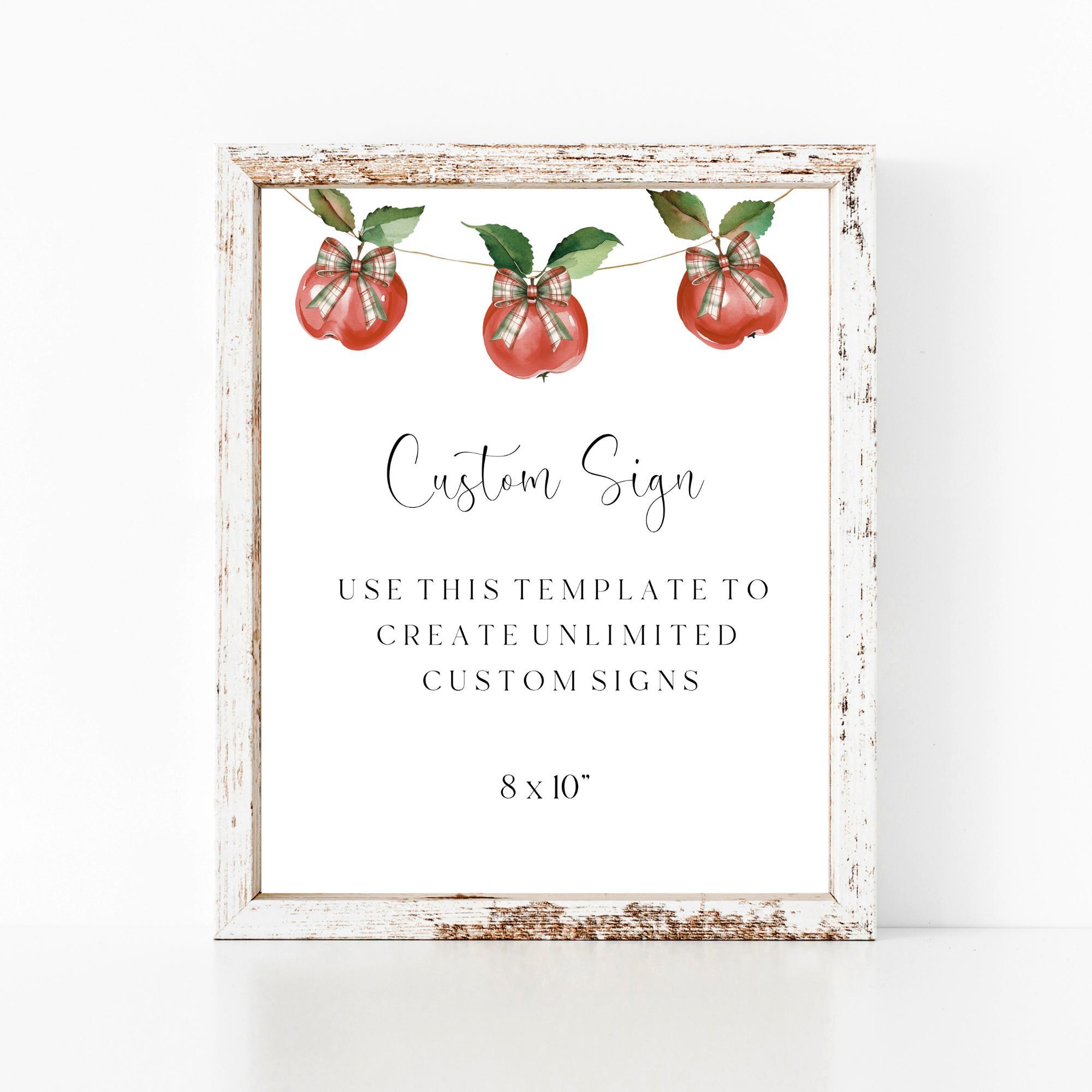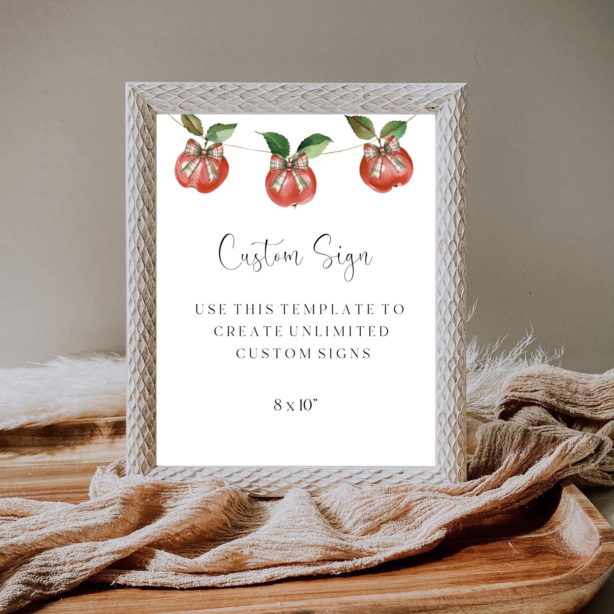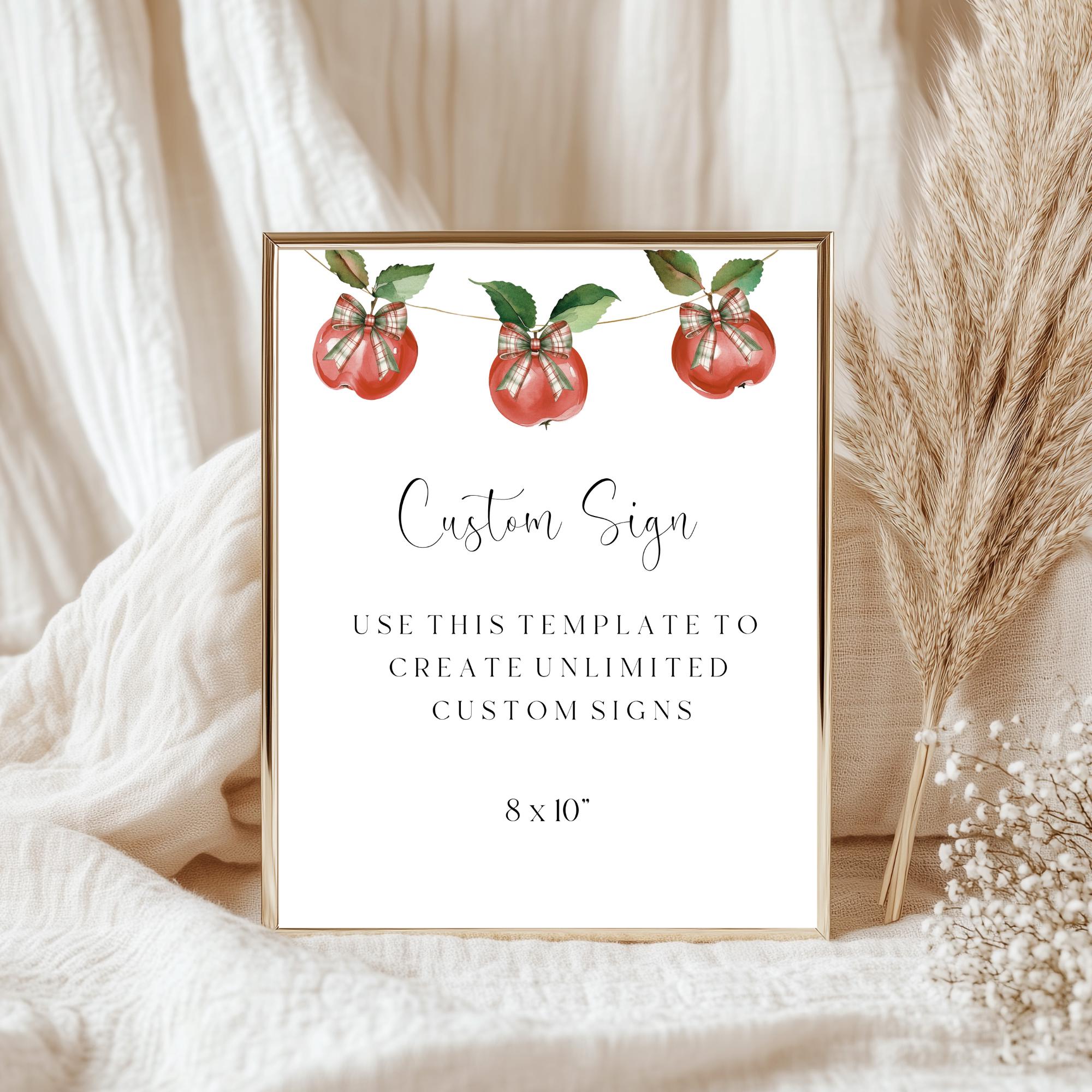 Apple Of Eye Custom Shower Sign Template. An Instant download digital file for you to edit in your web browser with Templett straight after your purchase. Once personalized you are ready to print.