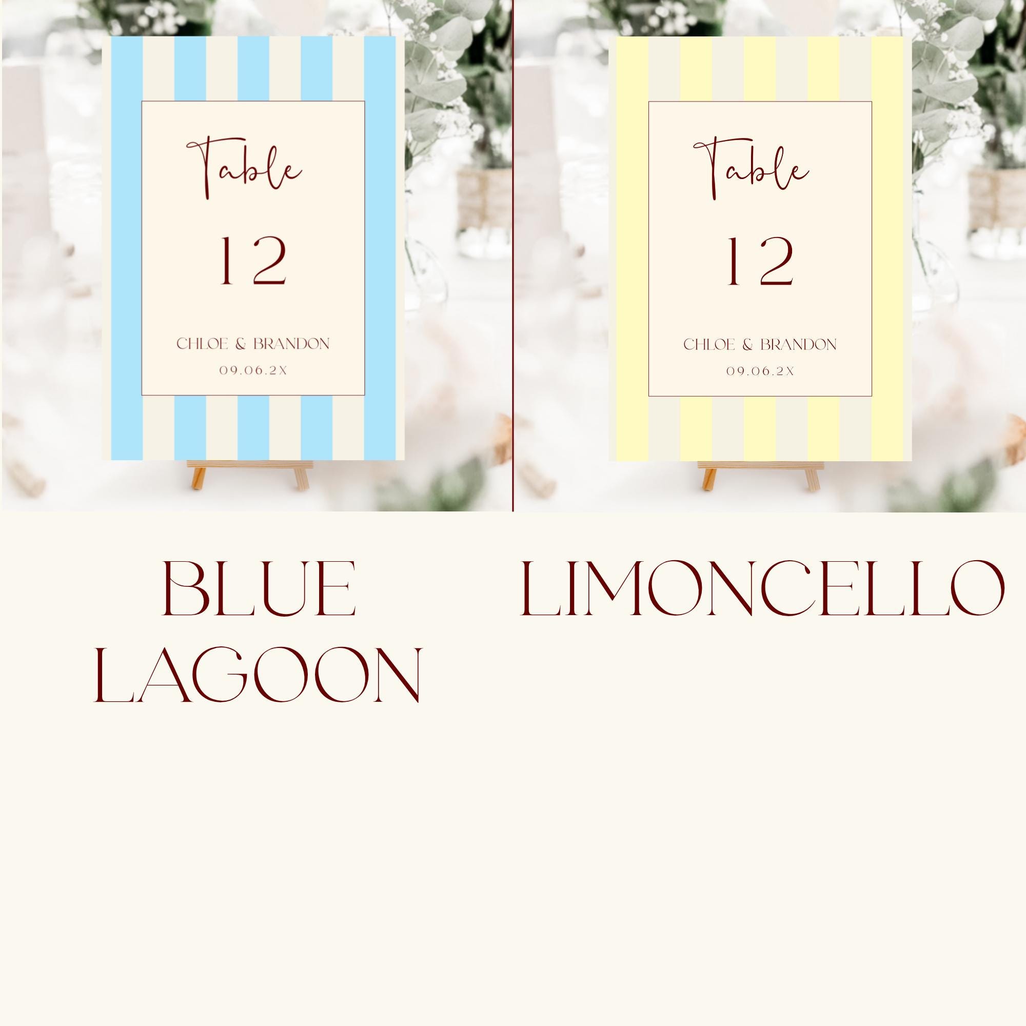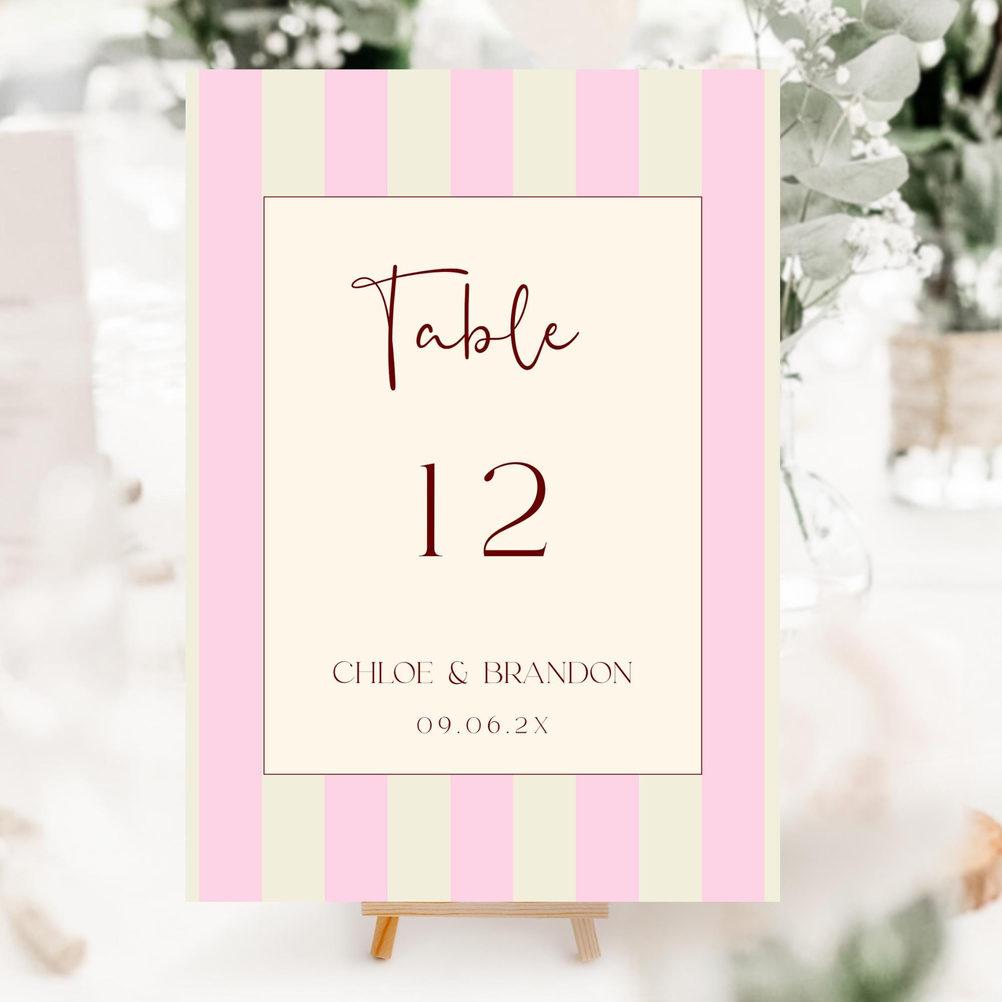 Modern Striped Wedding Table Number Template. An Instant download digital file for you to edit in your web browser with Templett straight after your purchase. Once personalized you are ready to print.