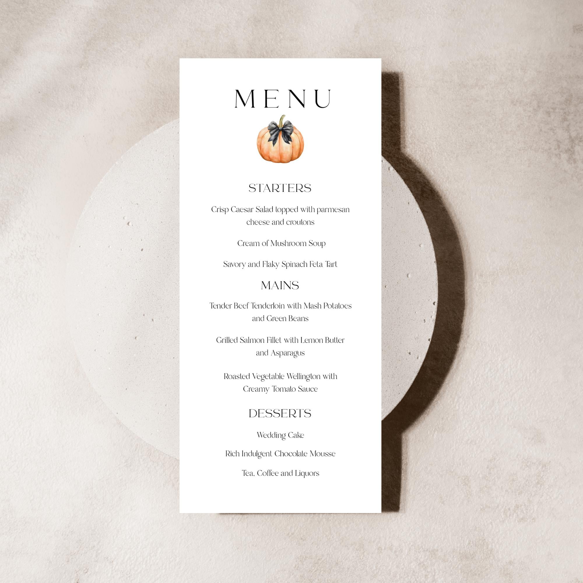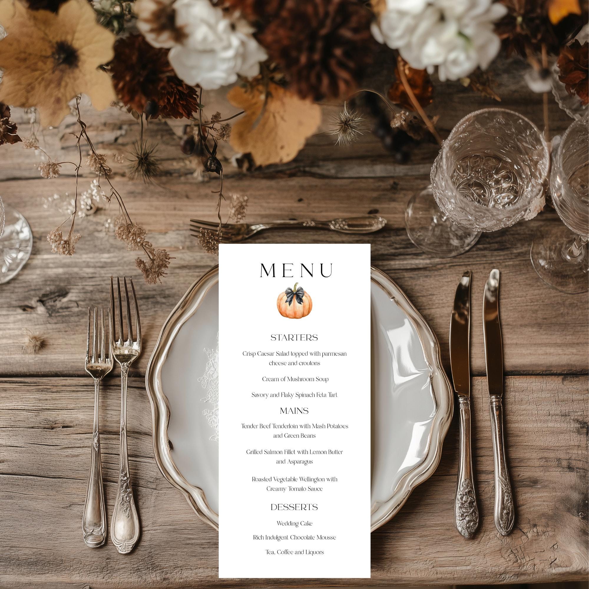 Modern Fall Pumpkin Menu Template. An Instant download digital file for you to edit in your web browser with Templett straight after your purchase. Once personalized you are ready to print.