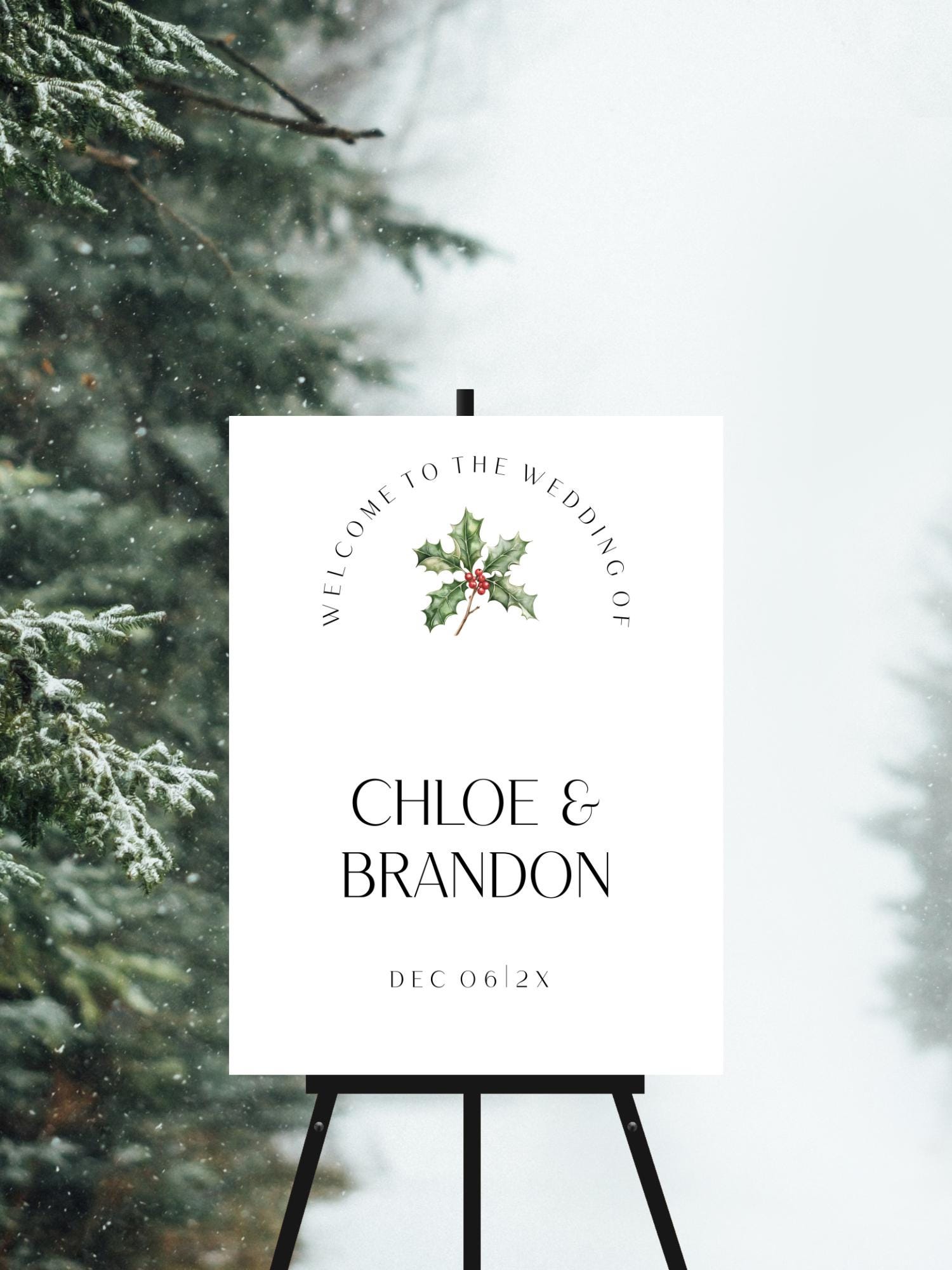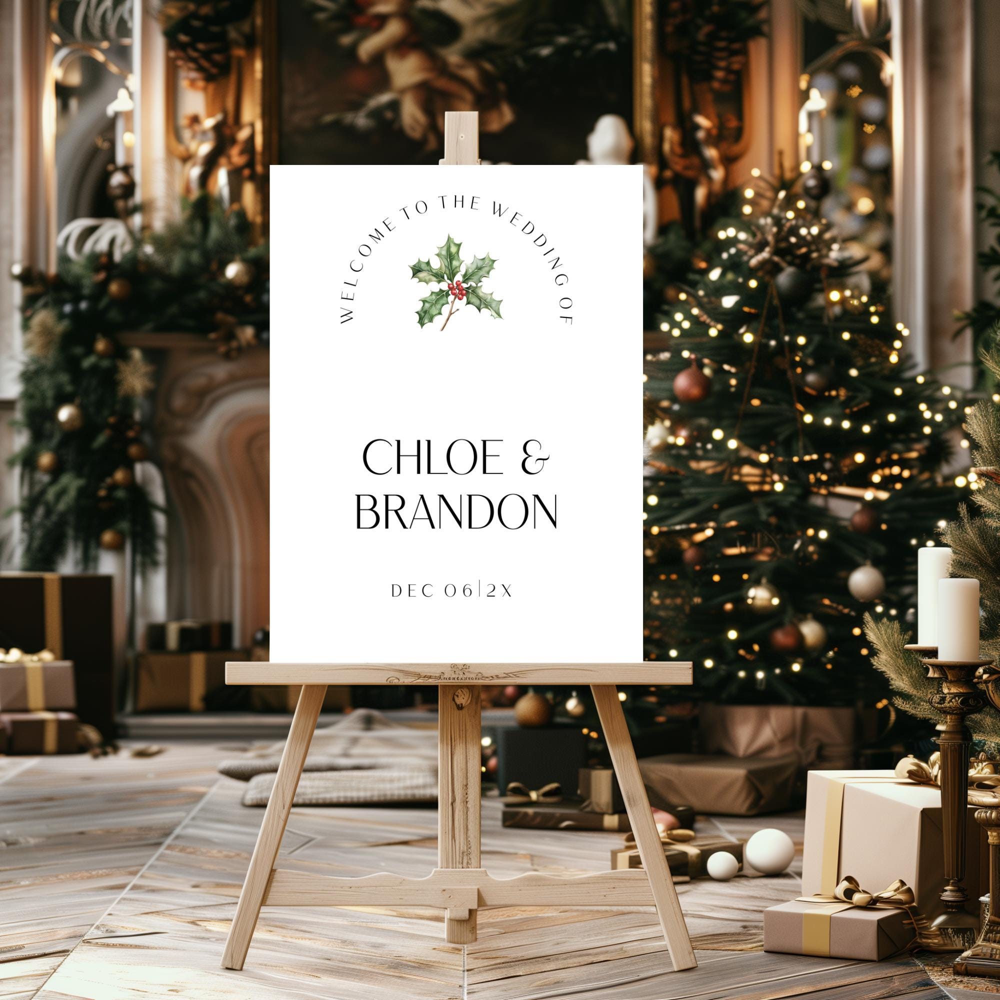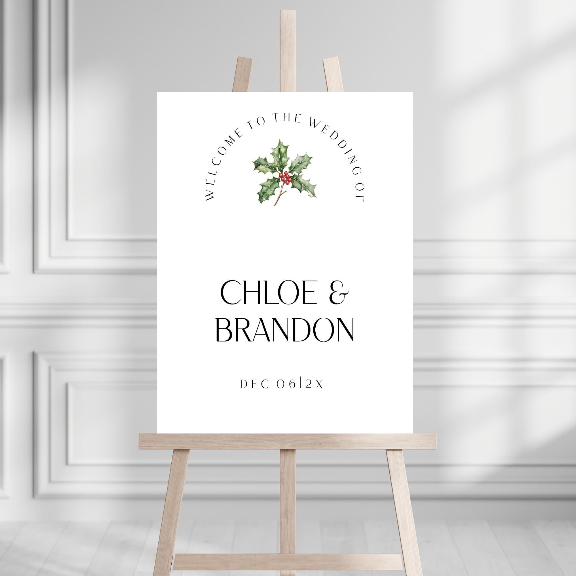 Modern Christmas Wedding Welcome Sign Template. An Instant download digital file for you to edit in your web browser with Templett straight after your purchase. Once personalized you are ready to print.