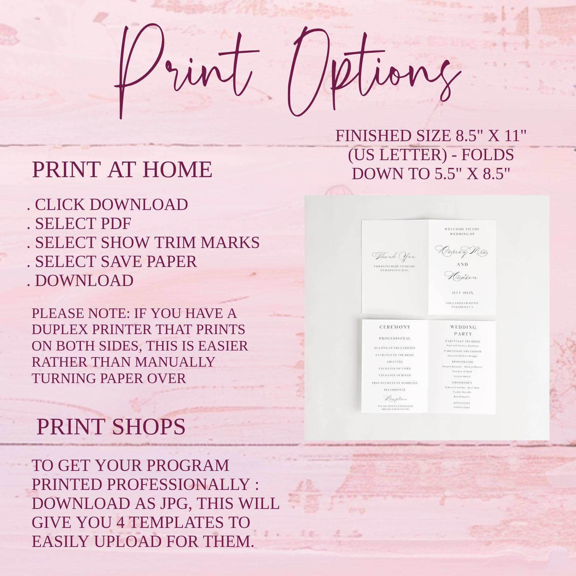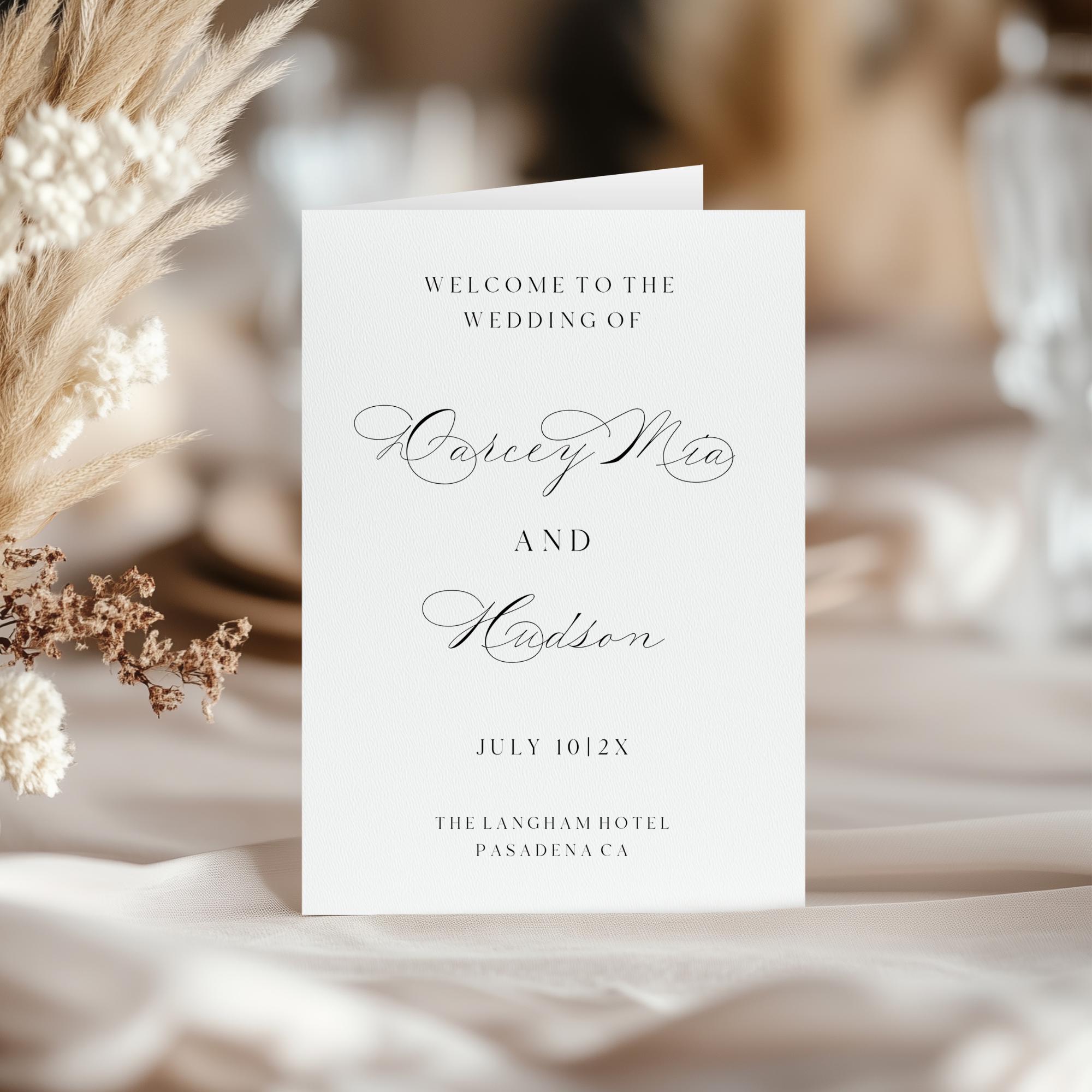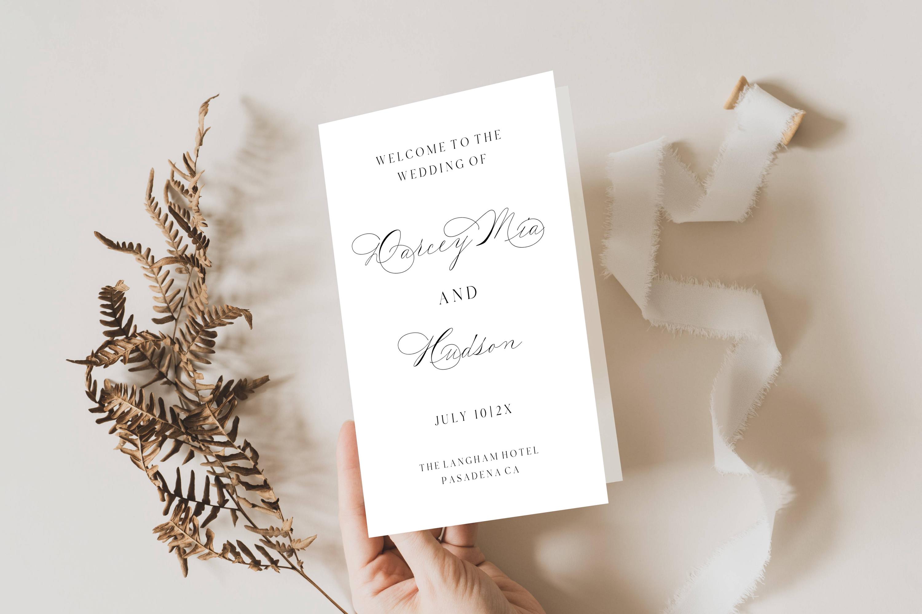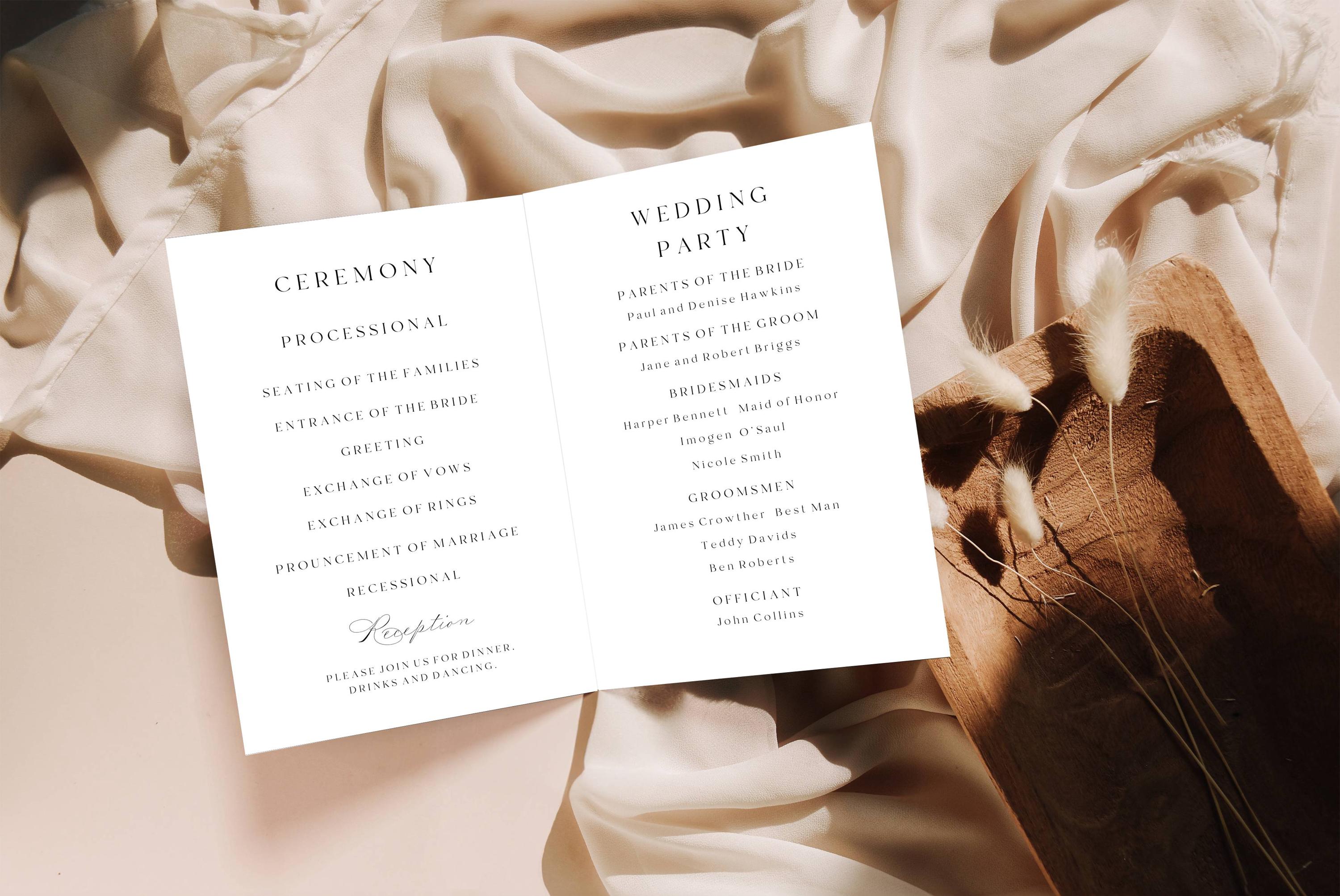 Elegant Script Wedding Program Template. An Instant download digital file for you to edit in your web browser with Templett straight after your purchase. Once personalized you are ready to print.