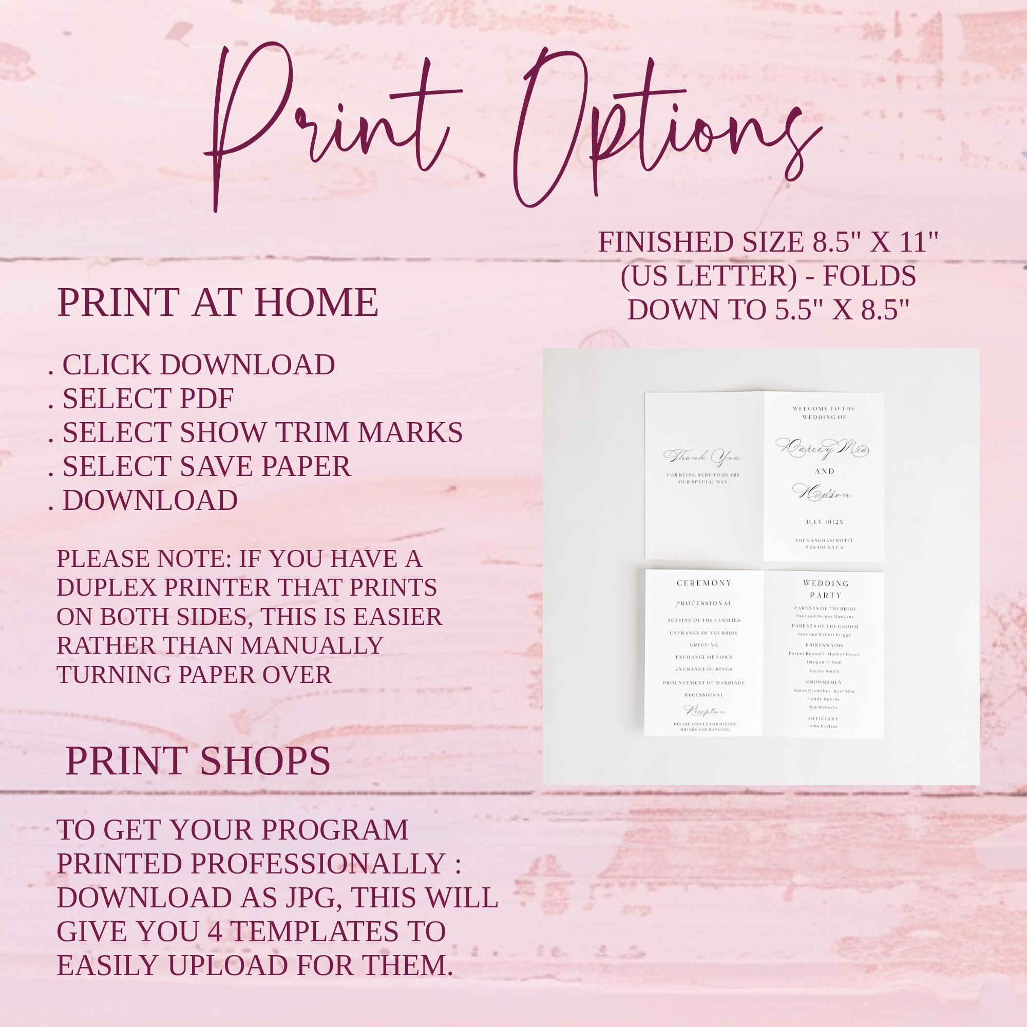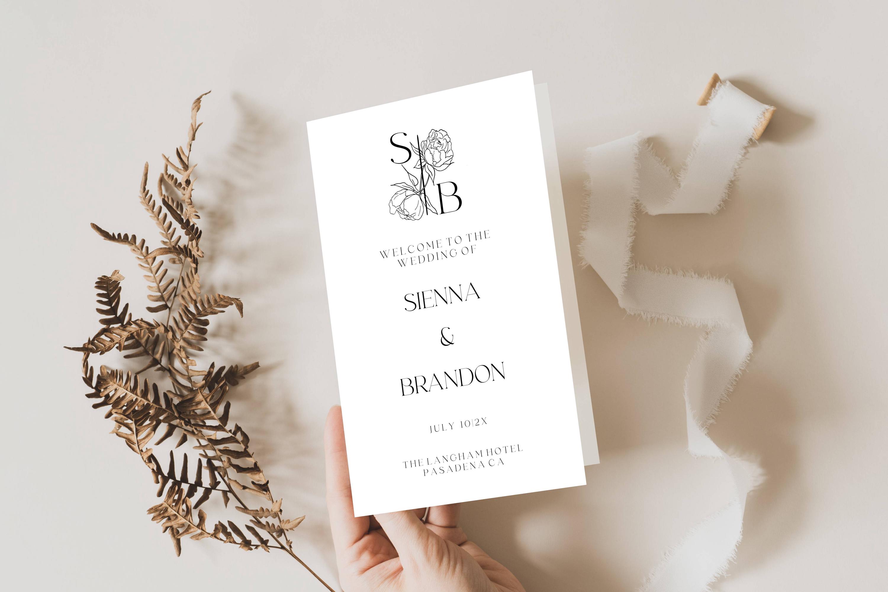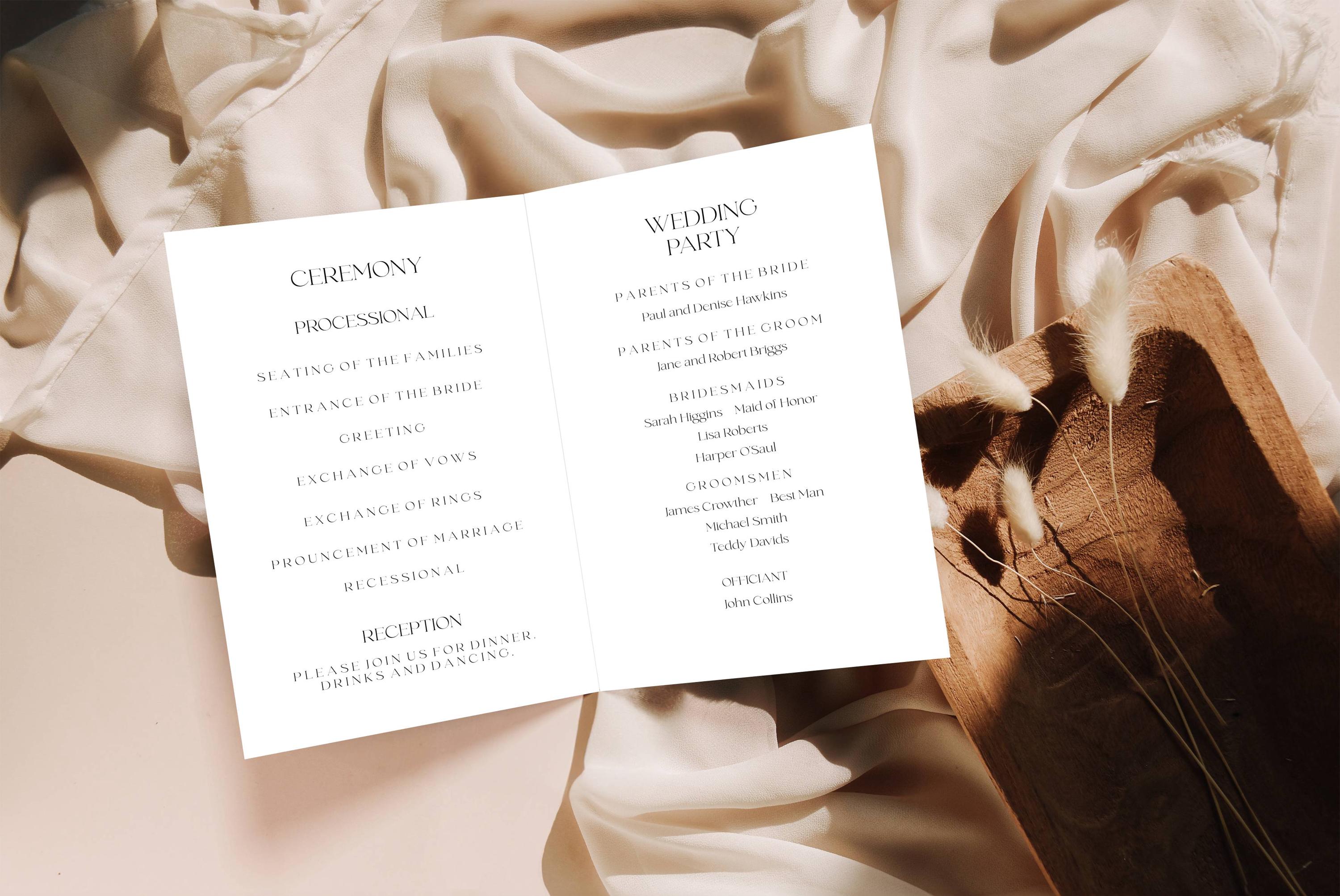 Modern Wedding Program Template. An Instant download digital file for you to edit in your web browser with Templett straight after your purchase. Once personalized you are ready to print.