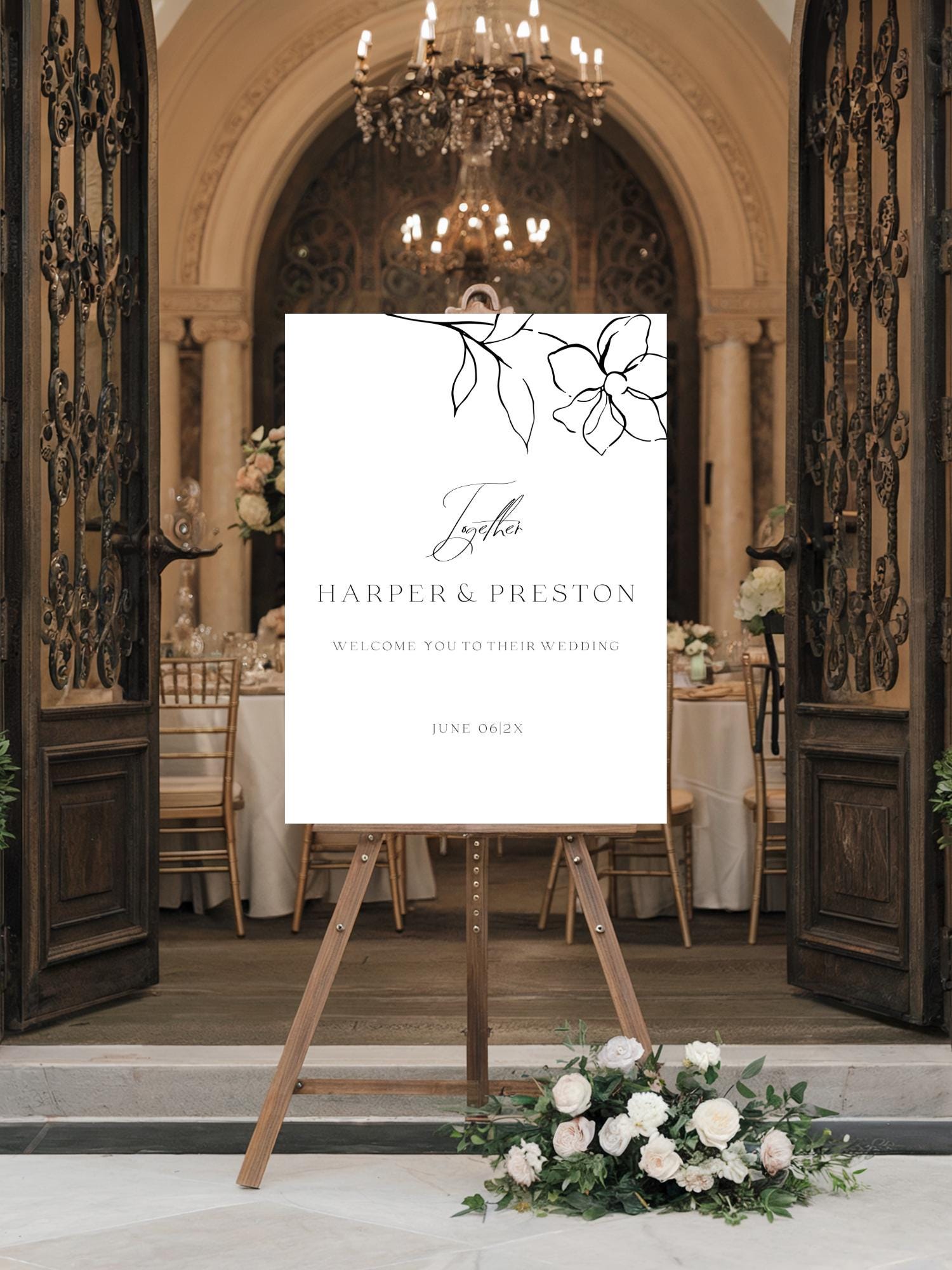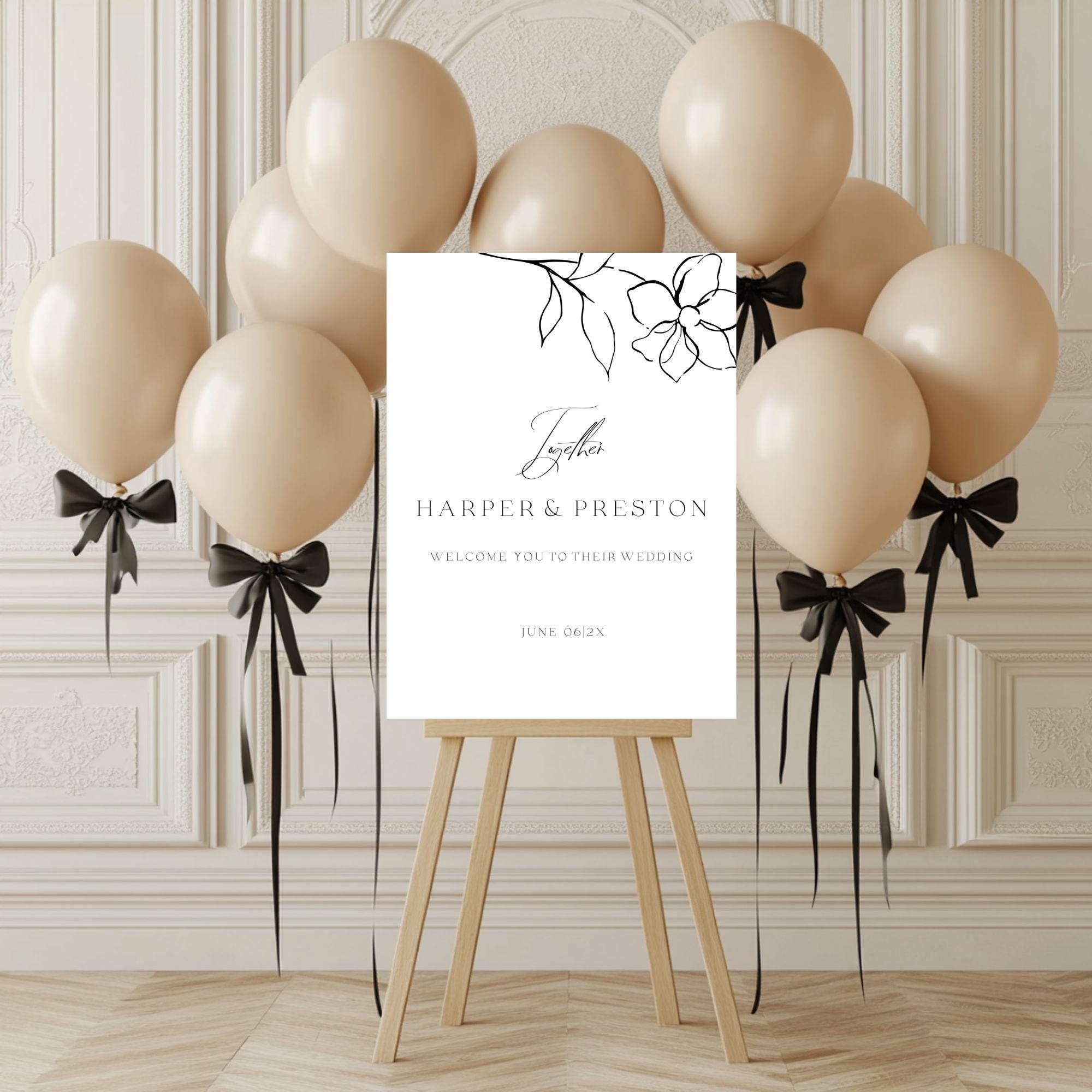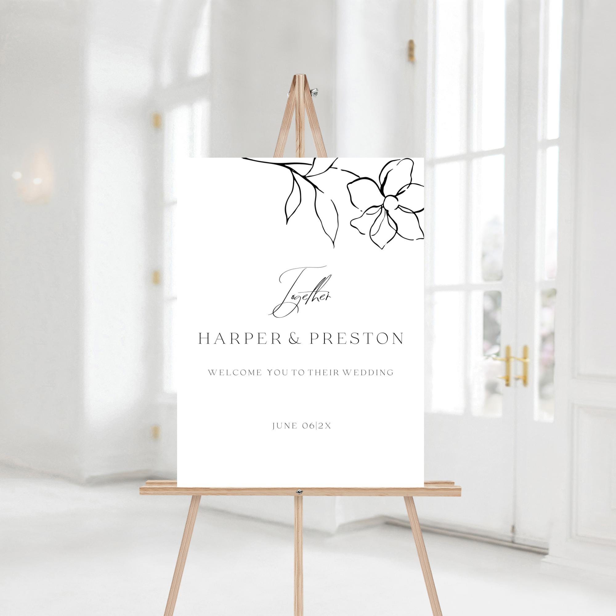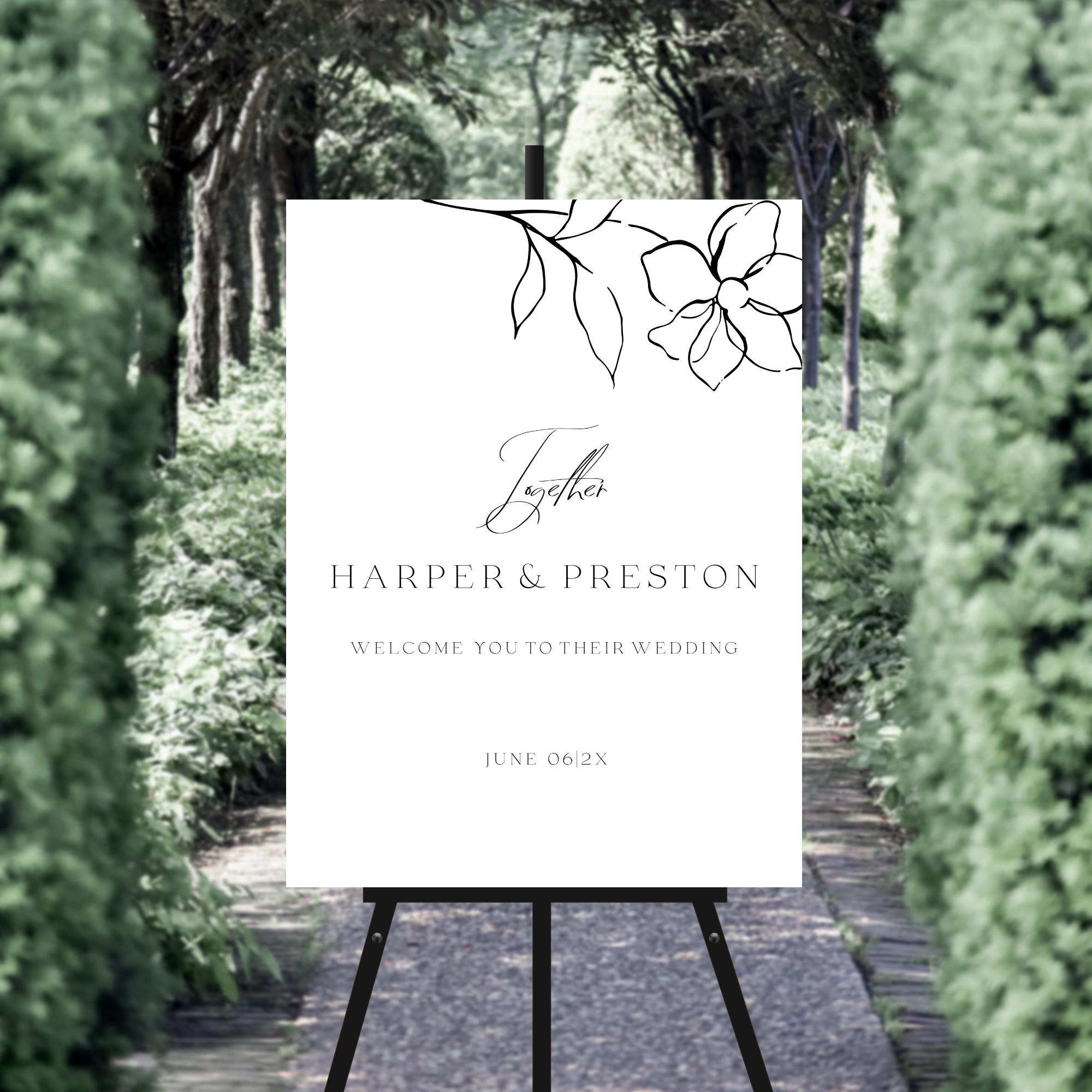 Modern Black and white Wedding Welcome sign Template. An Instant download digital file for you to edit in your web browser with Templett straight after your purchase. Once personalized you are ready to print.