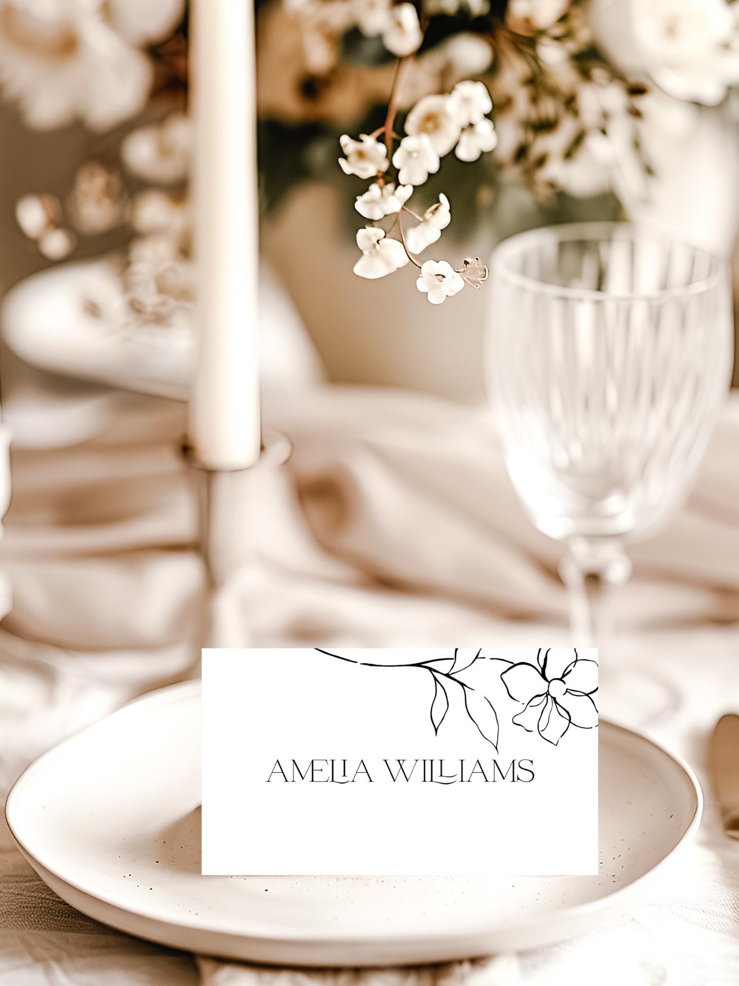 Modern Floral Place Card Template. An Instant download digital file for you to edit in your web browser with Templett straight after your purchase. Once personalized you are ready to print.