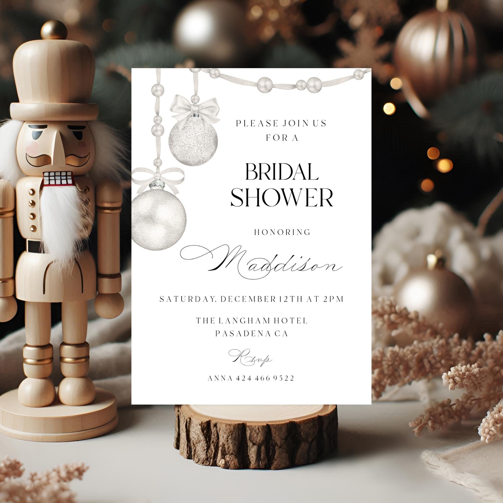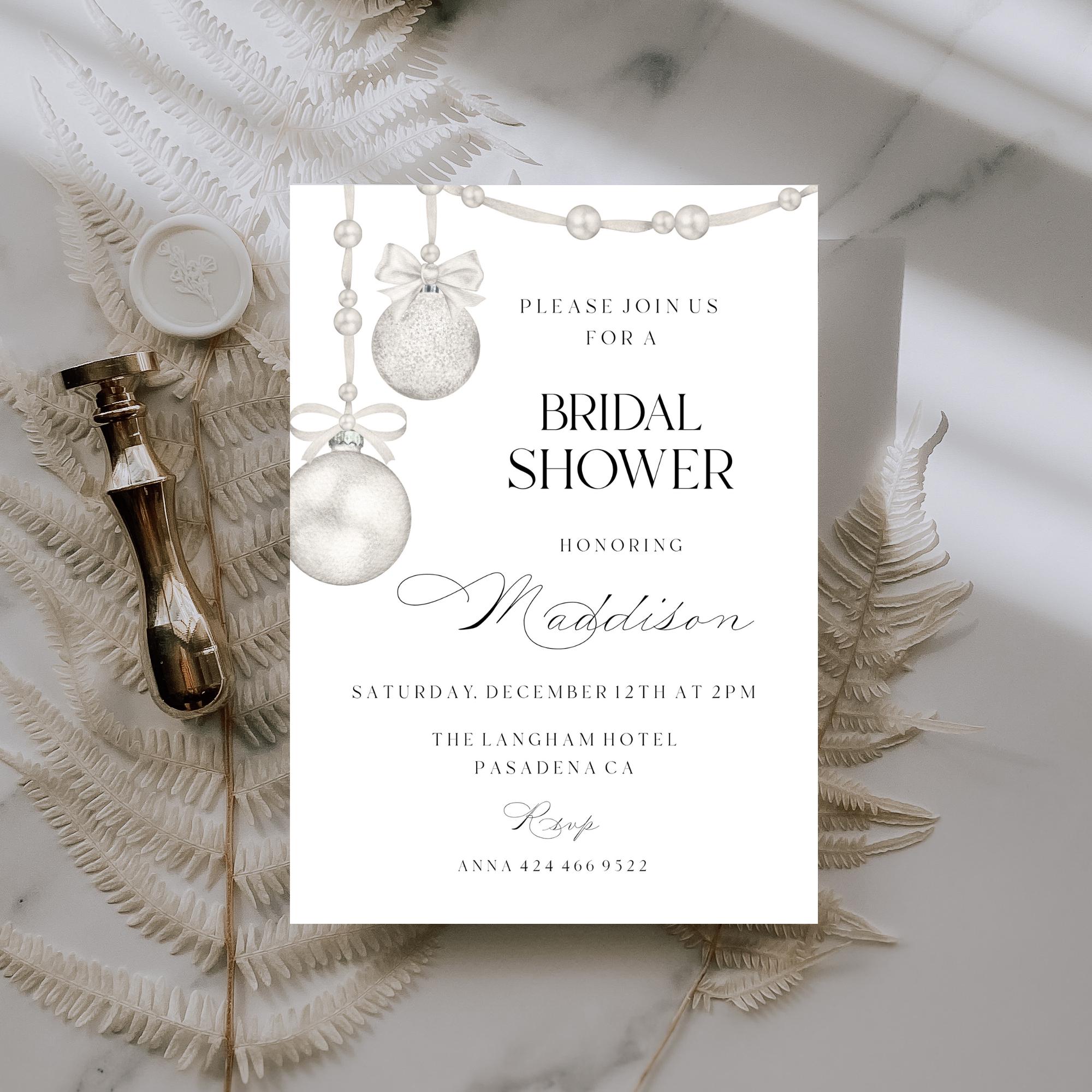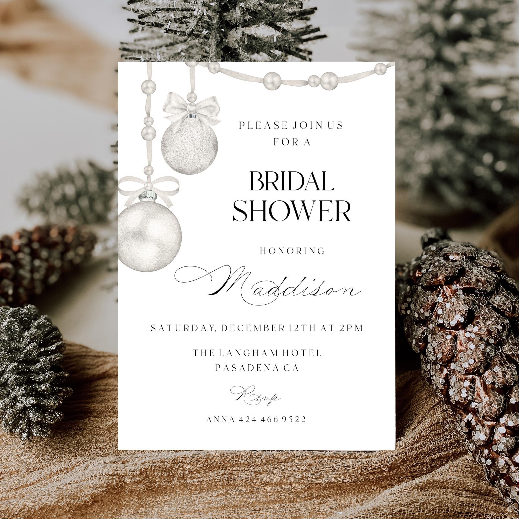 Elegant Christmas Bridal Shower Invitation Template. An Instant download digital file for you to edit in your web browser with Templett straight after your purchase. Once personalized you are ready to print.