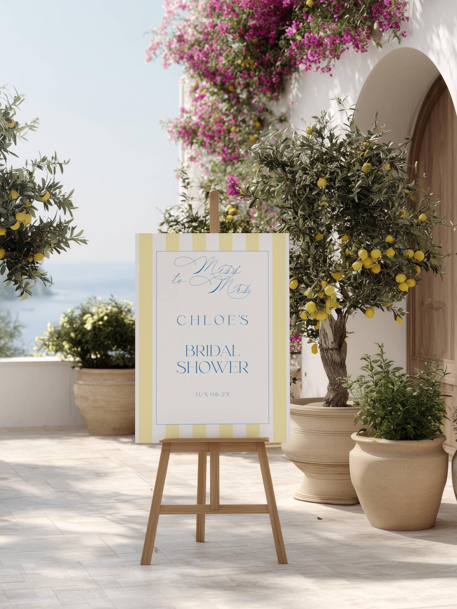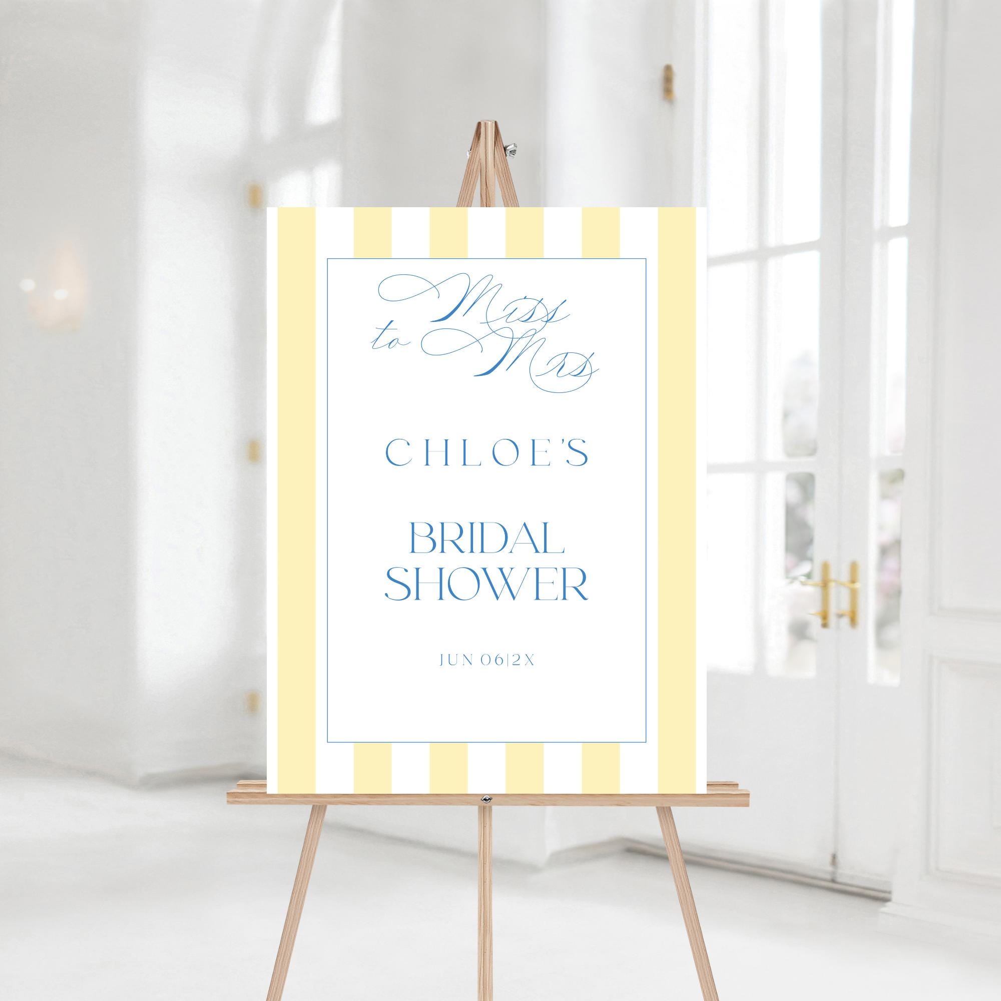 Elegant Lemon Striped Bridal Shower Welcome Sign Template. An Instant download digital file for you to edit in your web browser with Templett straight after your purchase. Once personalized you are ready to print.