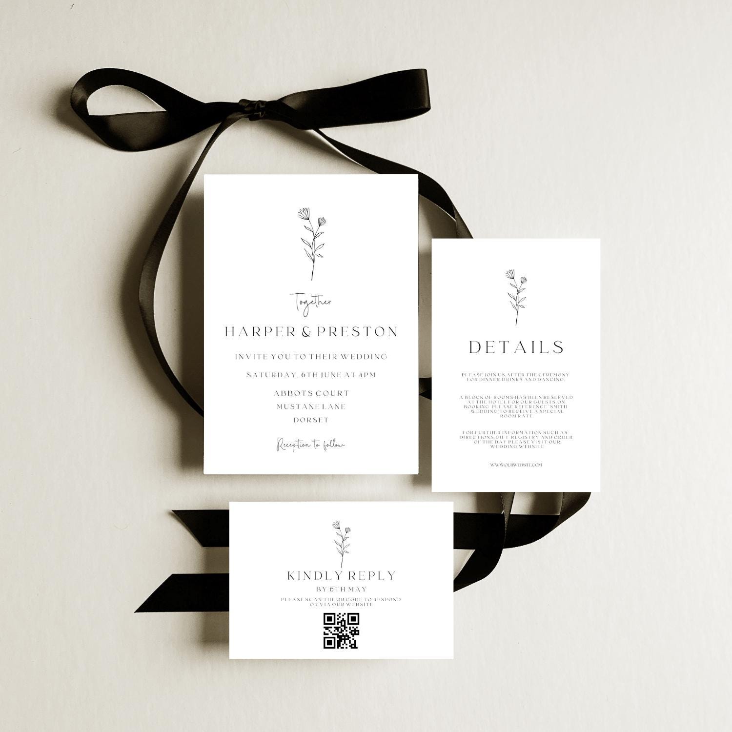 Elegant Wedding Invitation Suite Template. An Instant download digital file for you to edit in your web browser with Templett straight after your purchase. Once personalized you are ready to print.