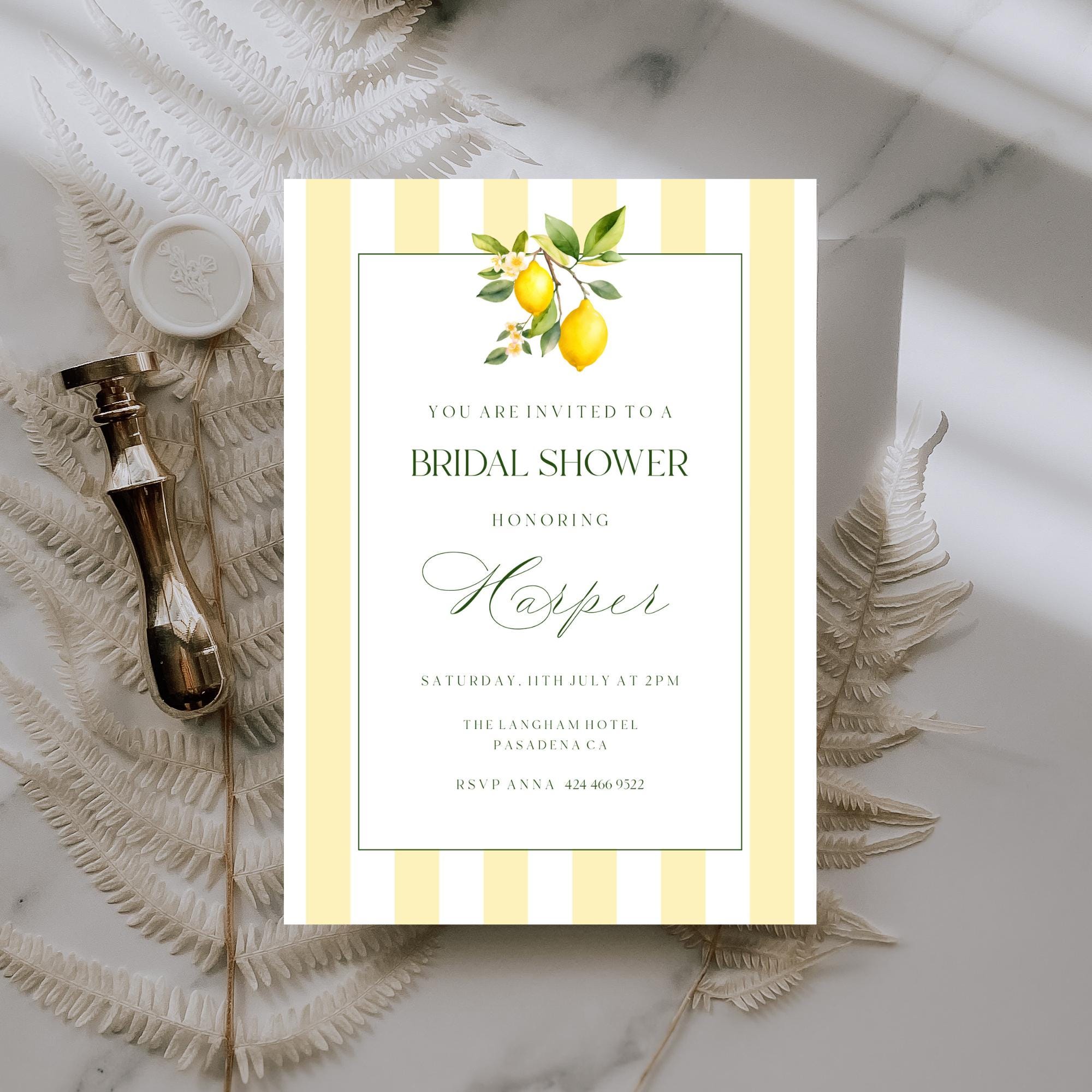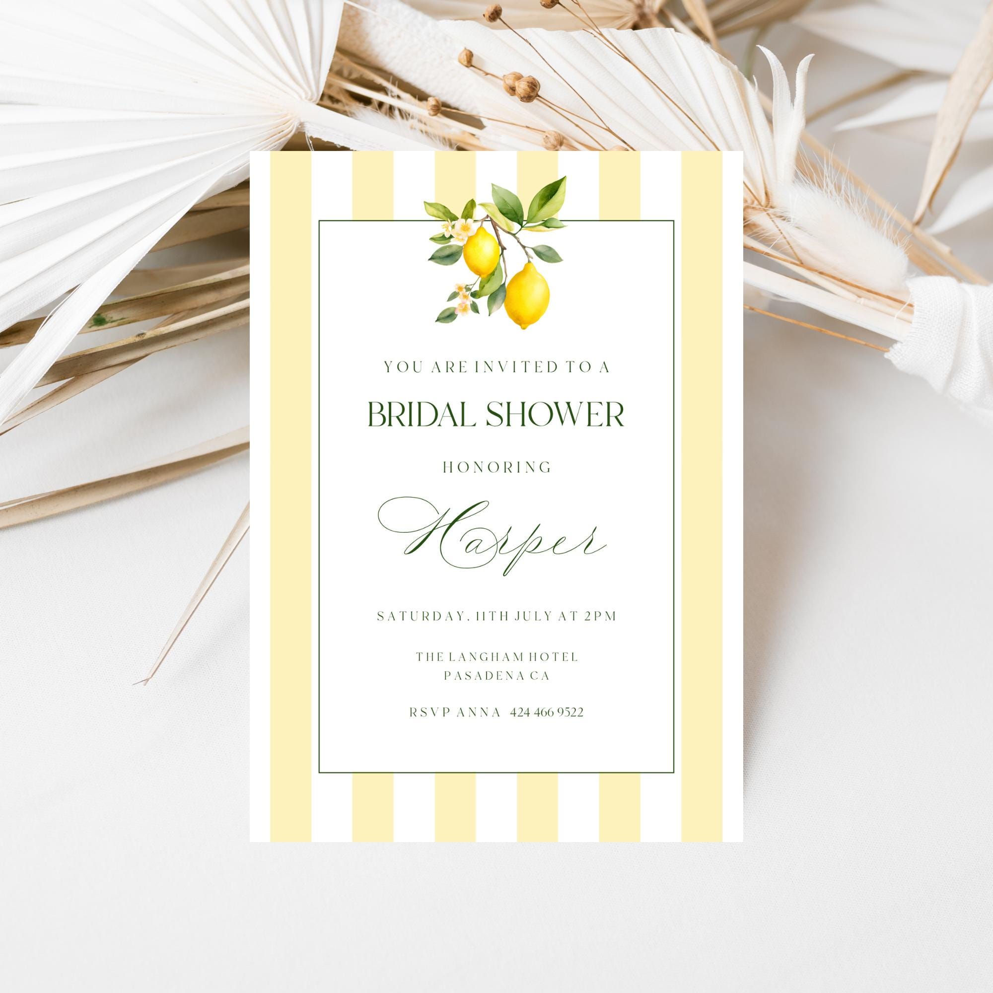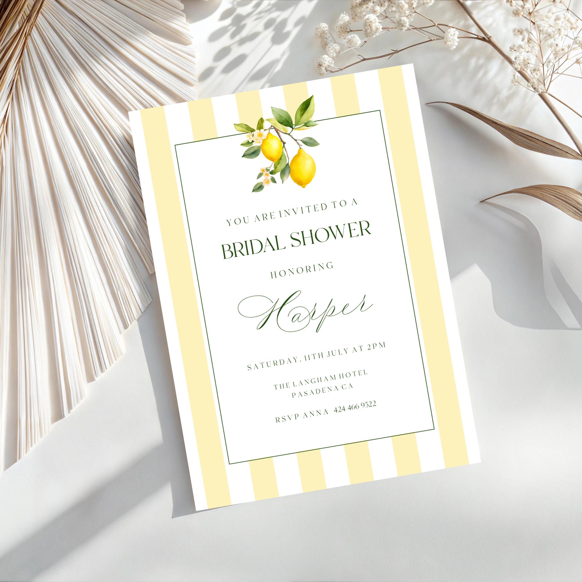 Lemon Bridal Shower Invitation Template. An Instant download digital file for you to edit in your web browser with Templett straight after your purchase. Once personalized you are ready to print.