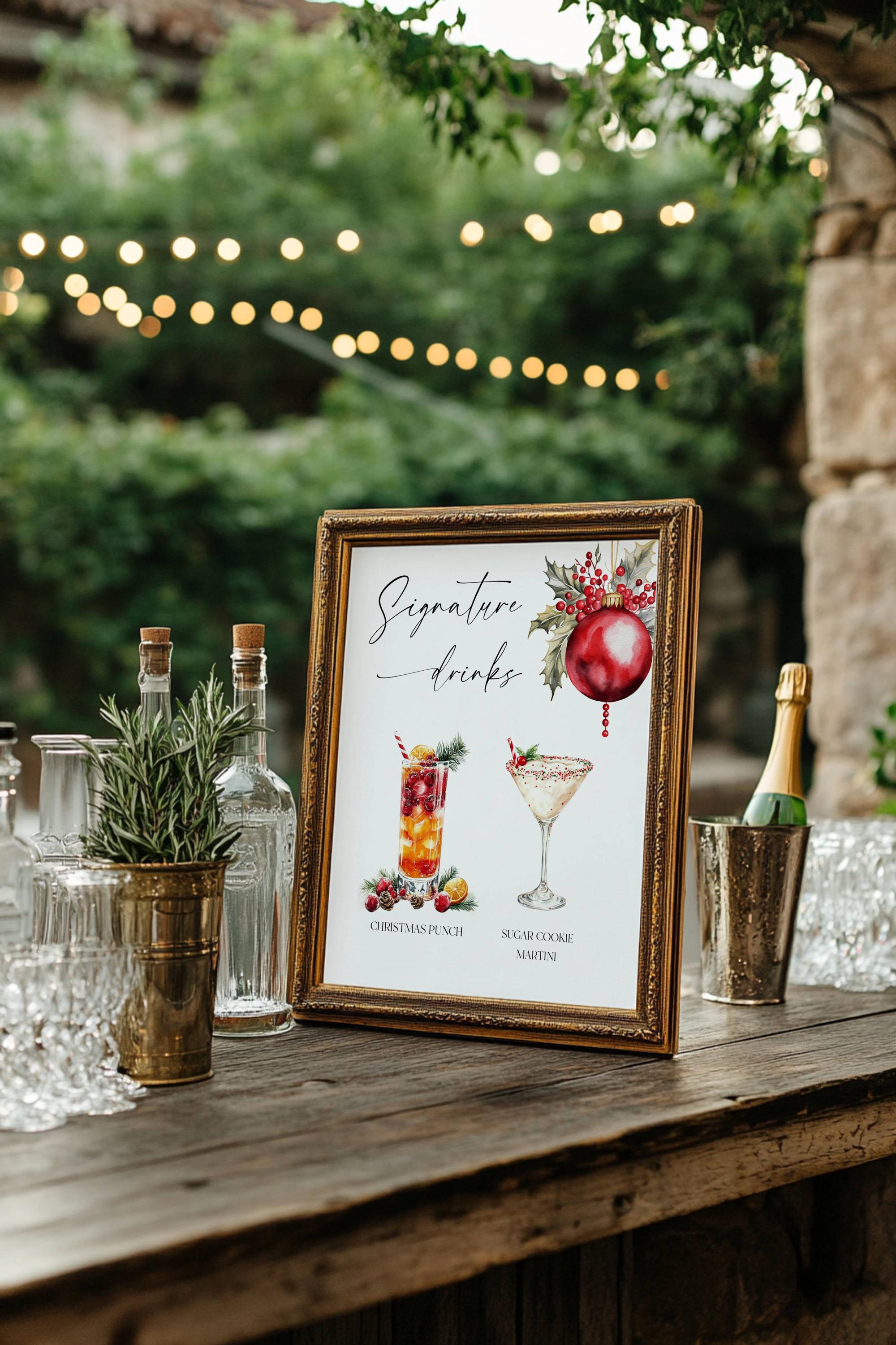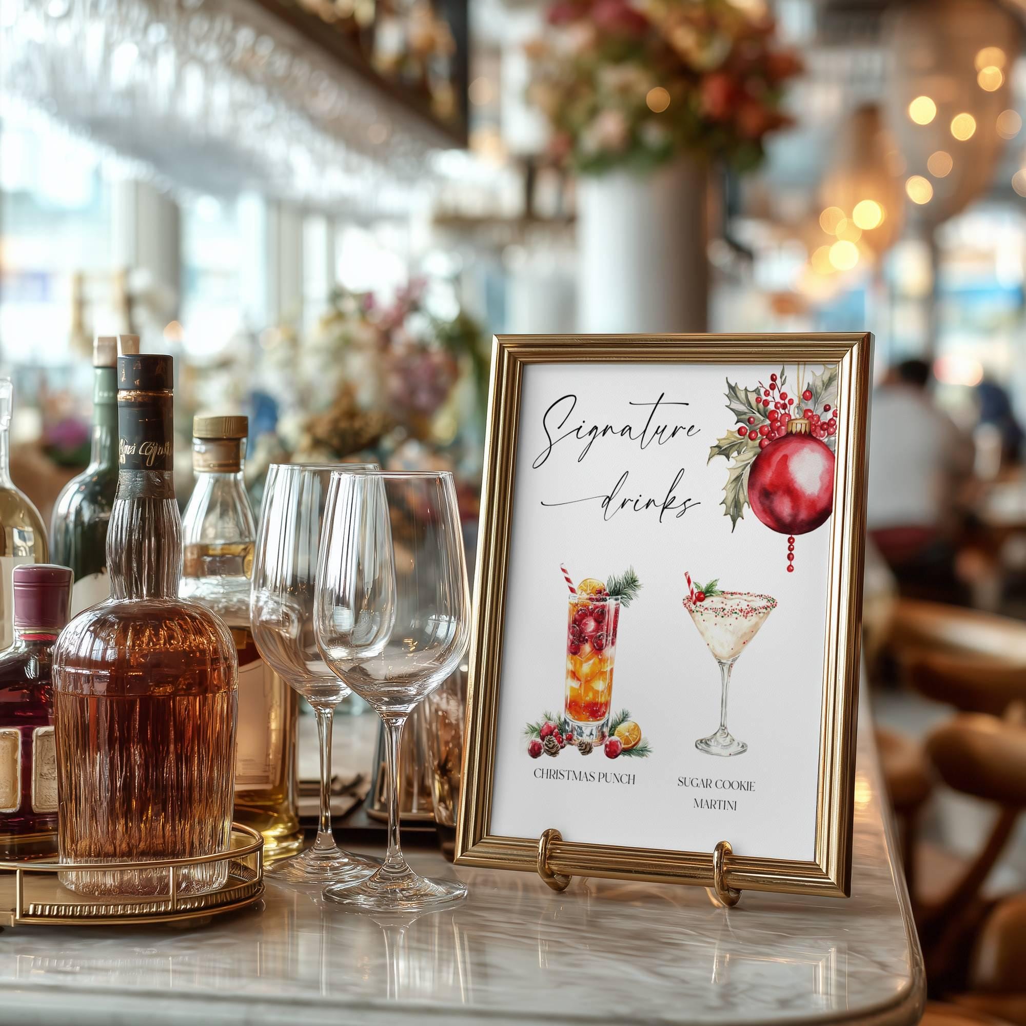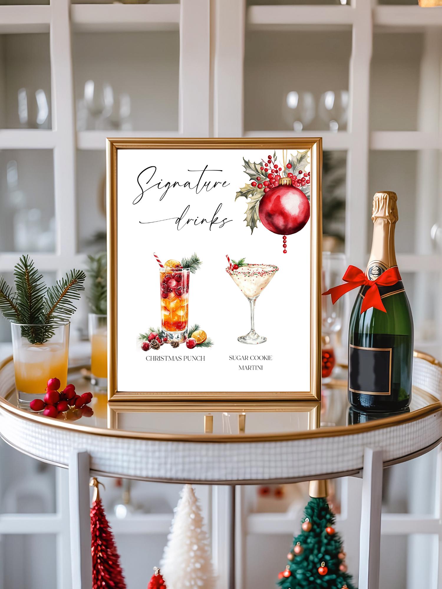 Christmas Signature Drinks Sign Template. An Instant download digital file for you to edit in your web browser with Templett straight after your purchase. Once personalized you are ready to print.