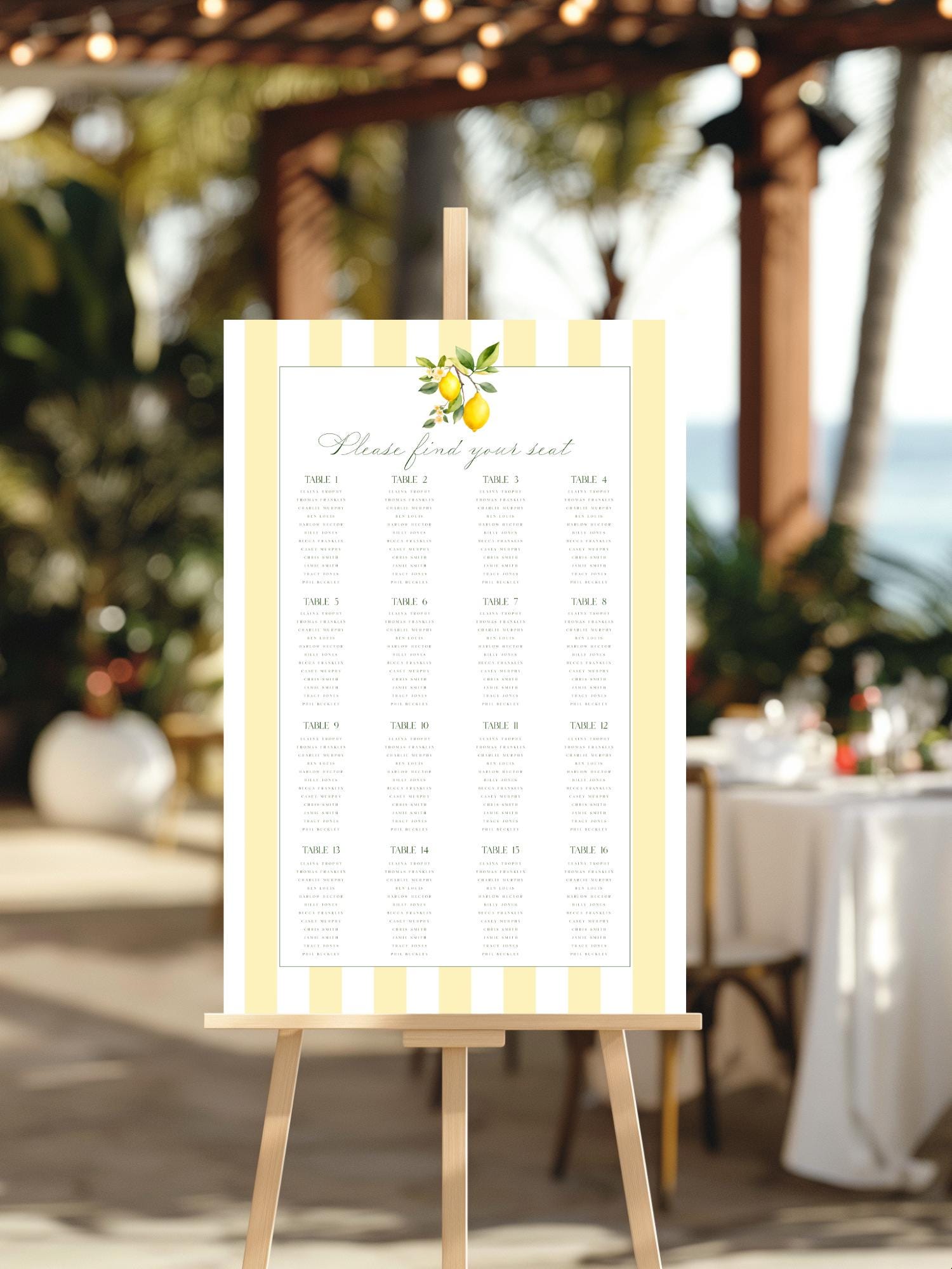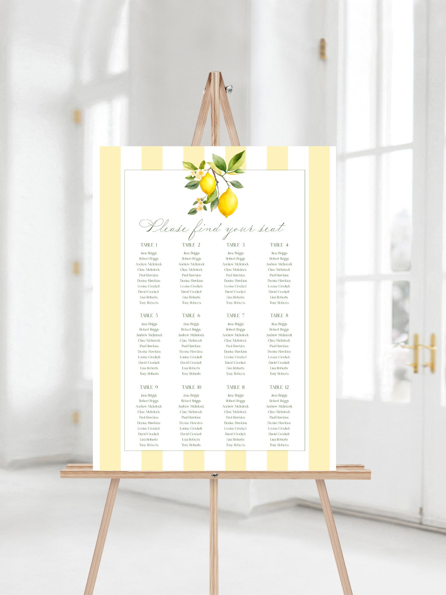 Lemon Wedding Seating Plan Sign Template. An Instant download digital file for you to edit in your web browser with Templett straight after your purchase. Once personalized you are ready to print.