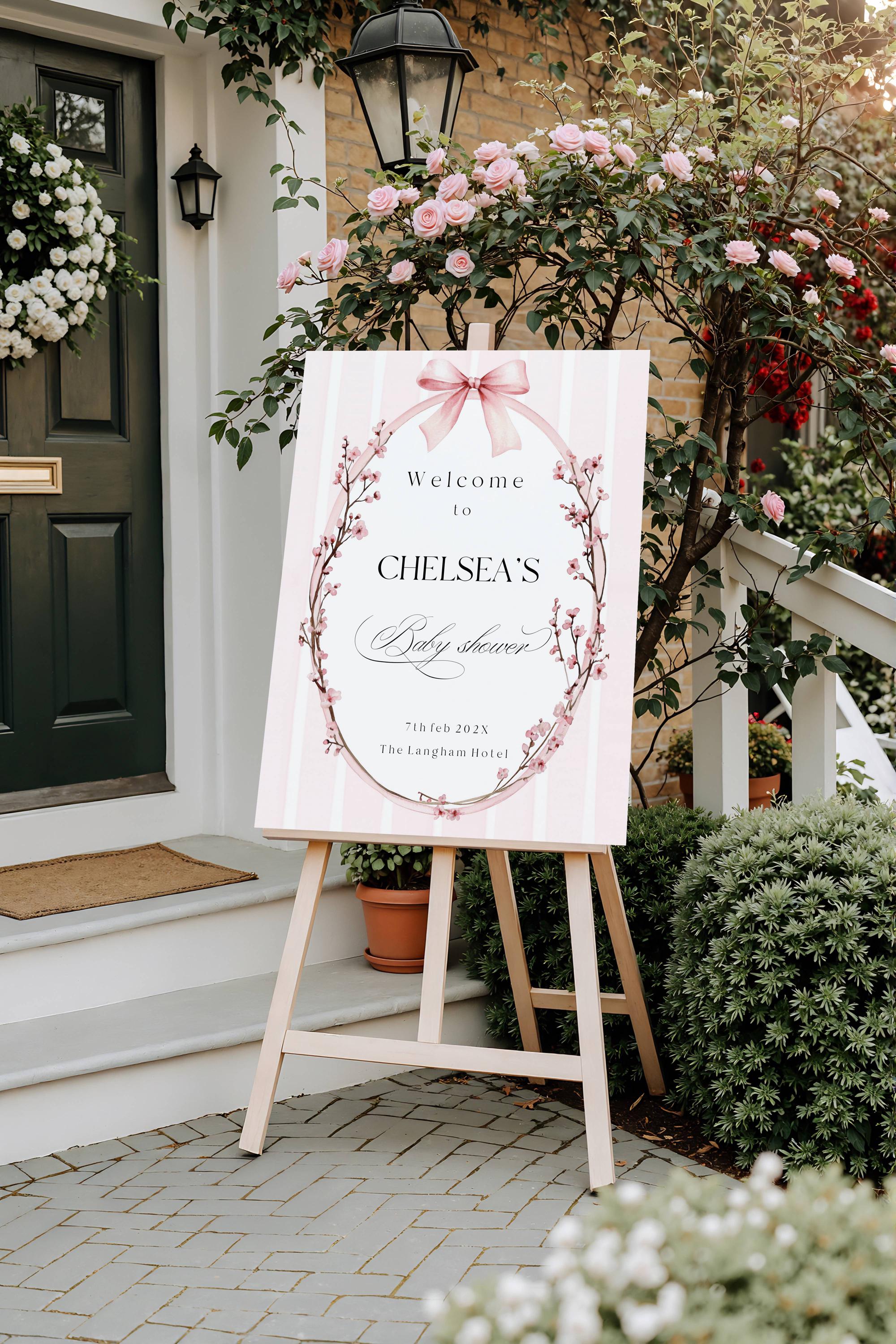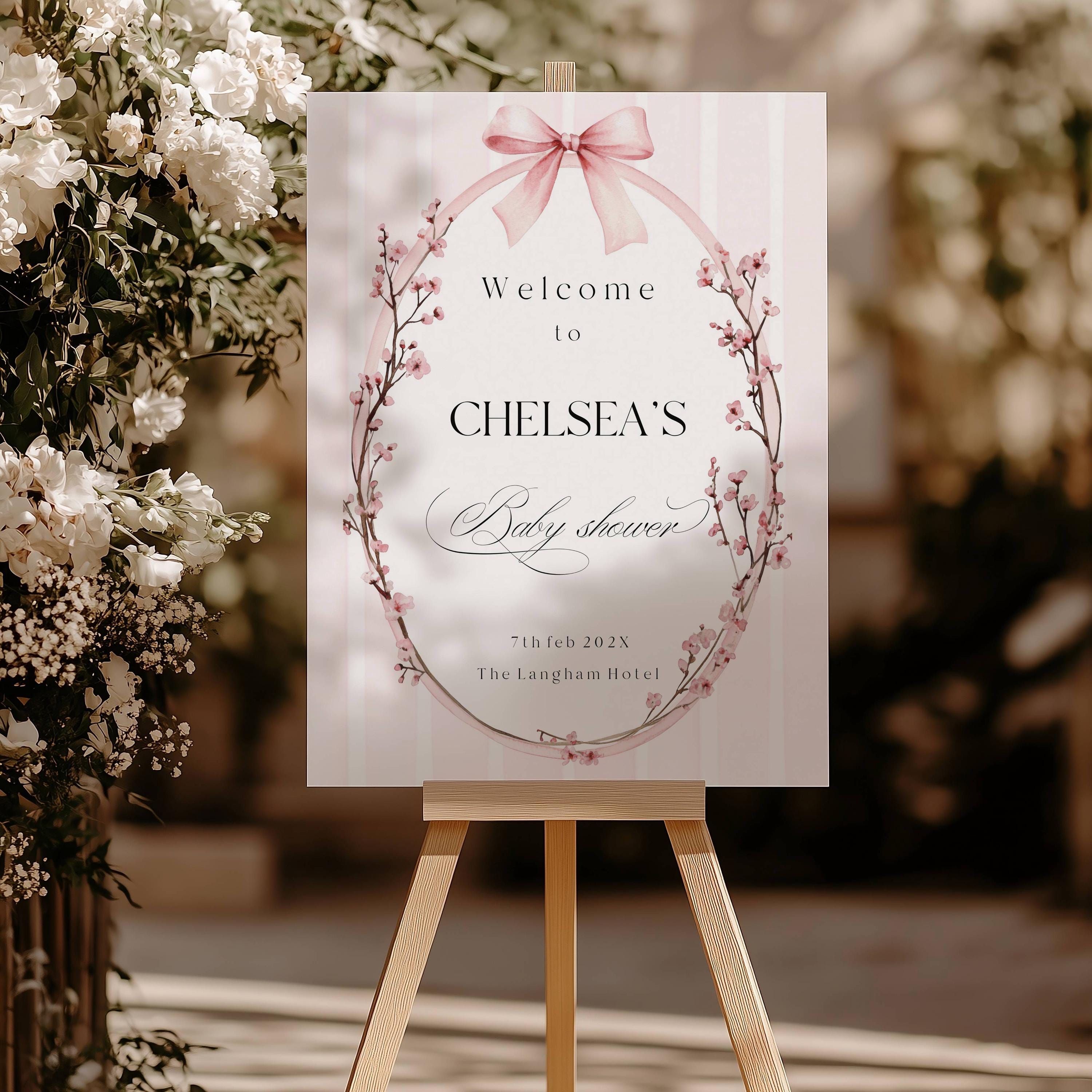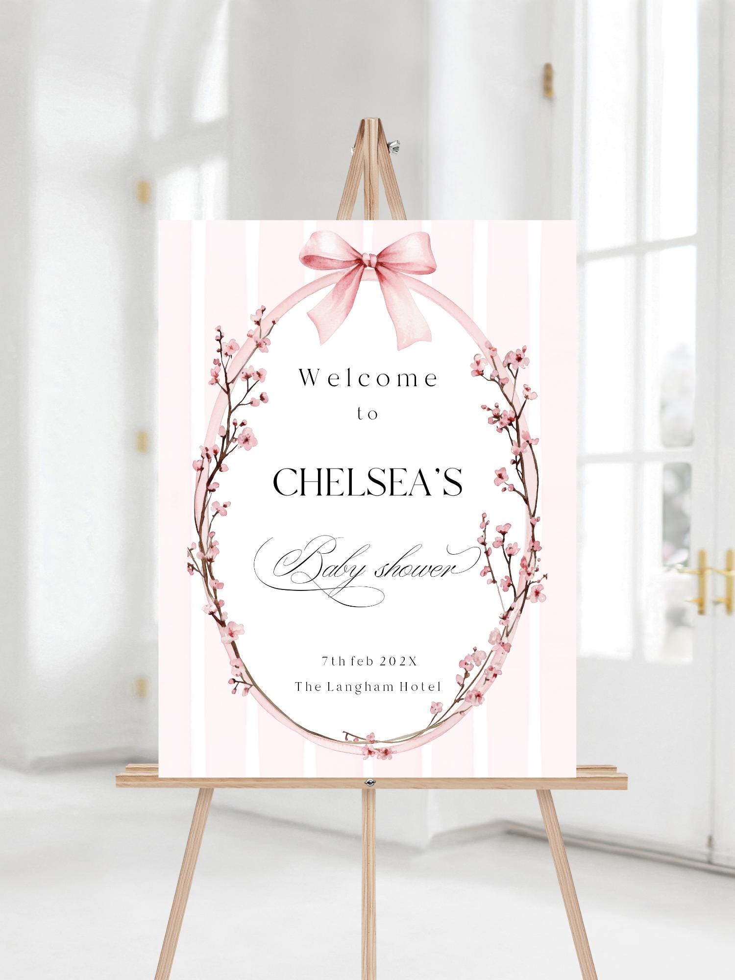 Pink Blossom Baby Shower Welcome Sign Template. An Instant download digital file for you to edit in your web browser with Templett straight after your purchase. Once personalized you are ready to print.