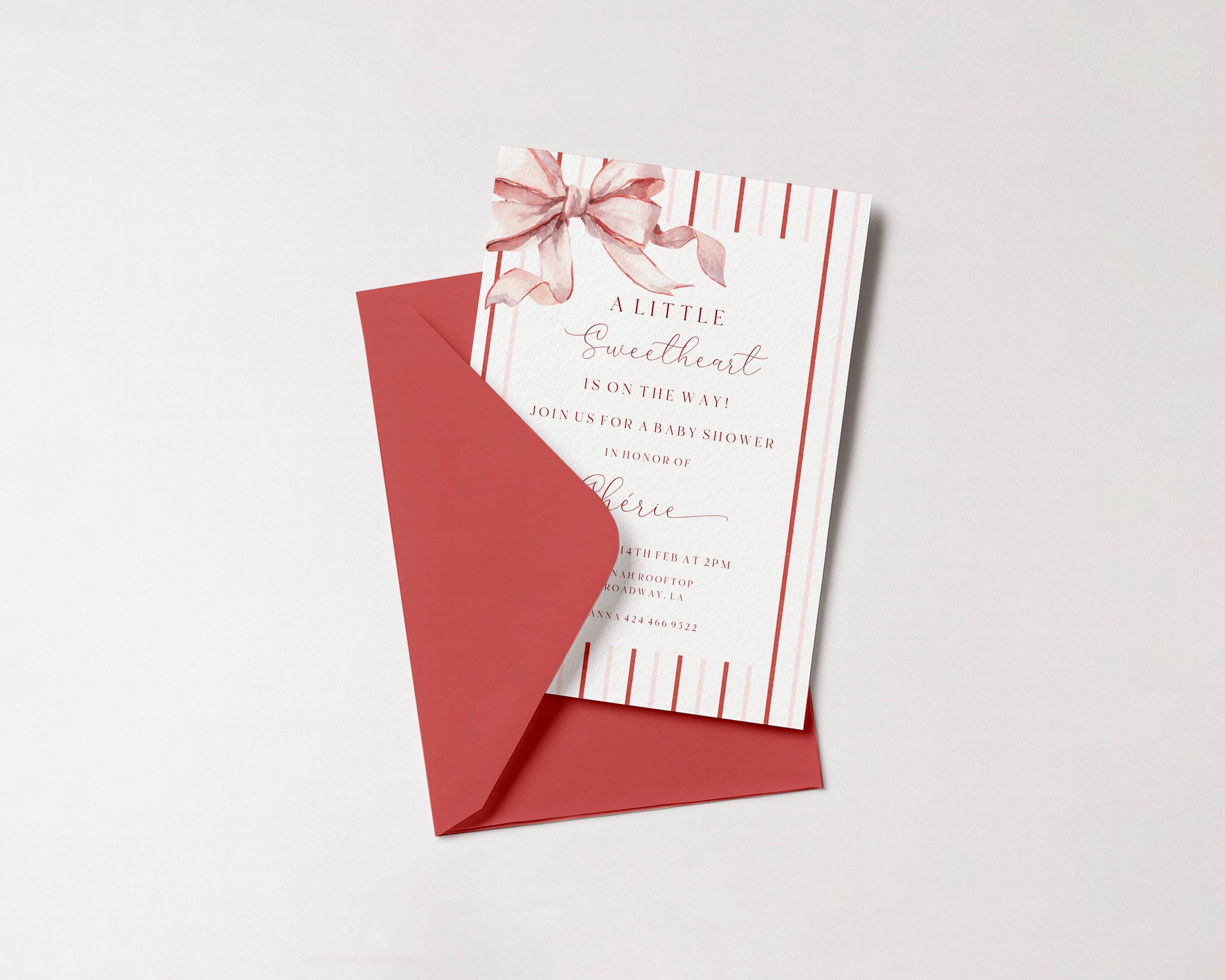 Valentines Baby shower Invitation, Template. An Instant download digital file for you to edit in your web browser with Templett straight after your purchase. Once personalized you are ready to print.