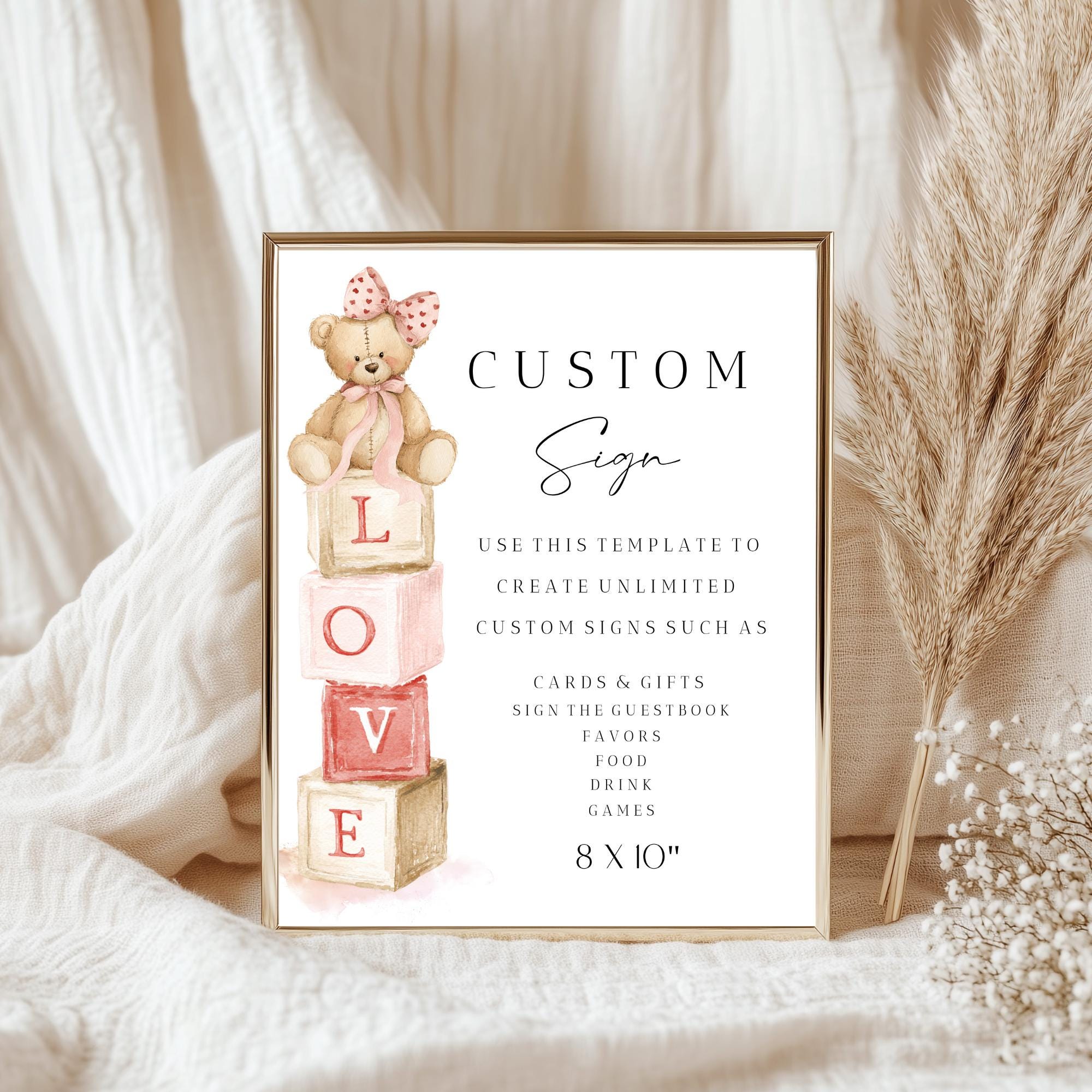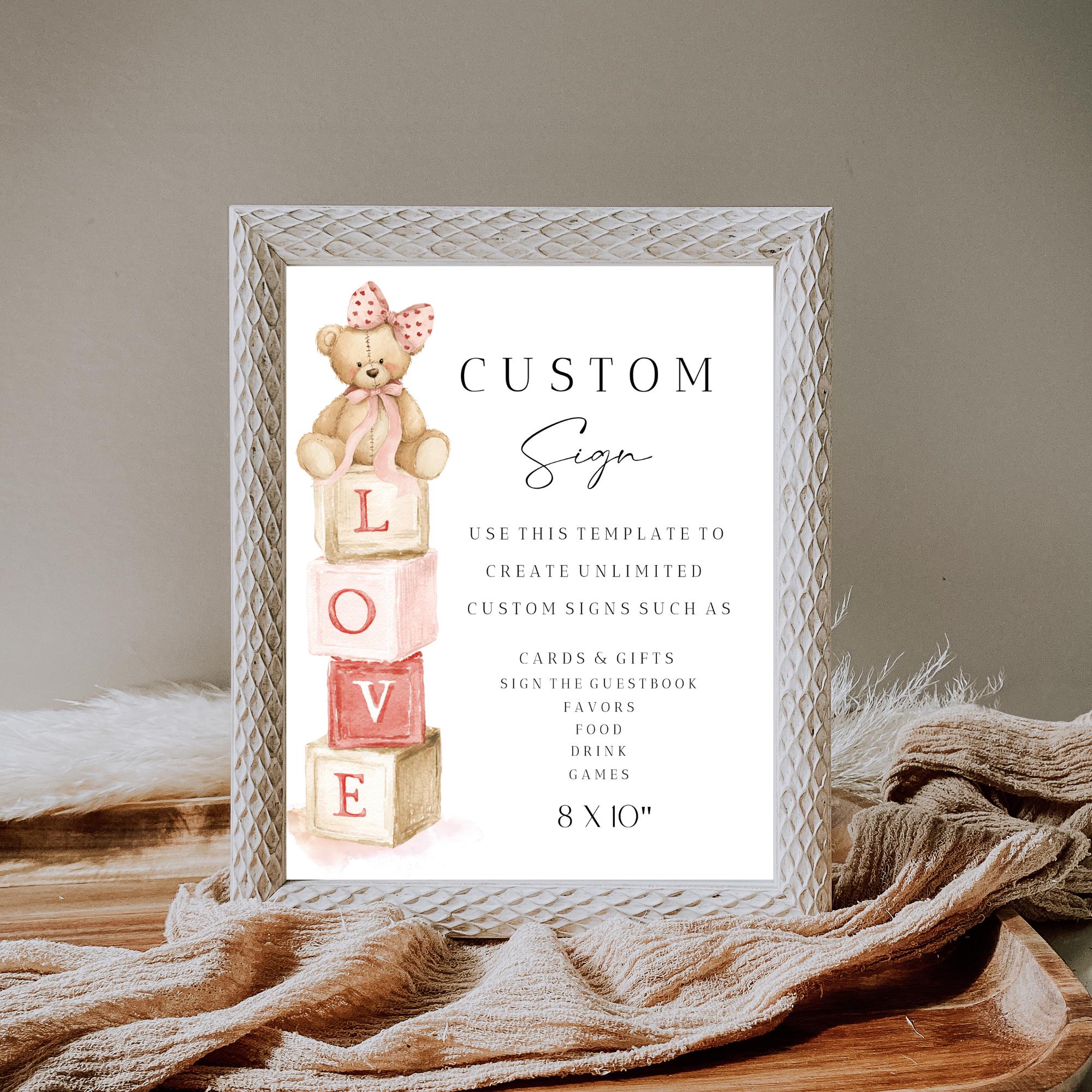 Modern LOVE Valentines Baby Shower Customizable Sign Template. An Instant download digital file for you to edit in your web browser with Templett straight after your purchase. Once personalized you are ready to print.