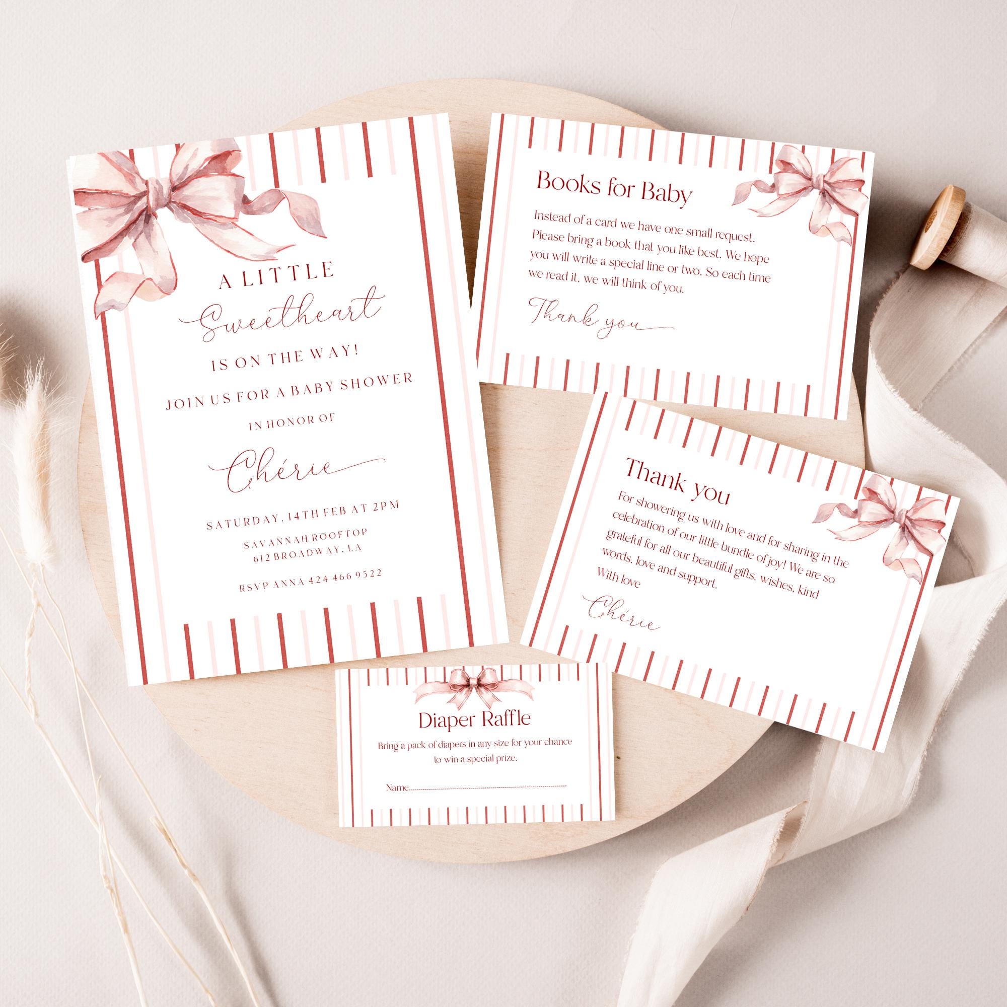 Valentines Baby shower Invitation Bundle Template. An Instant download digital file for you to edit in your web browser with Templett straight after your purchase. Once personalized you are ready to print.