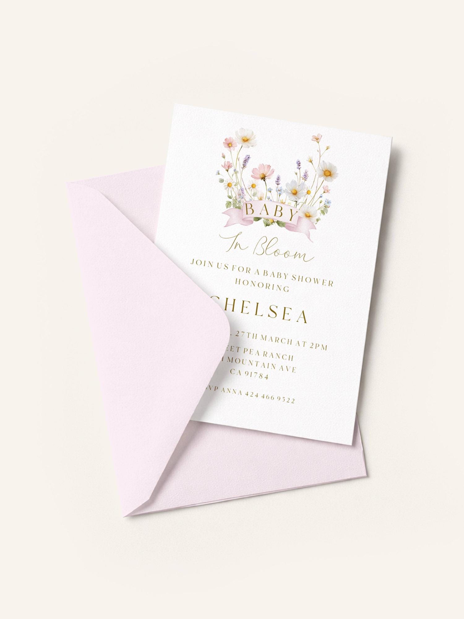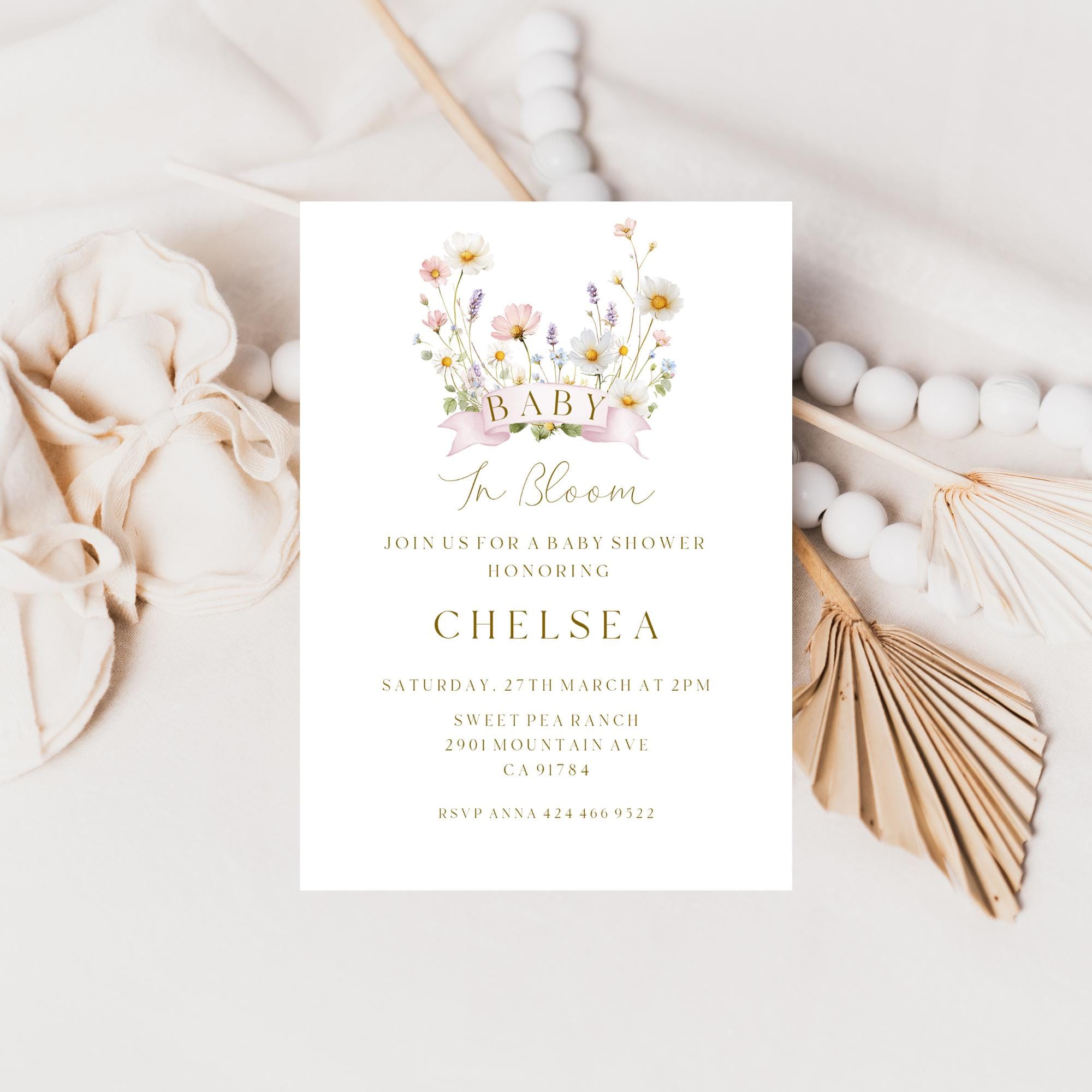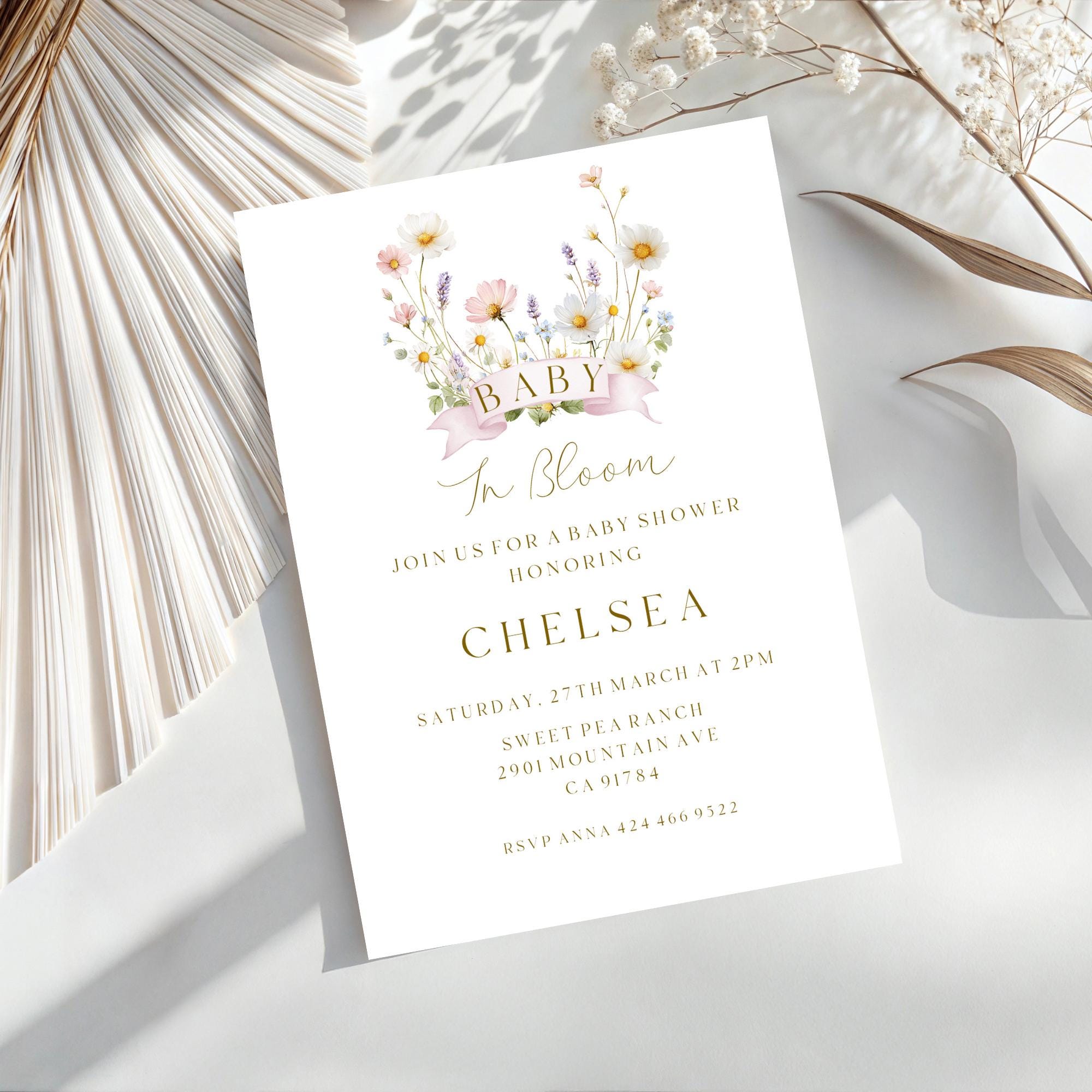 Baby In Bloom Baby Shower Invitation Template. An Instant download digital file for you to edit in your web browser with Templett straight after your purchase. Once personalized you are ready to print.