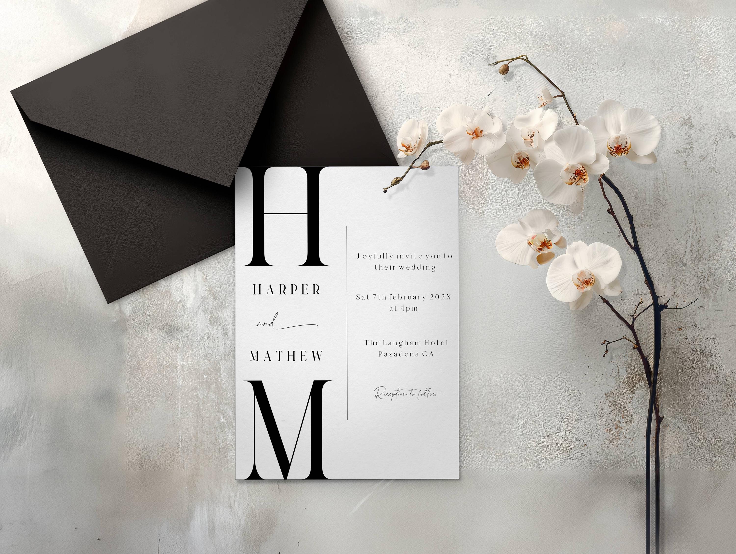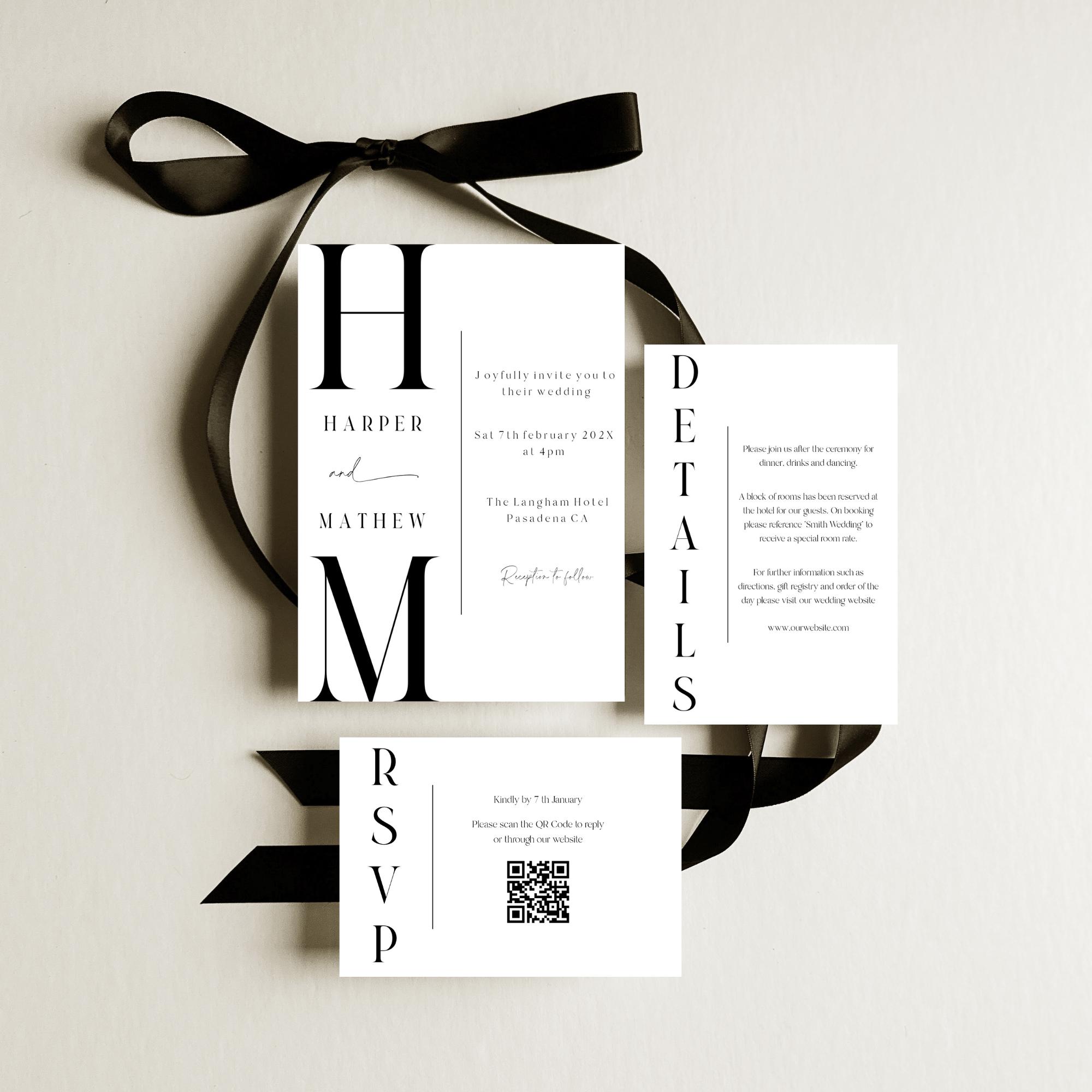 Bold Letter Wedding Invitation Suite. An Instant download digital file for you to edit in your web browser with Templett straight after your purchase. Once personalized you are ready to print.
