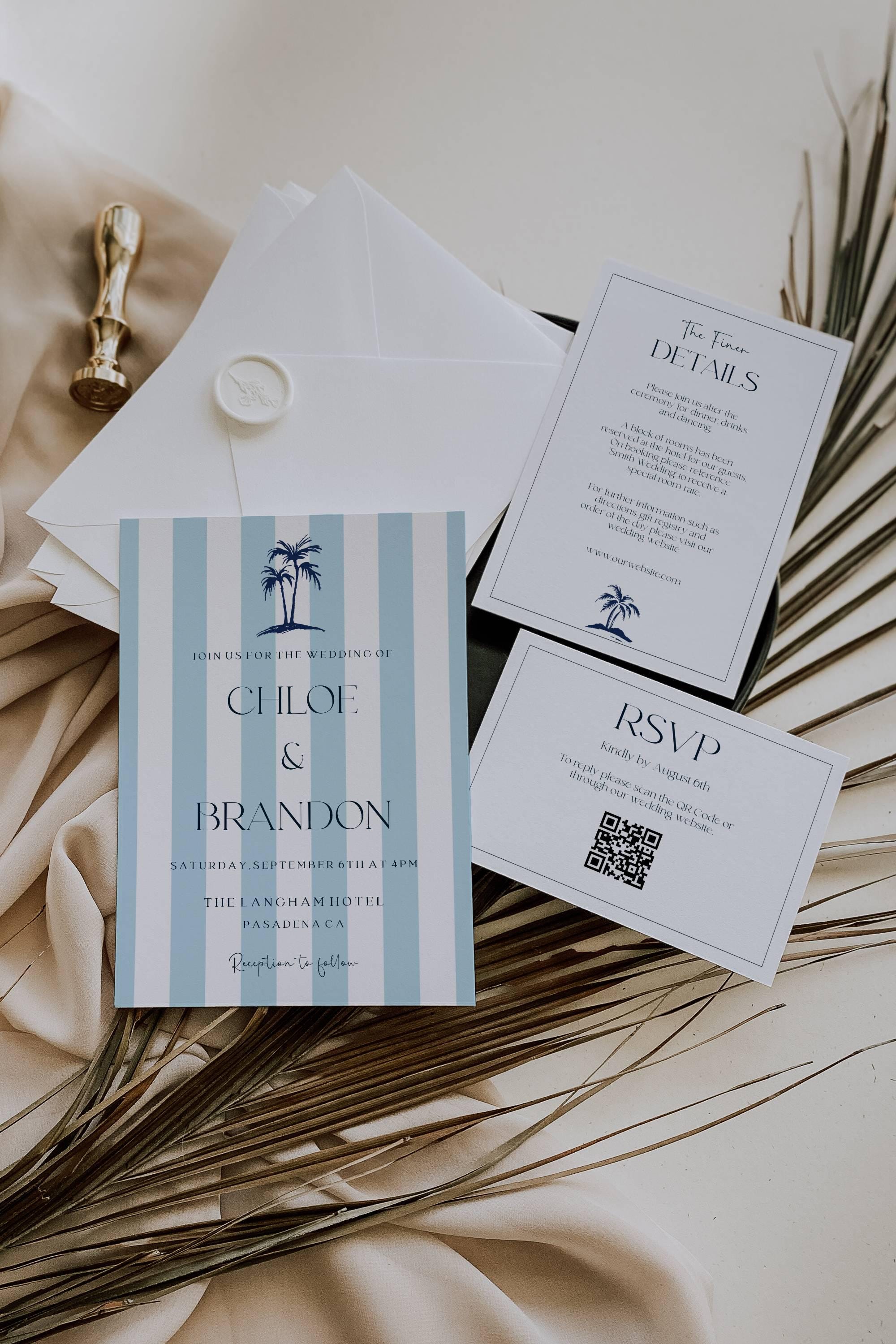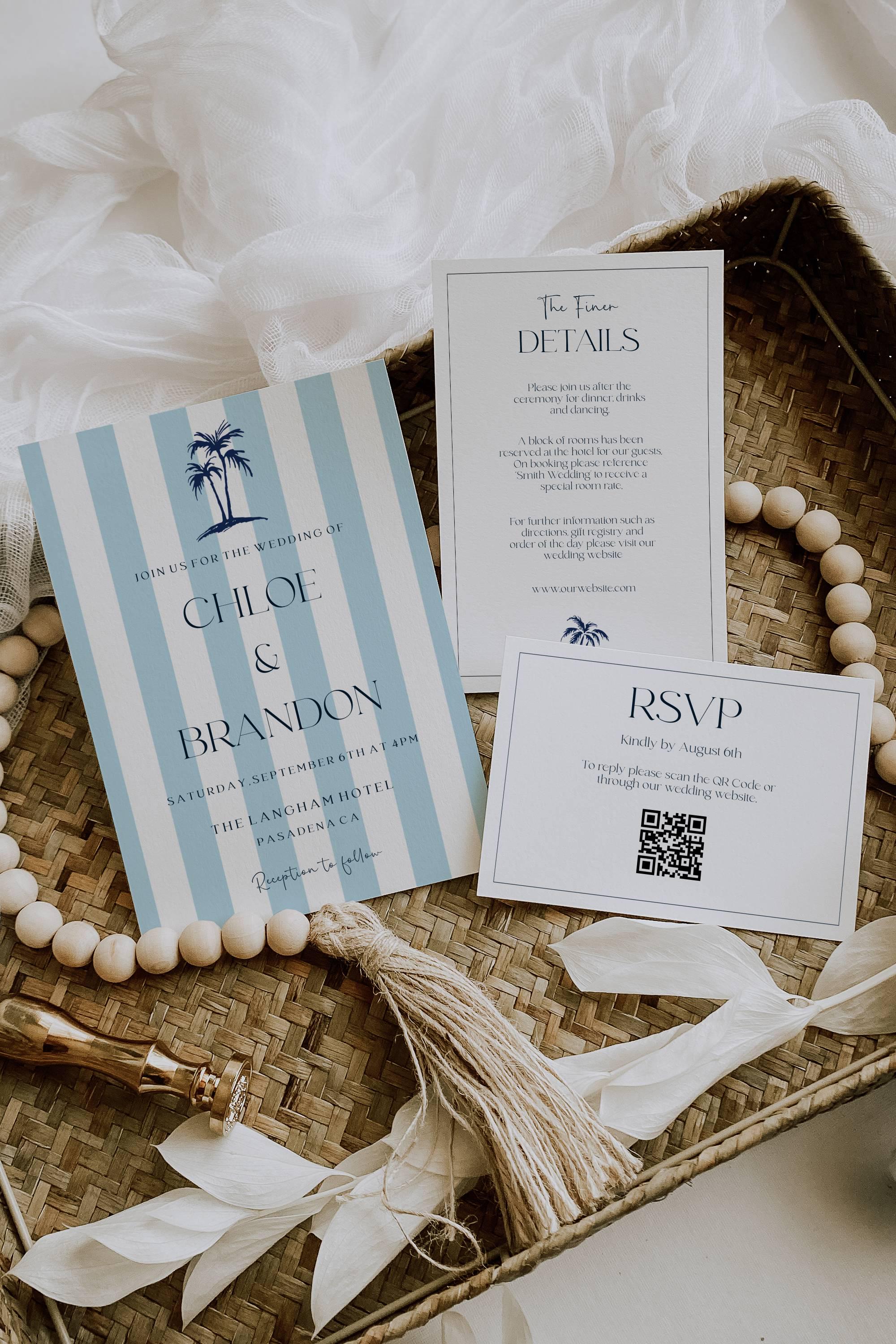 Coastal Wedding Invitation Suite Template. An Instant download digital file for you to edit in your web browser with Templett straight after your purchase. Once personalized you are ready to print.