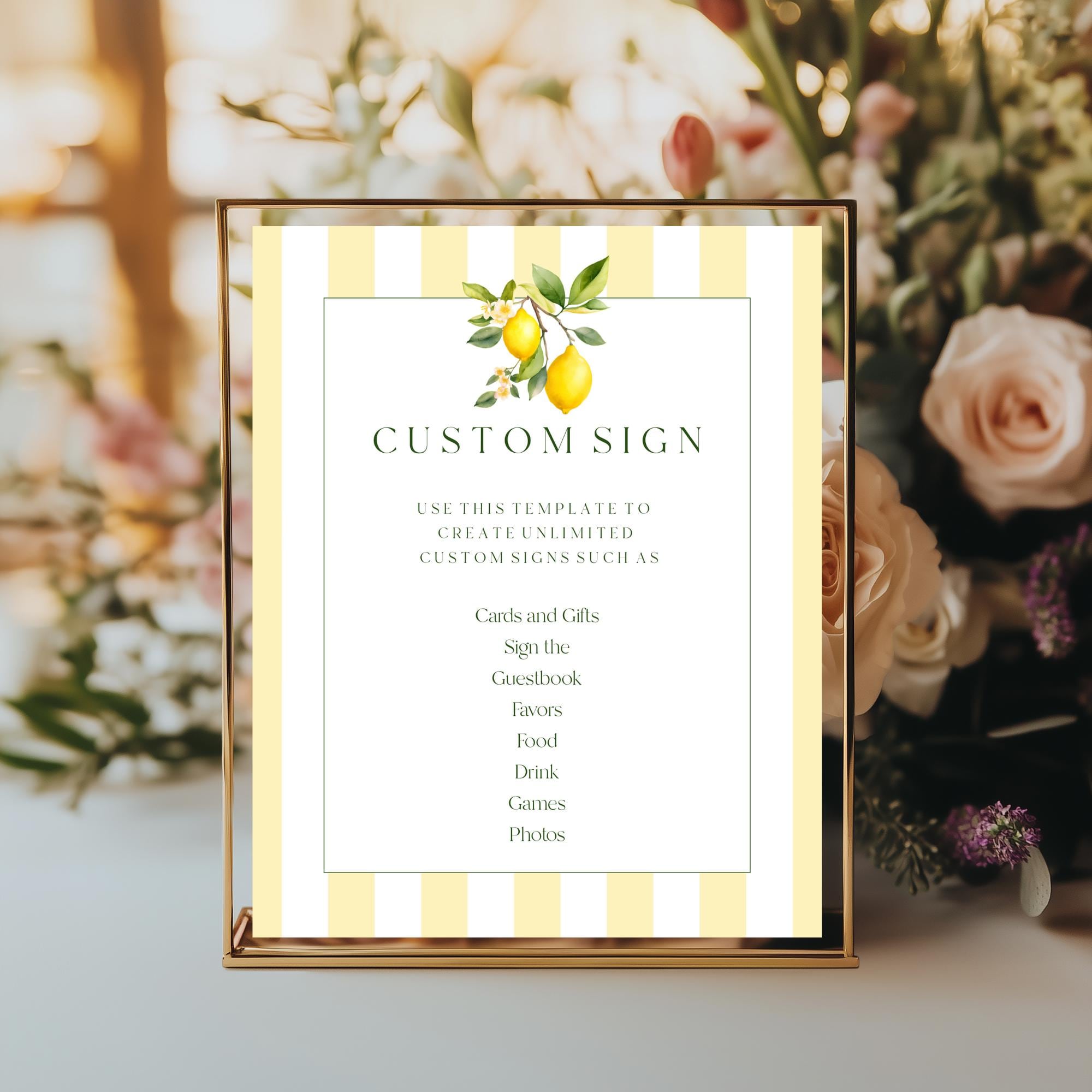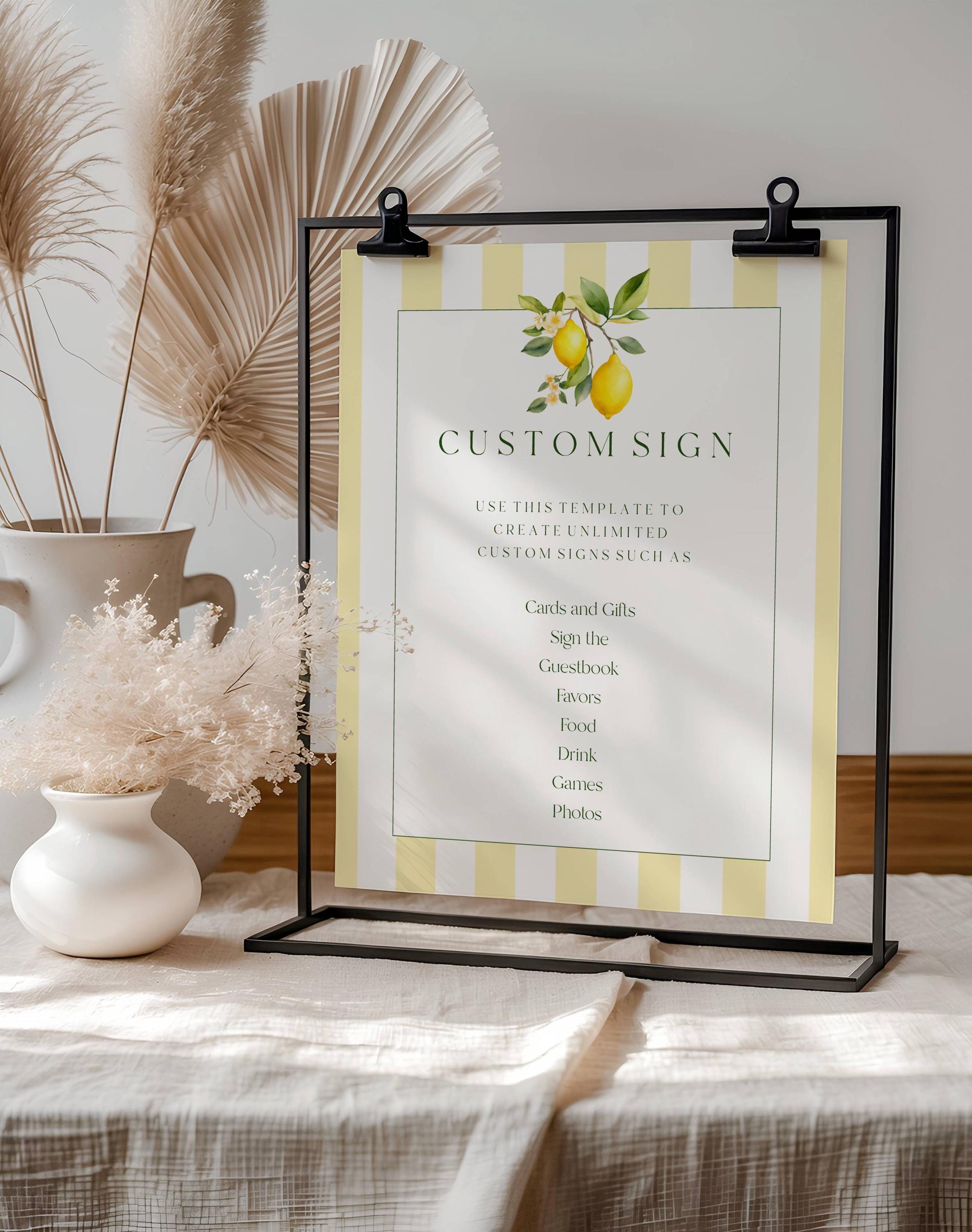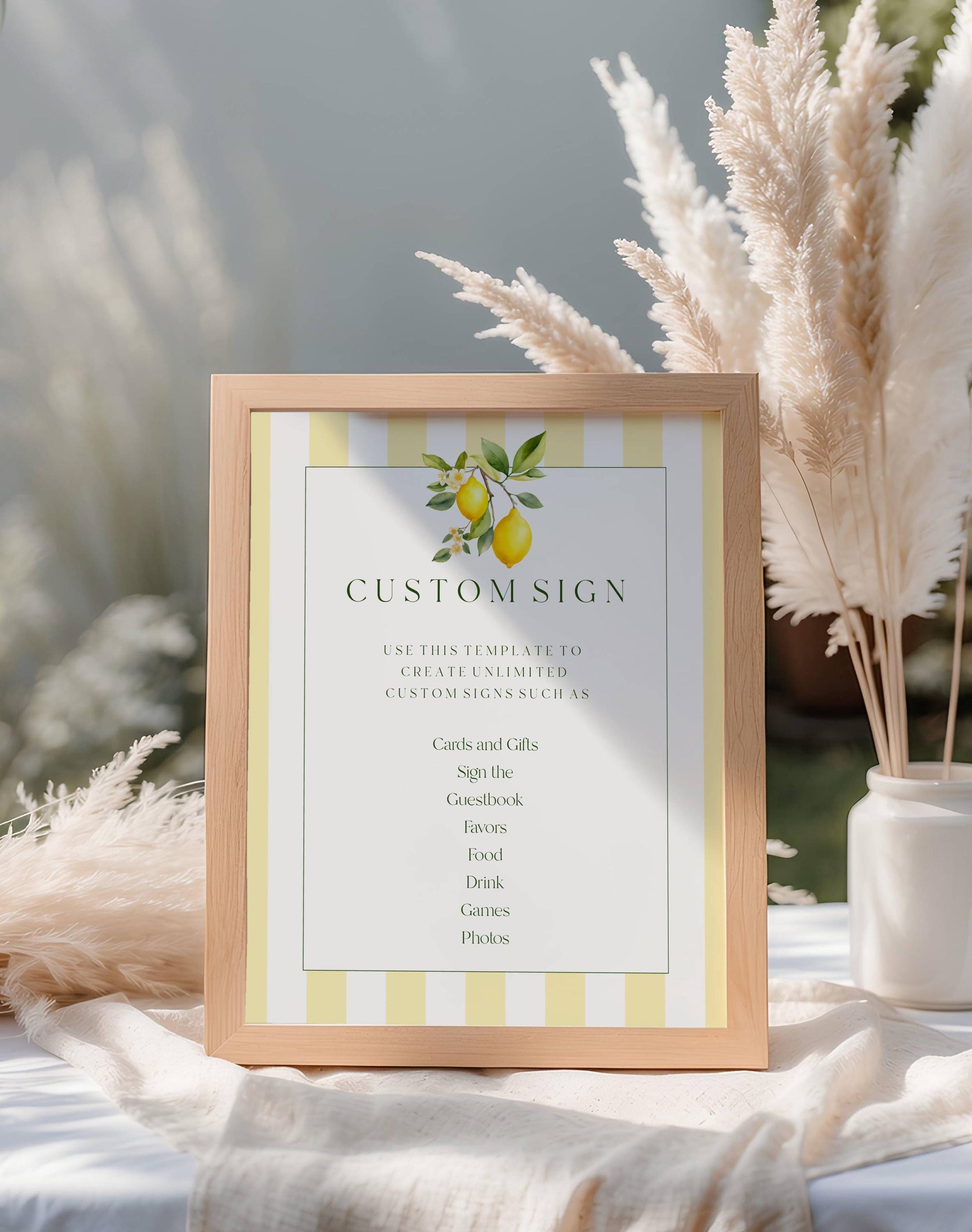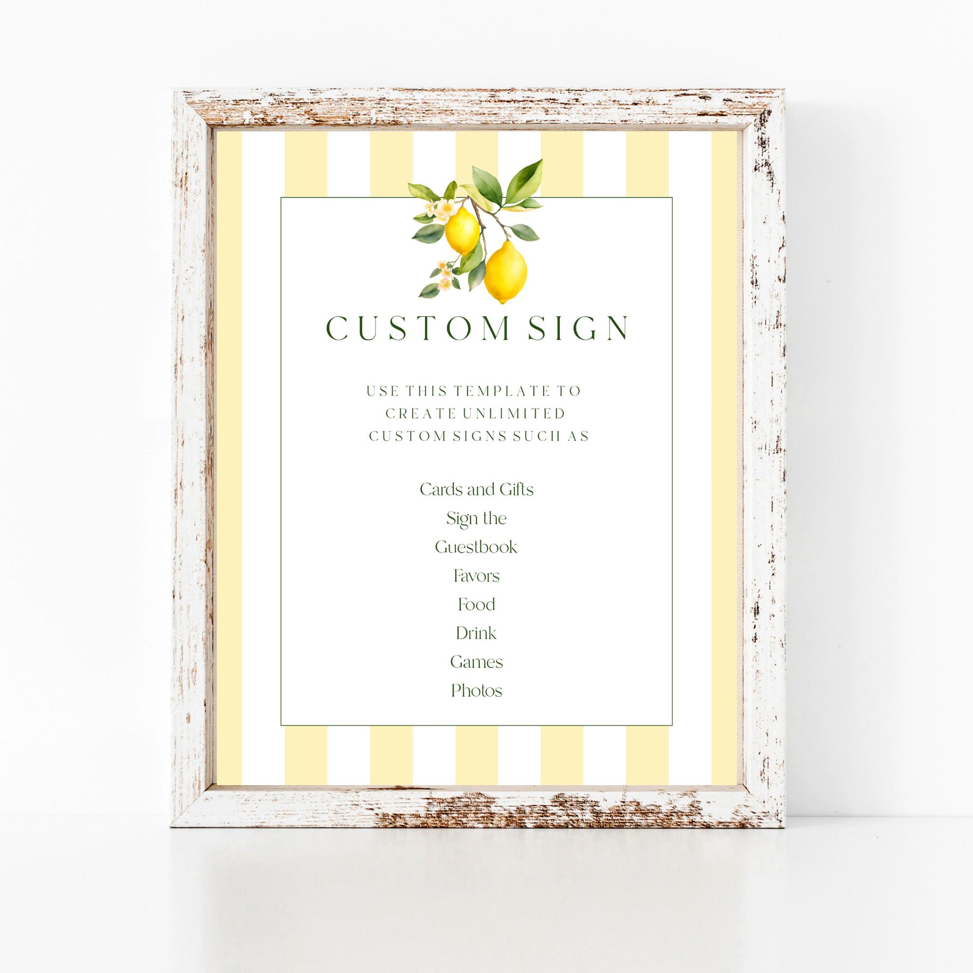 Lemons Custom Sign Template. An Instant download digital file for you to edit in your web browser with Templett straight after your purchase. Once personalized you are ready to print.