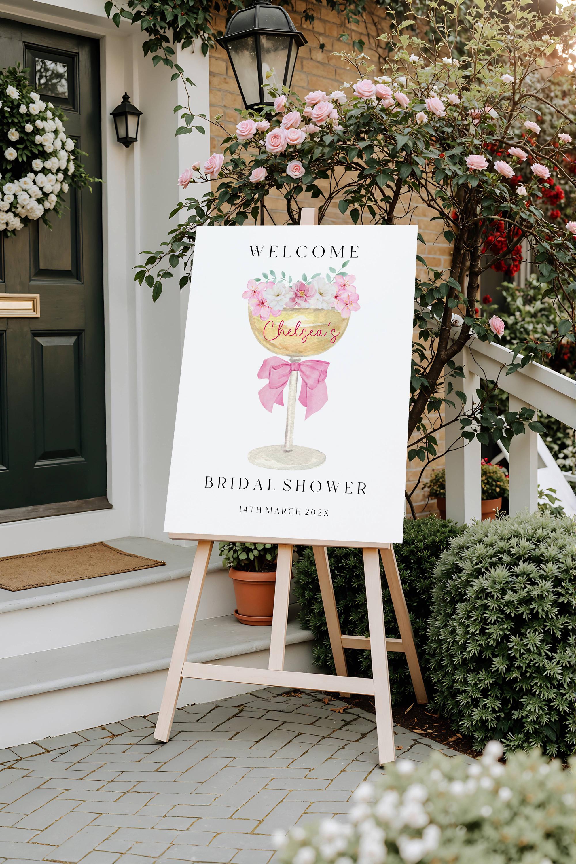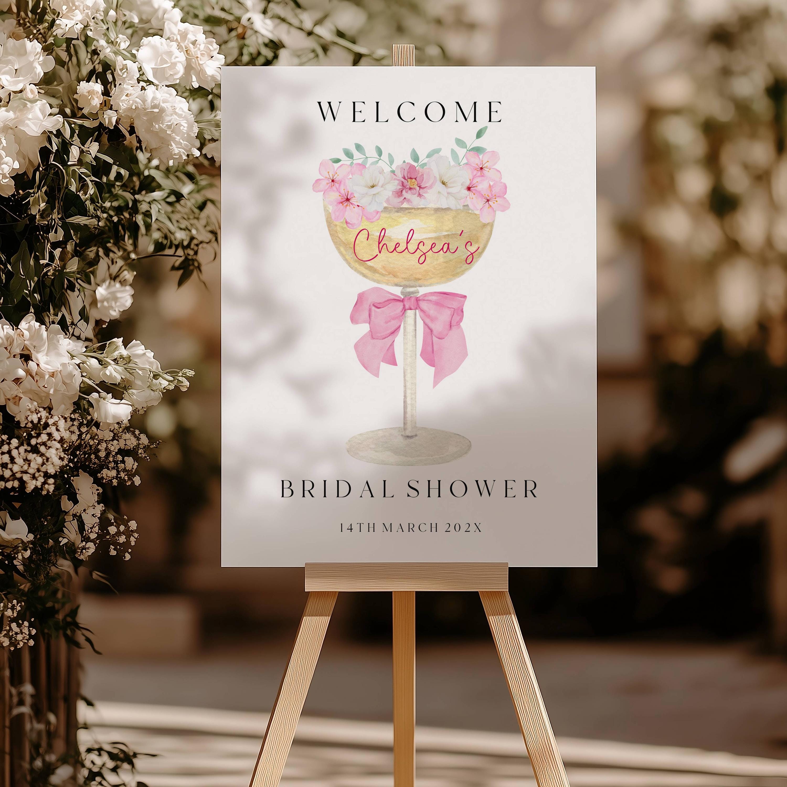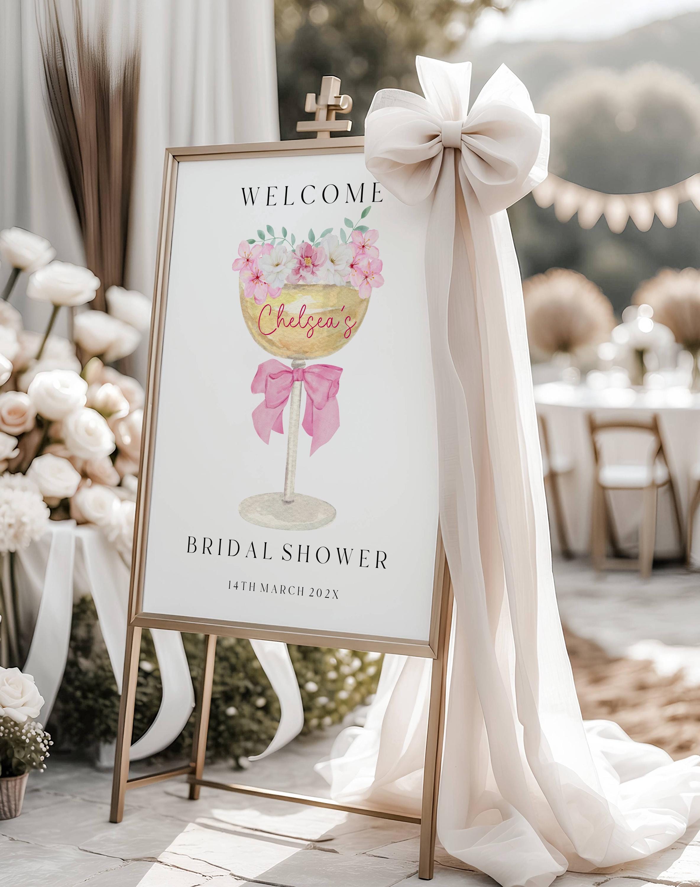 Elegant Champagne Bridal Shower Welcome Sign Template. An Instant download digital file for you to edit in your web browser with Templett straight after your purchase. Once personalized you are ready to print.