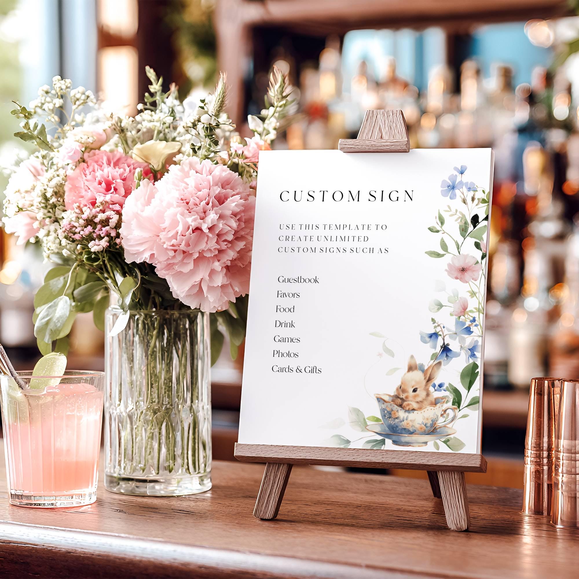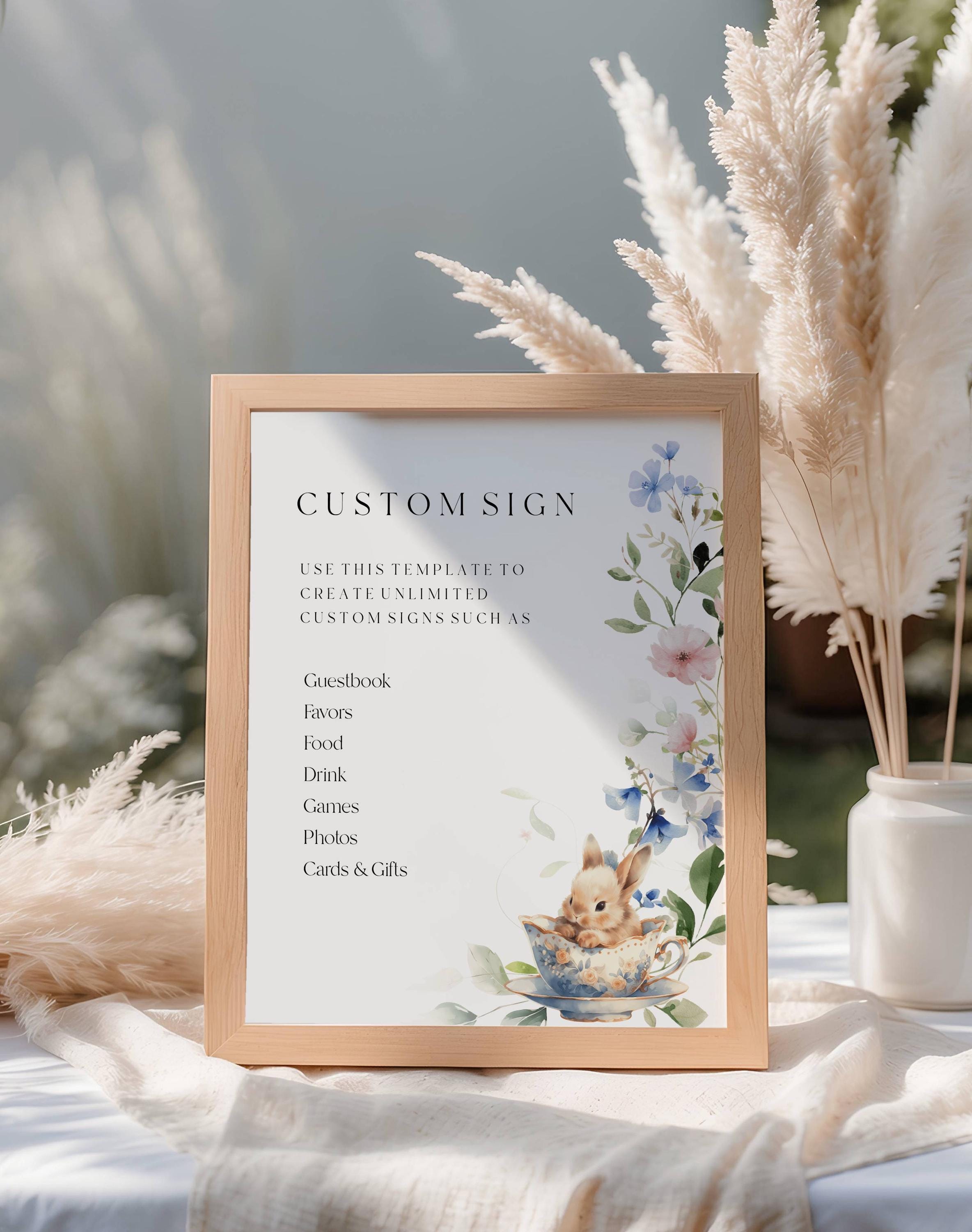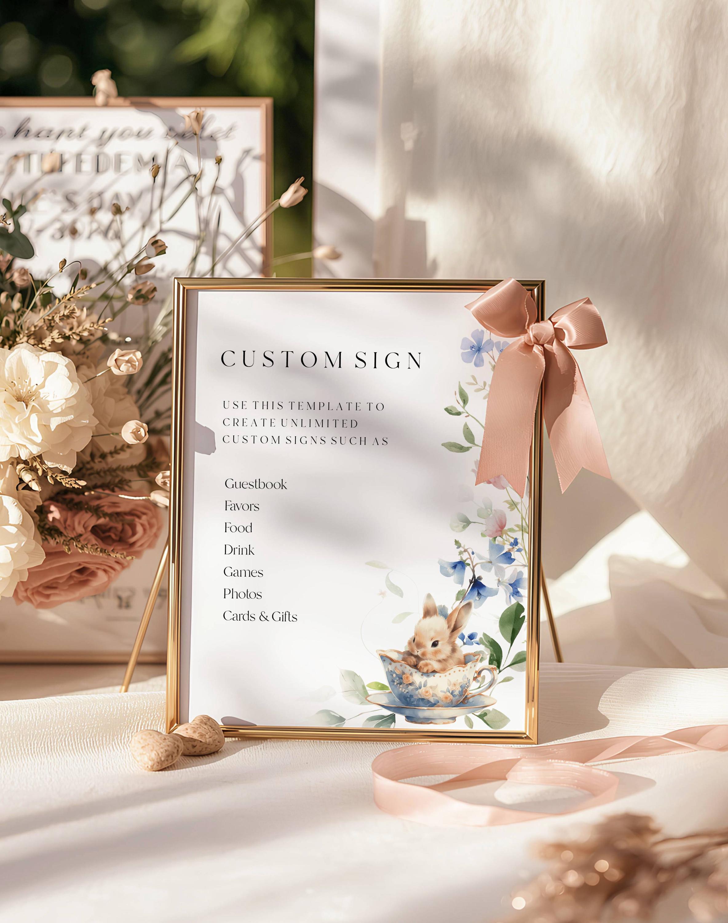 Wildflower Bunny Baby Shower Custom Sign Template. An Instant download digital file for you to edit in your web browser with Templett straight after your purchase. Once personalized you are ready to print.