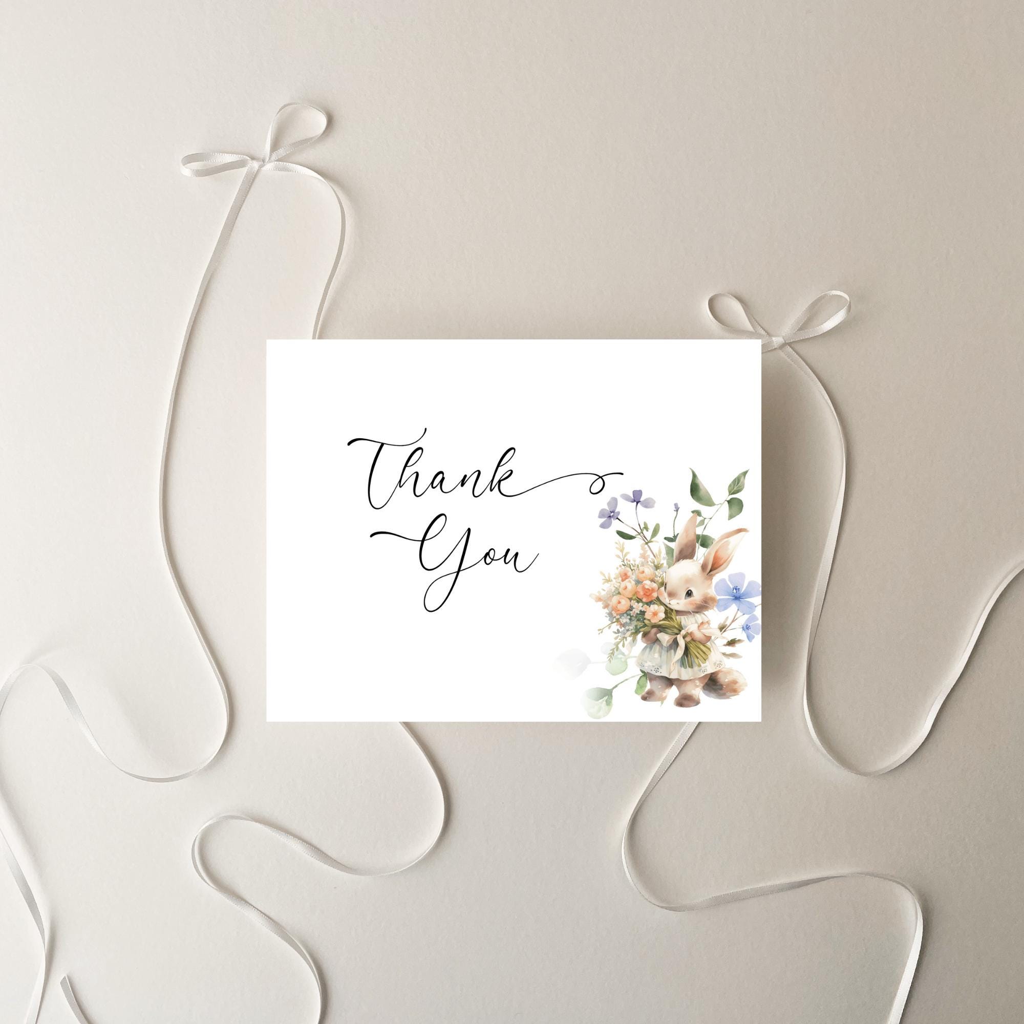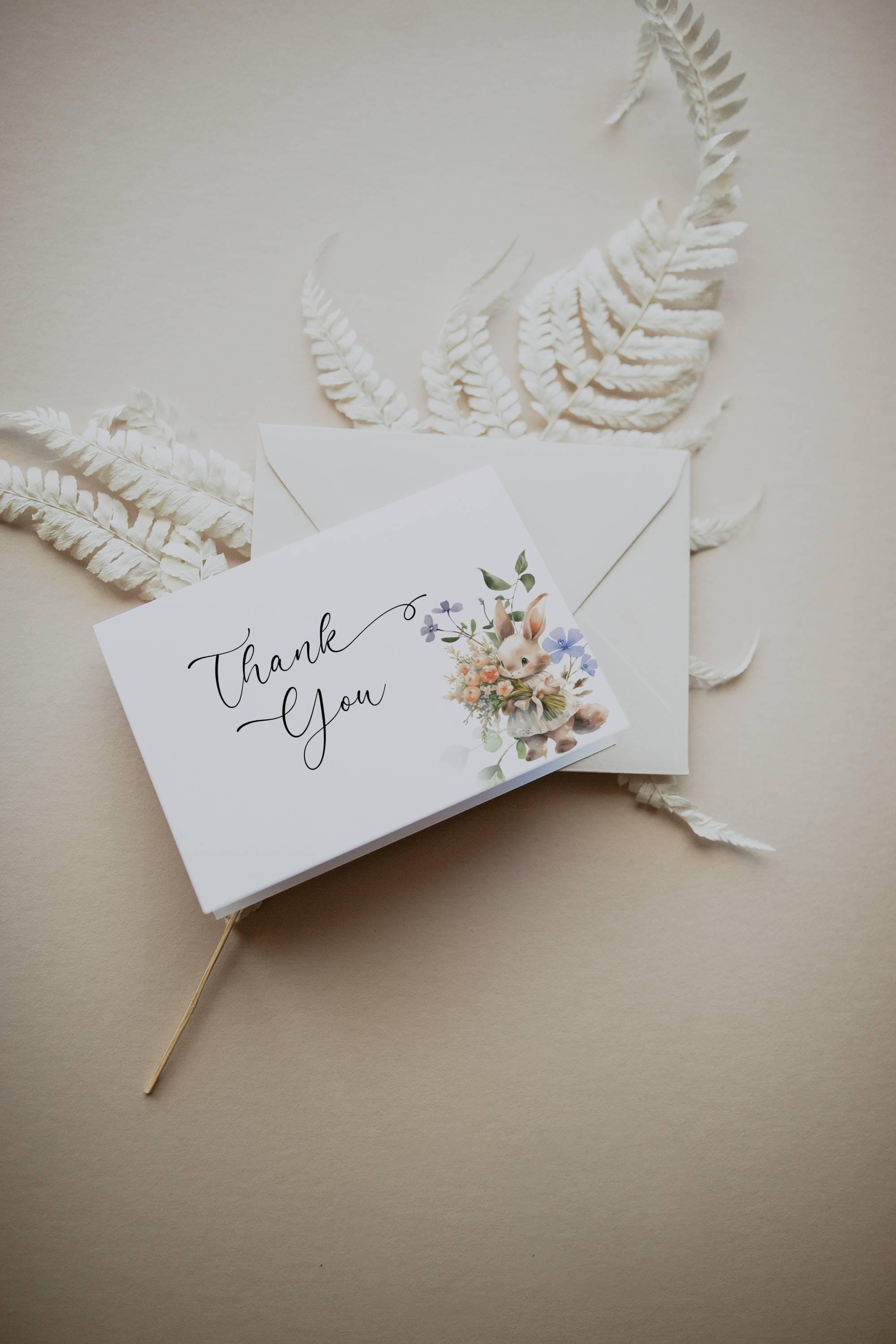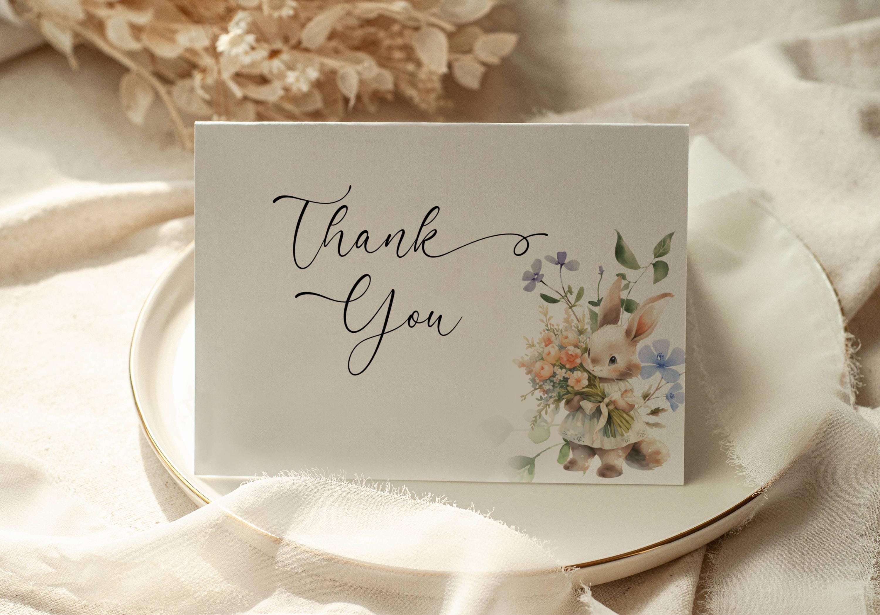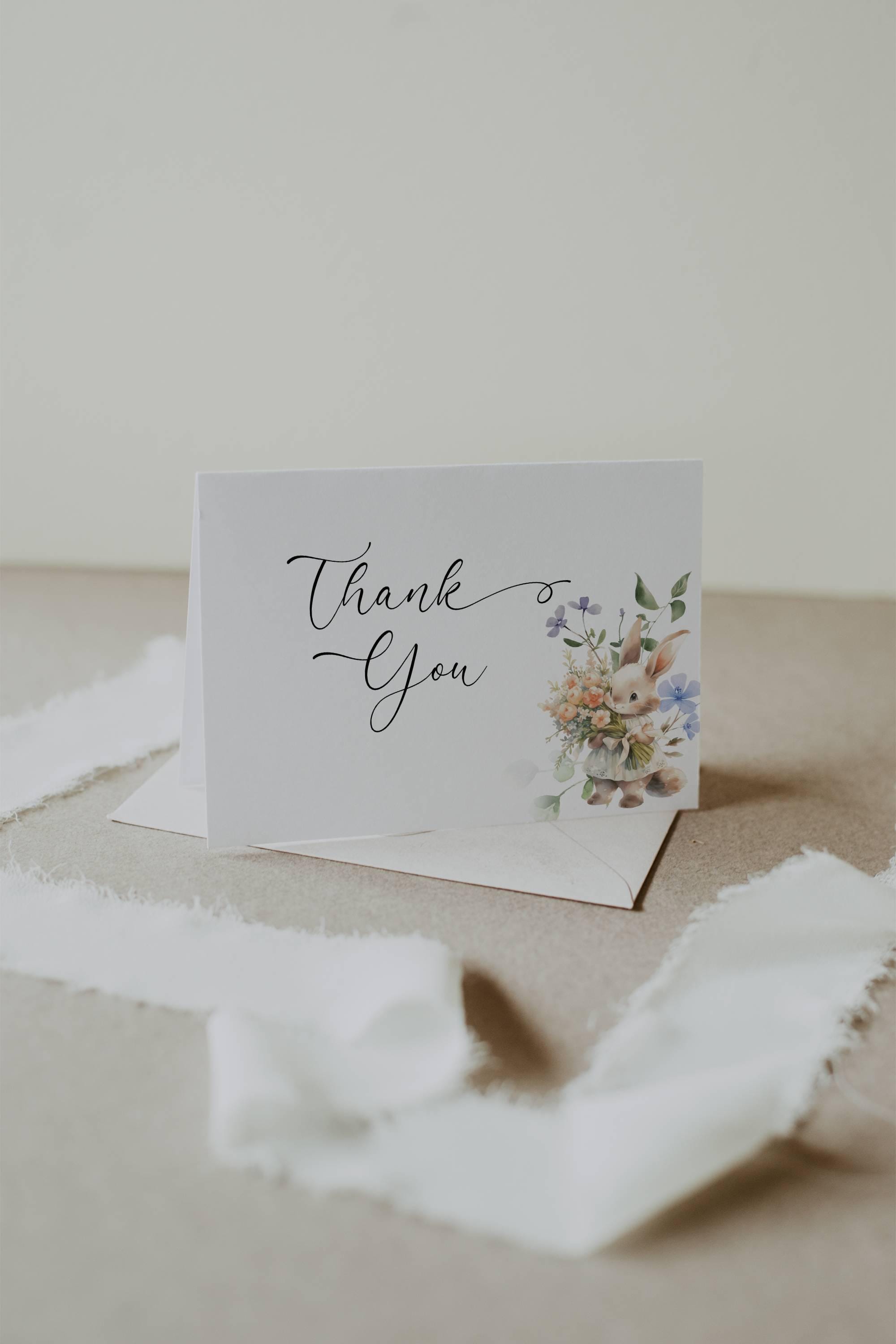 Wildflower Bunny Thank You Card Template. An Instant download digital file for you to edit in your web browser with Templett straight after your purchase. Once personalized you are ready to print.