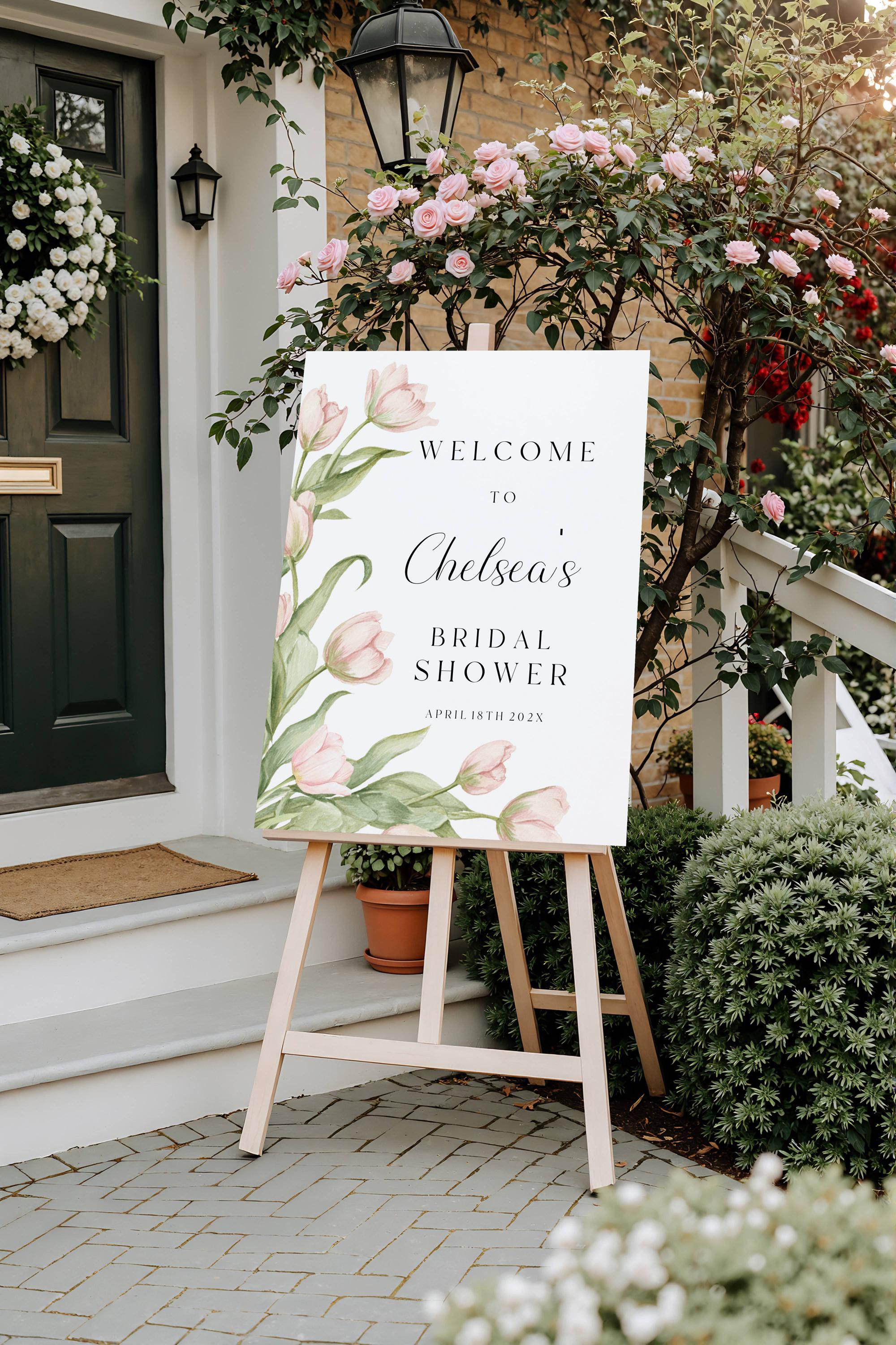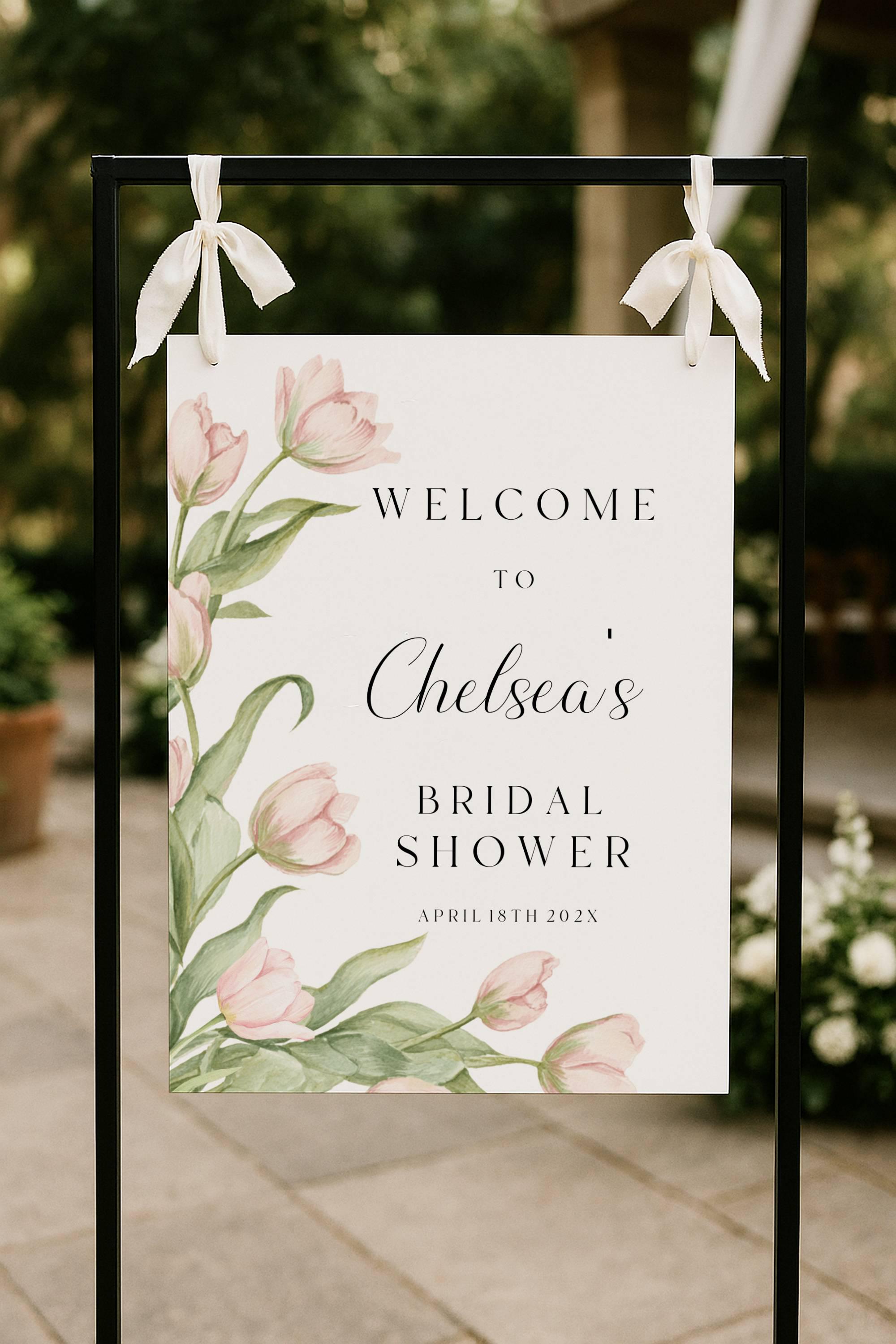Spring Flowers Bridal Shower Welcome Sign Template. An Instant download digital file for you to edit in your web browser with Templett straight after your purchase. Once personalized you are ready to print.