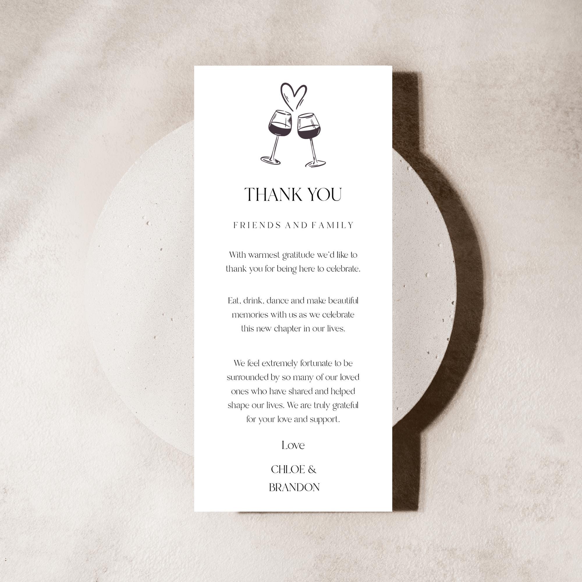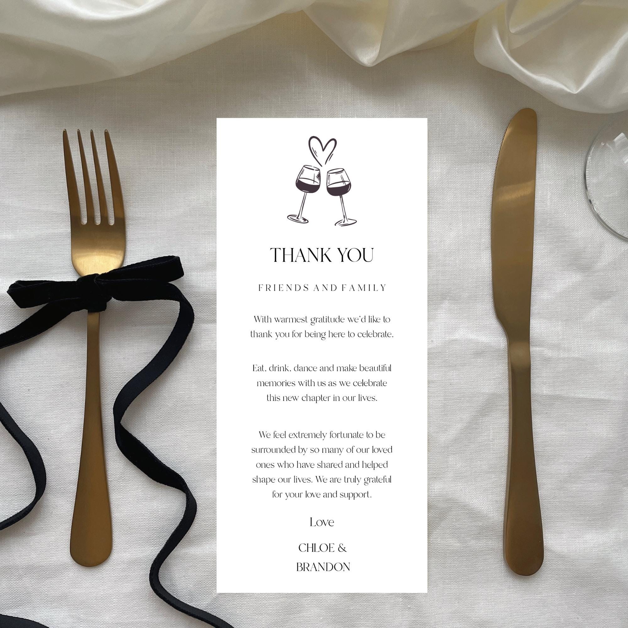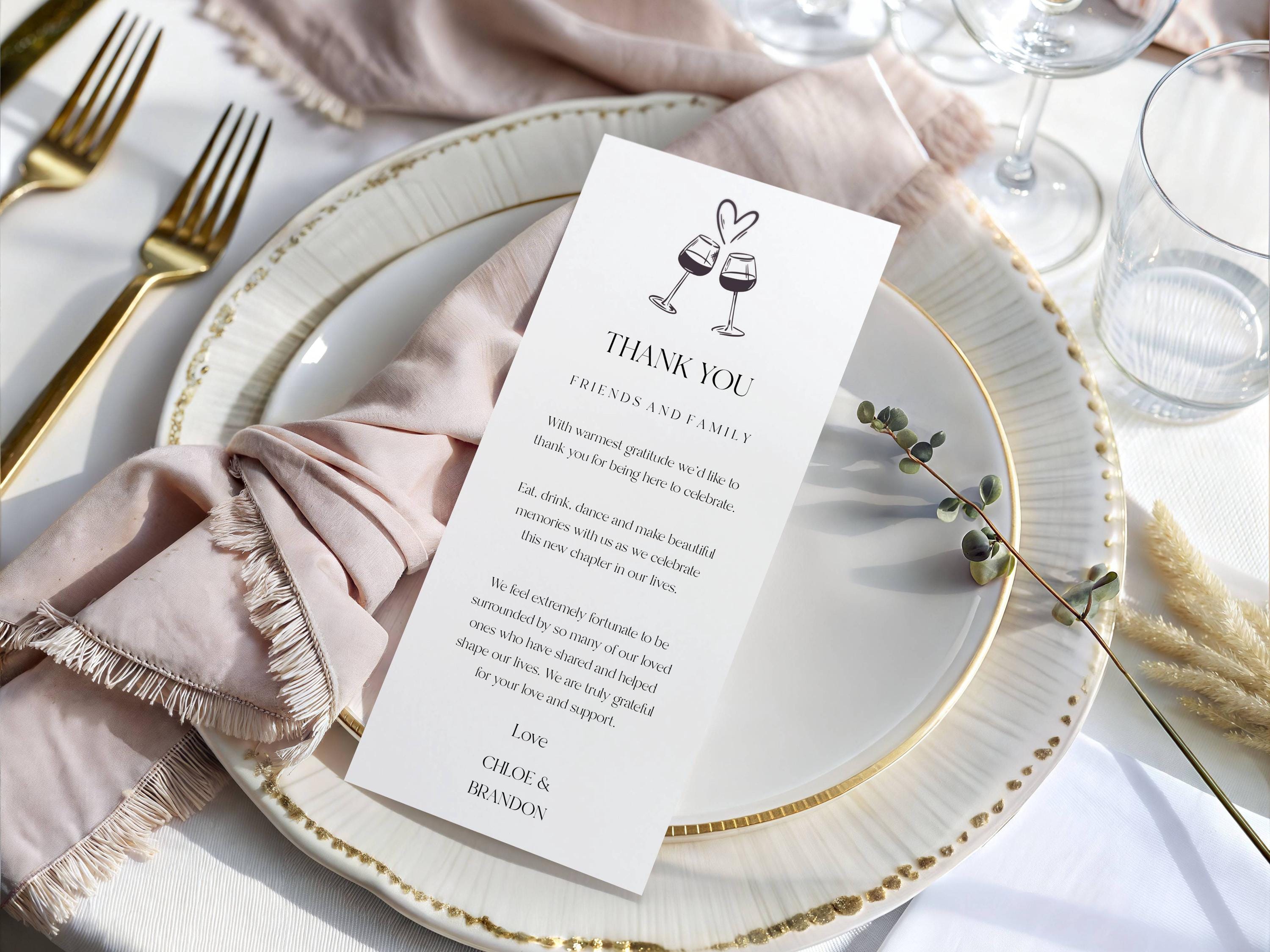 Wedding Thank You Place Card Template. An Instant download digital file for you to edit in your web browser with Templett straight after your purchase. Once personalized you are ready to print.