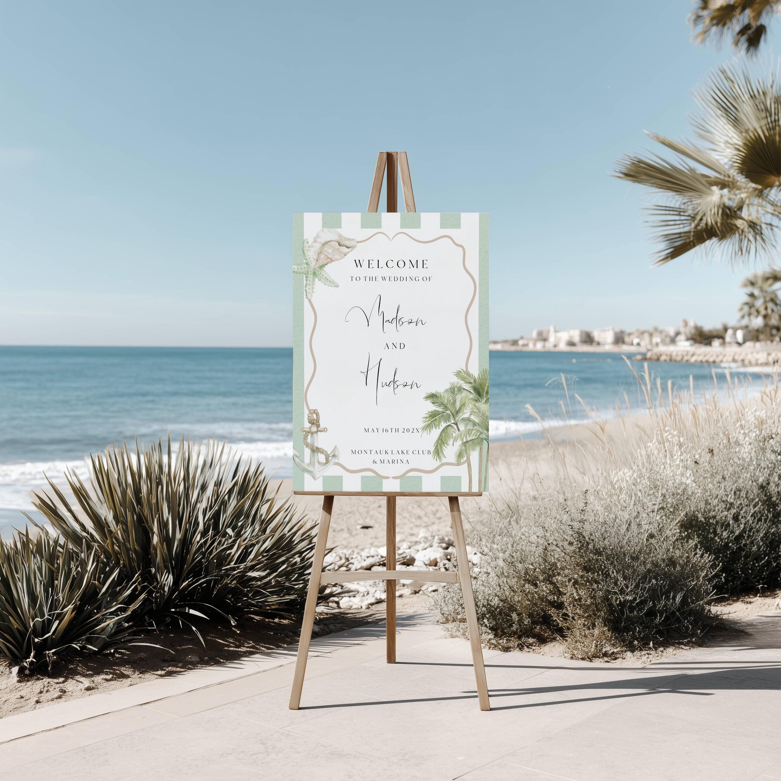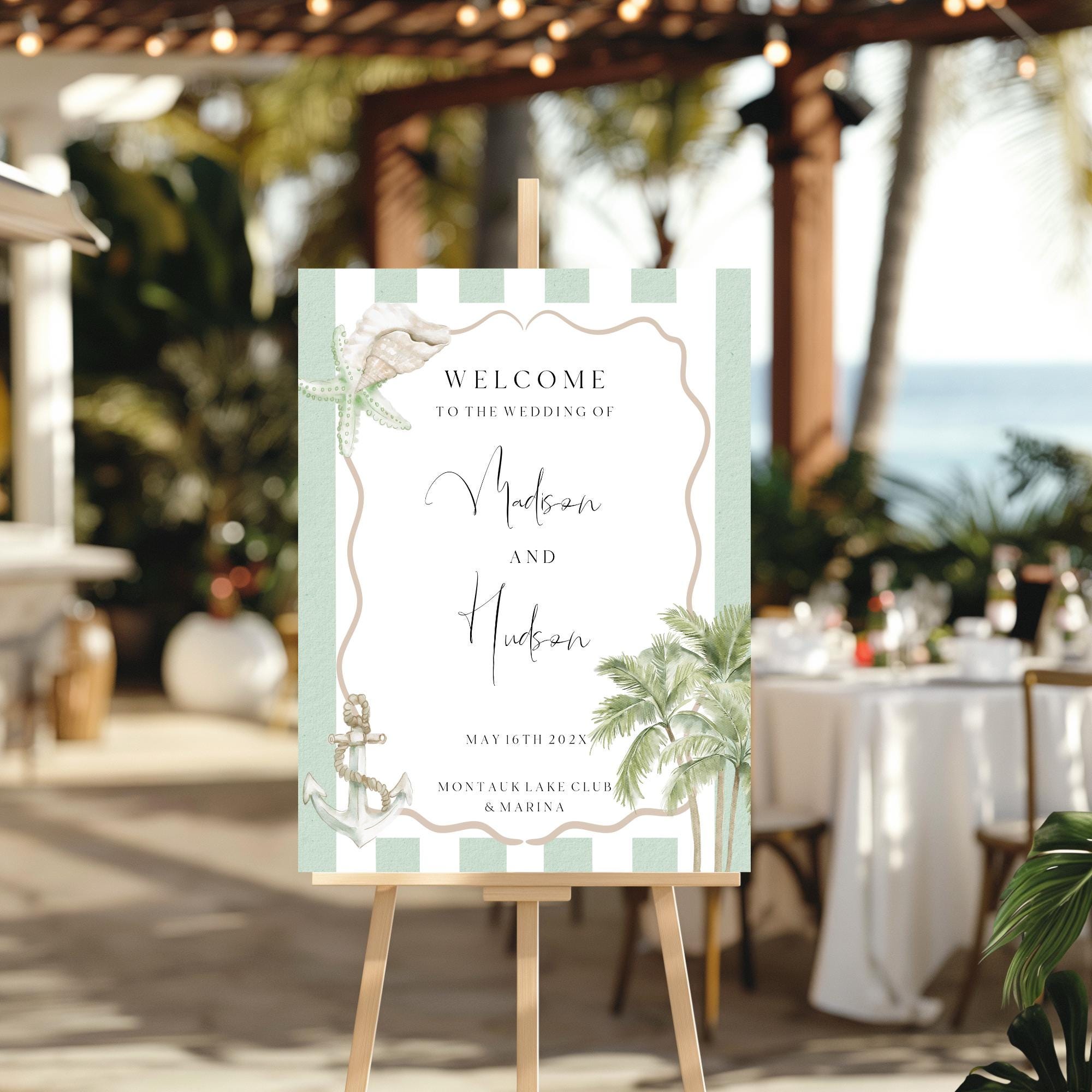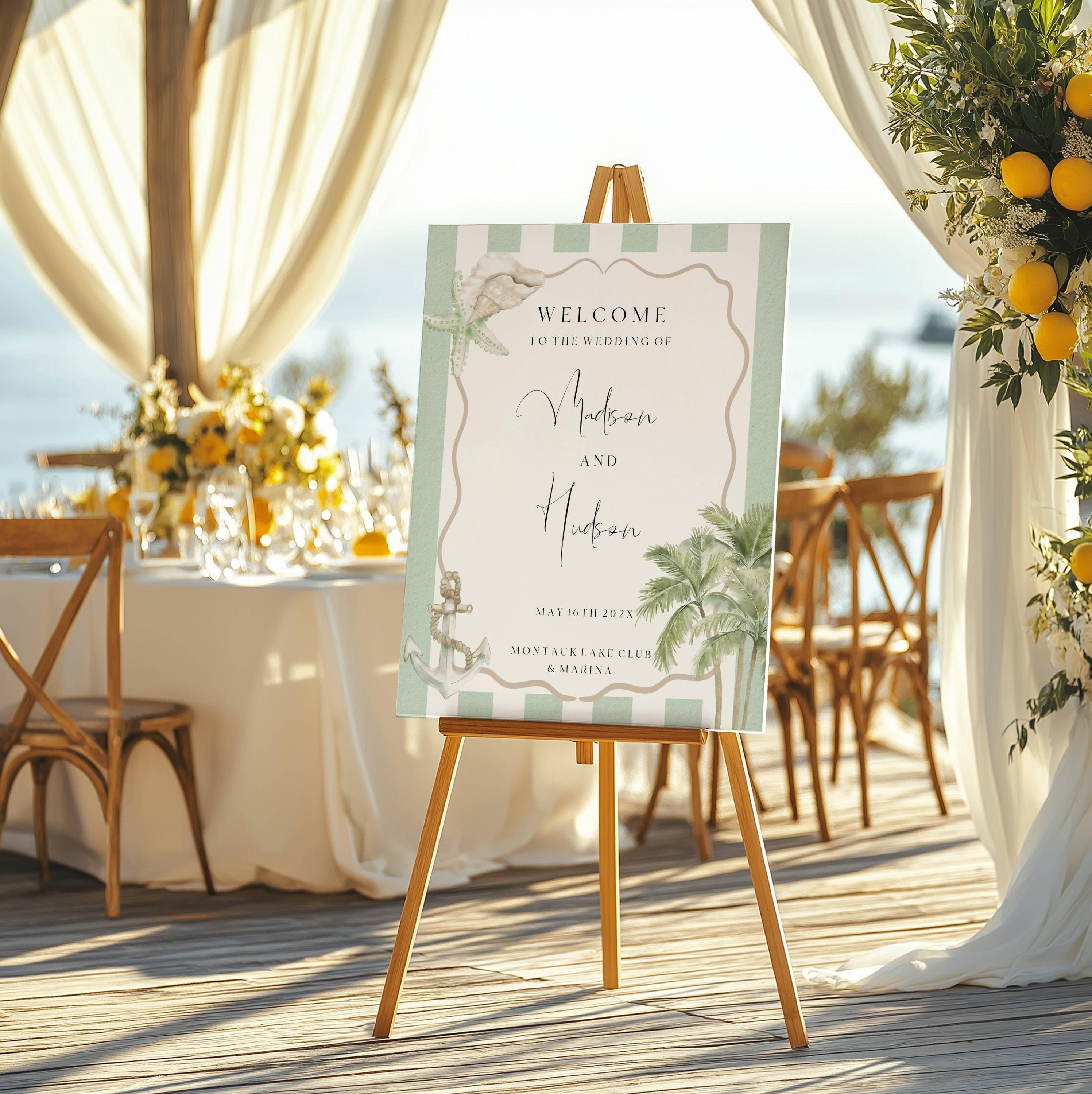 Coastal Wedding Welcome Sign Template. An Instant download digital file for you to edit in your web browser with Templett straight after your purchase. Once personalized you are ready to print.
