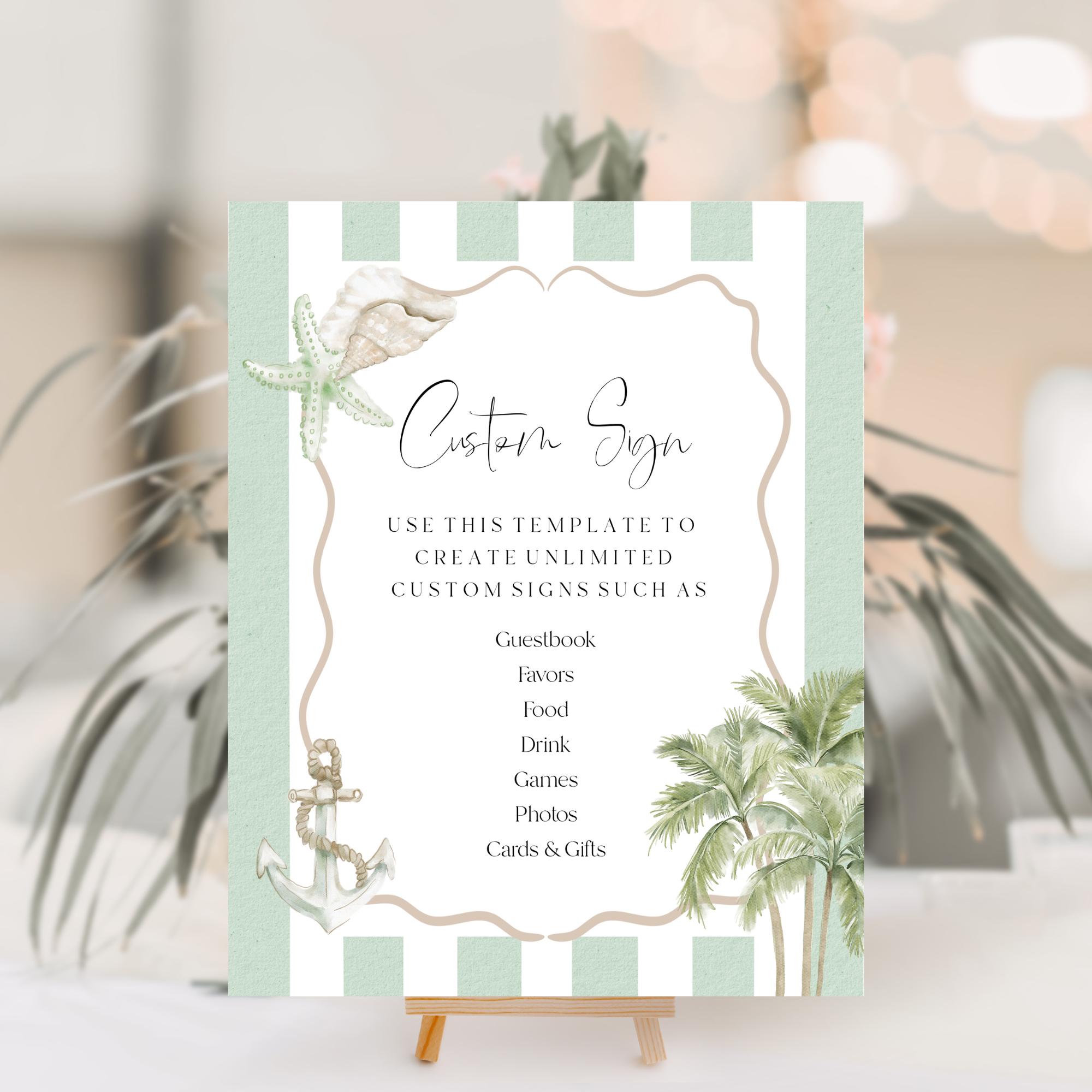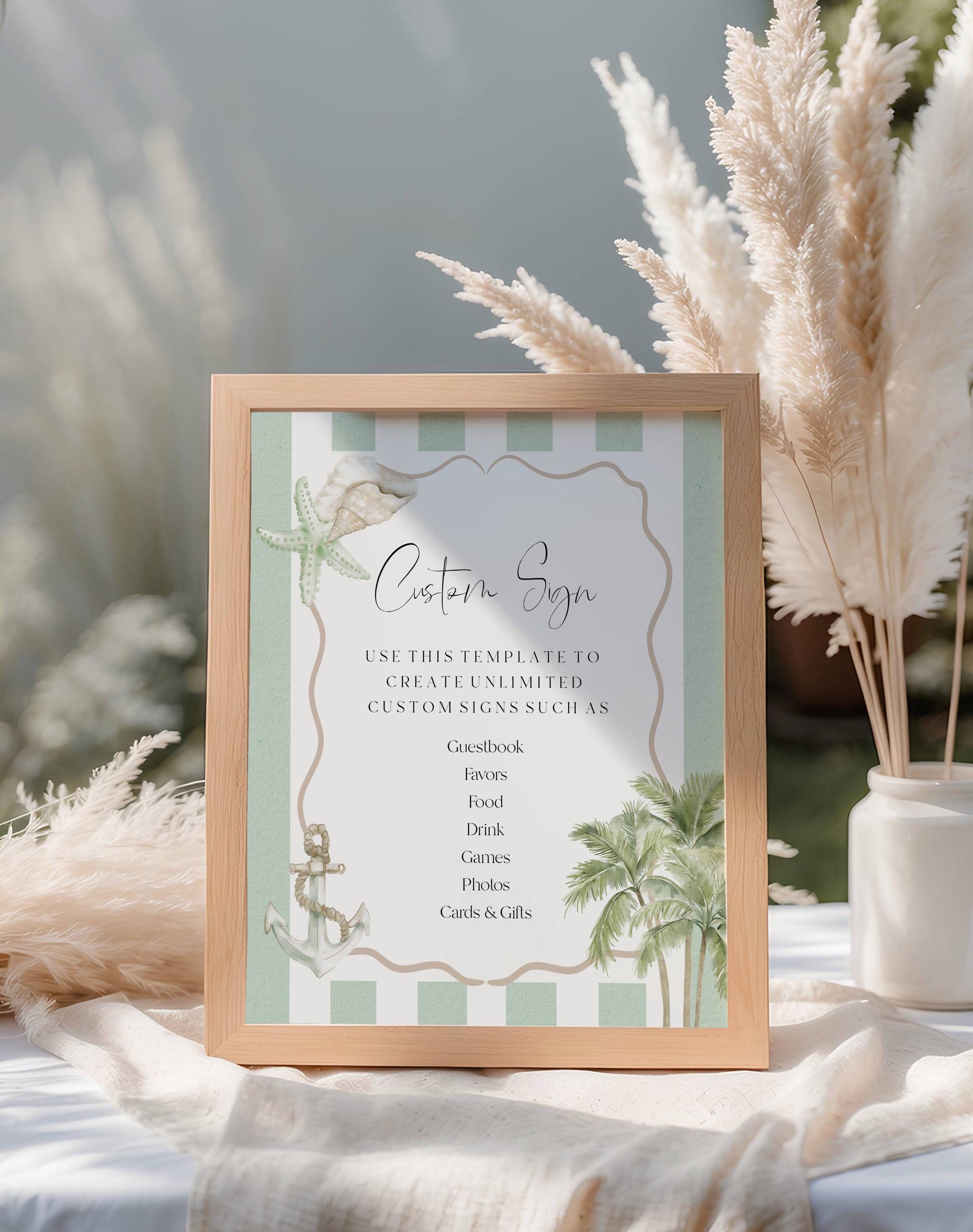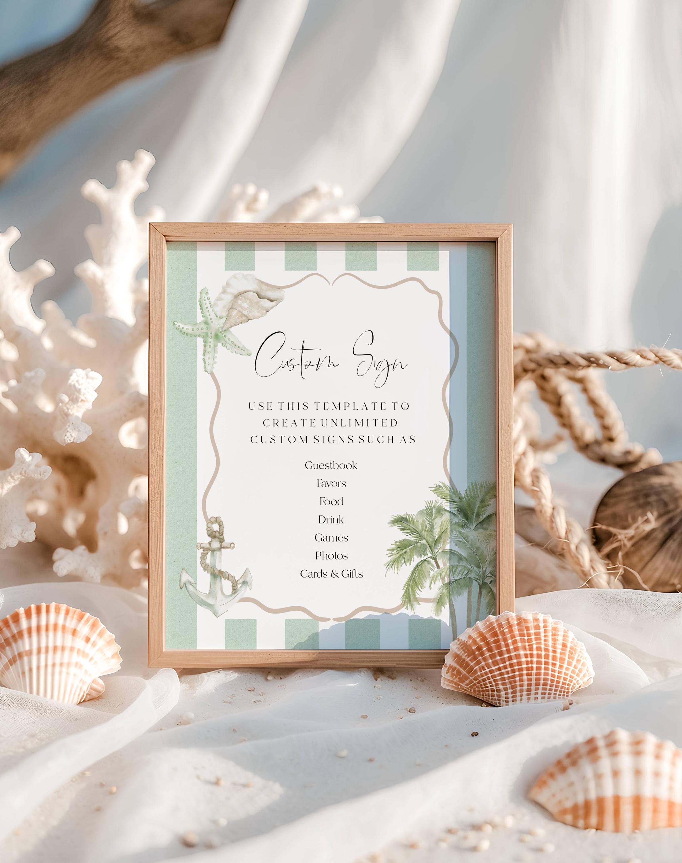 Coastal Customizable Sign Template. An Instant download digital file for you to edit in your web browser with Templett straight after your purchase. Once personalized you are ready to print.