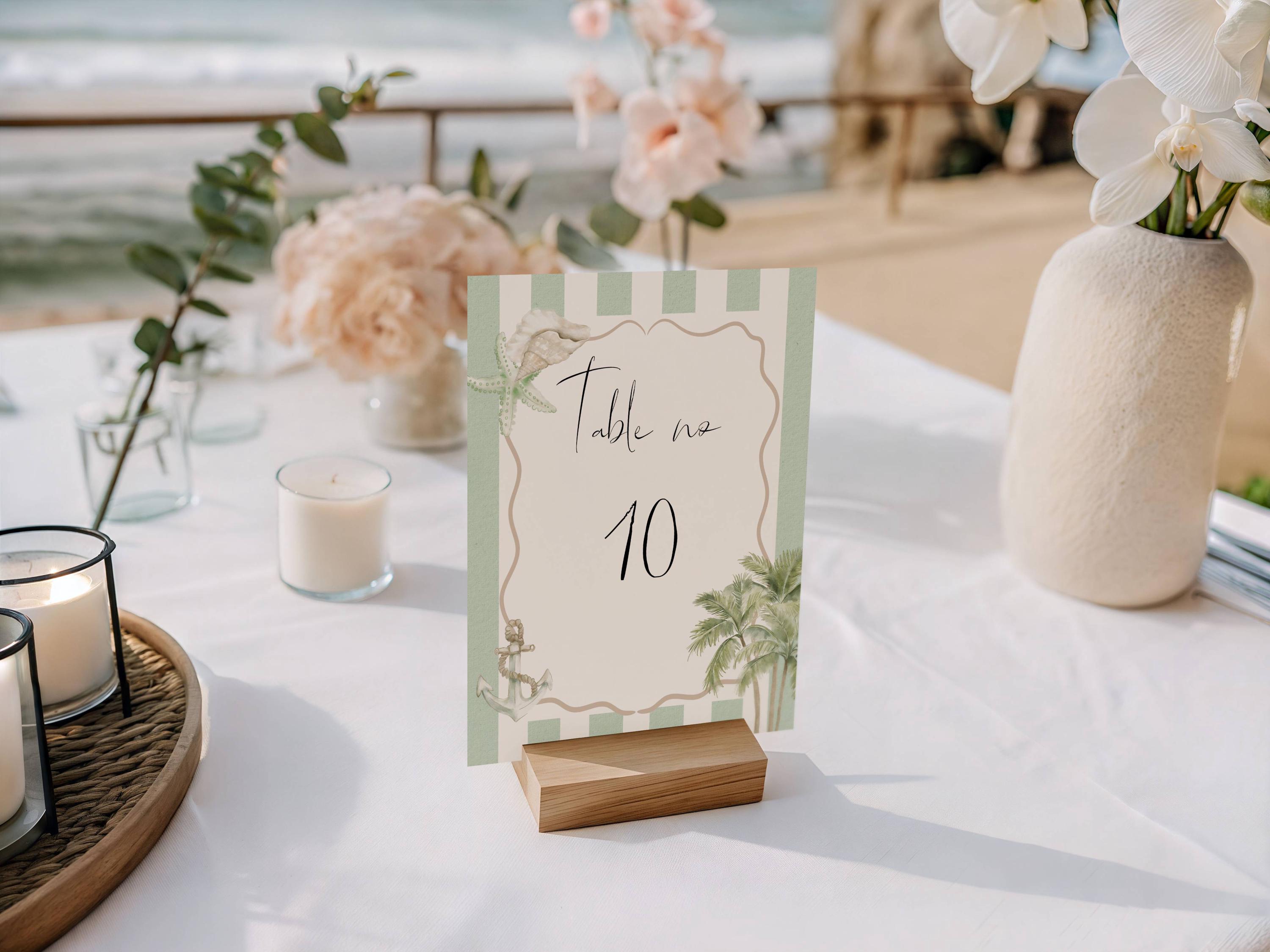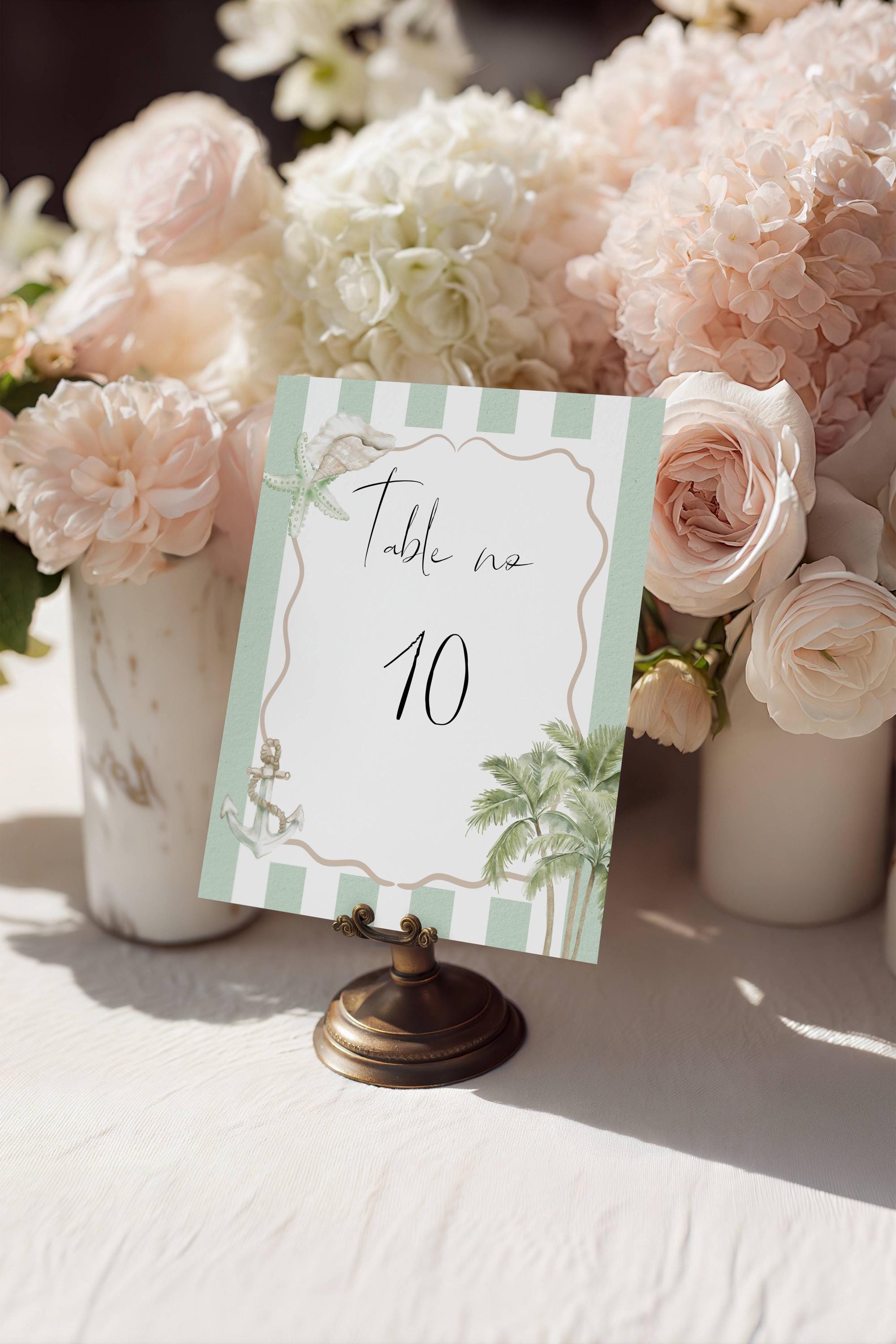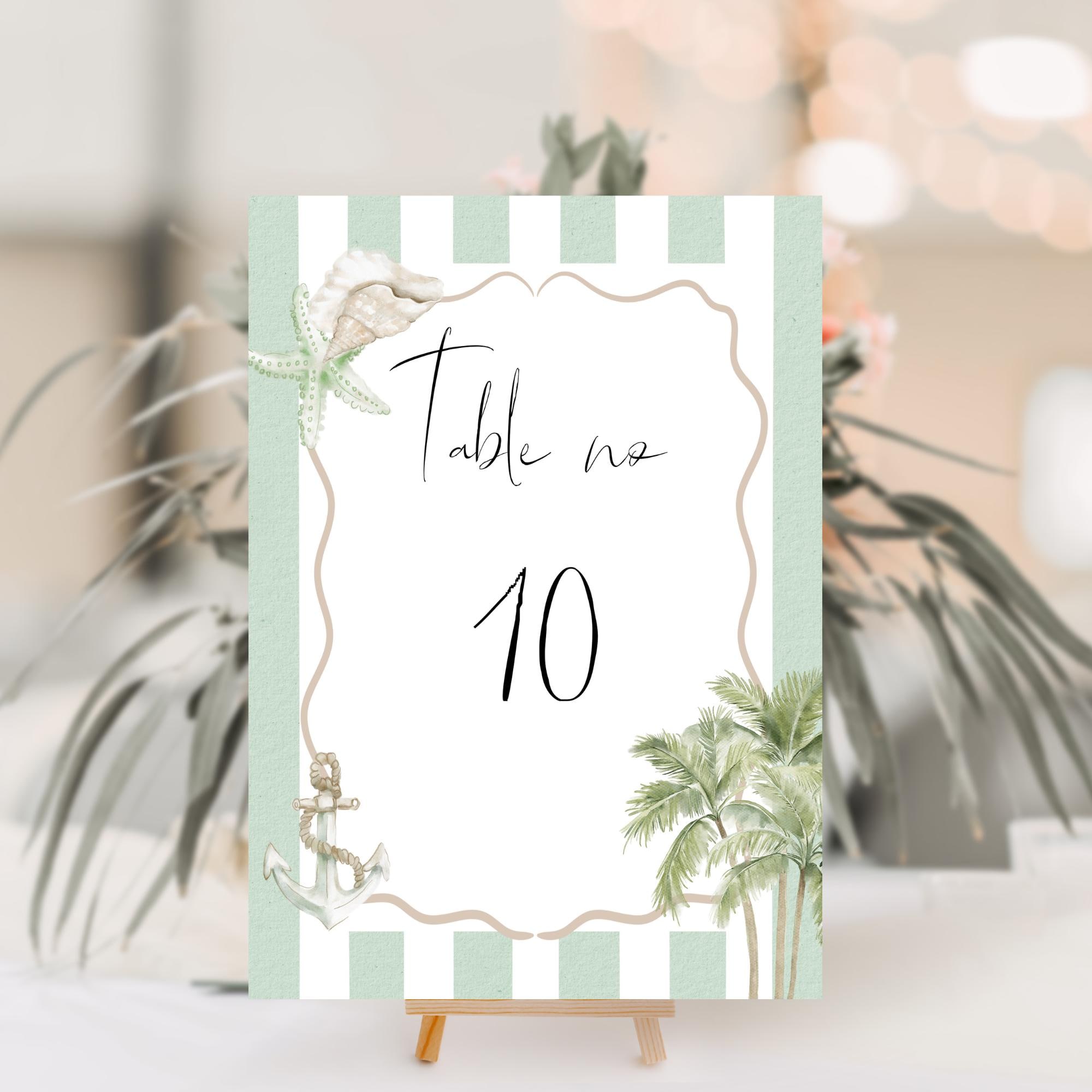 Coastal Wedding Table Number Template. An Instant download digital file for you to edit in your web browser with Templett straight after your purchase. Once personalized you are ready to print.