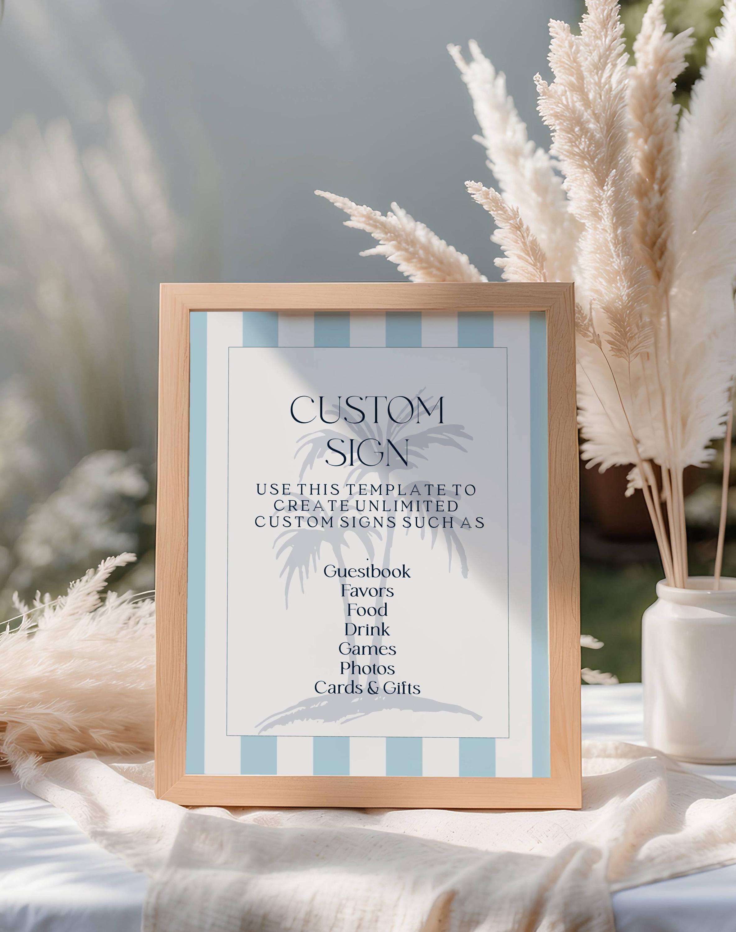 Coastal Design Customizable Sign Template. An Instant download digital file for you to edit in your web browser with Templett straight after your purchase. Once personalized you are ready to print.