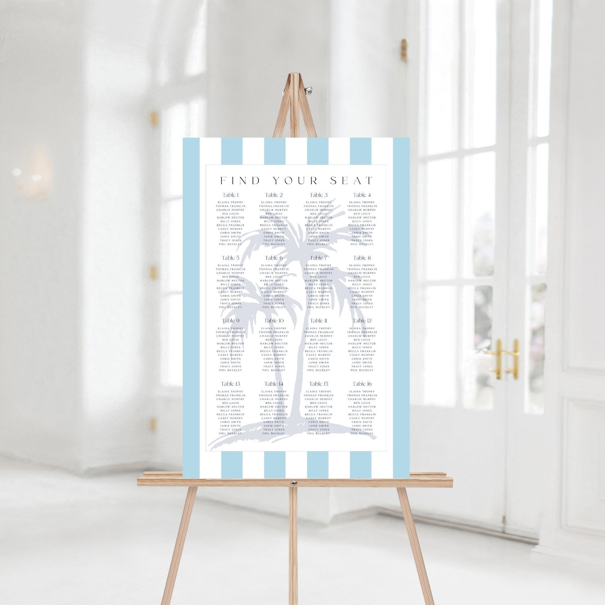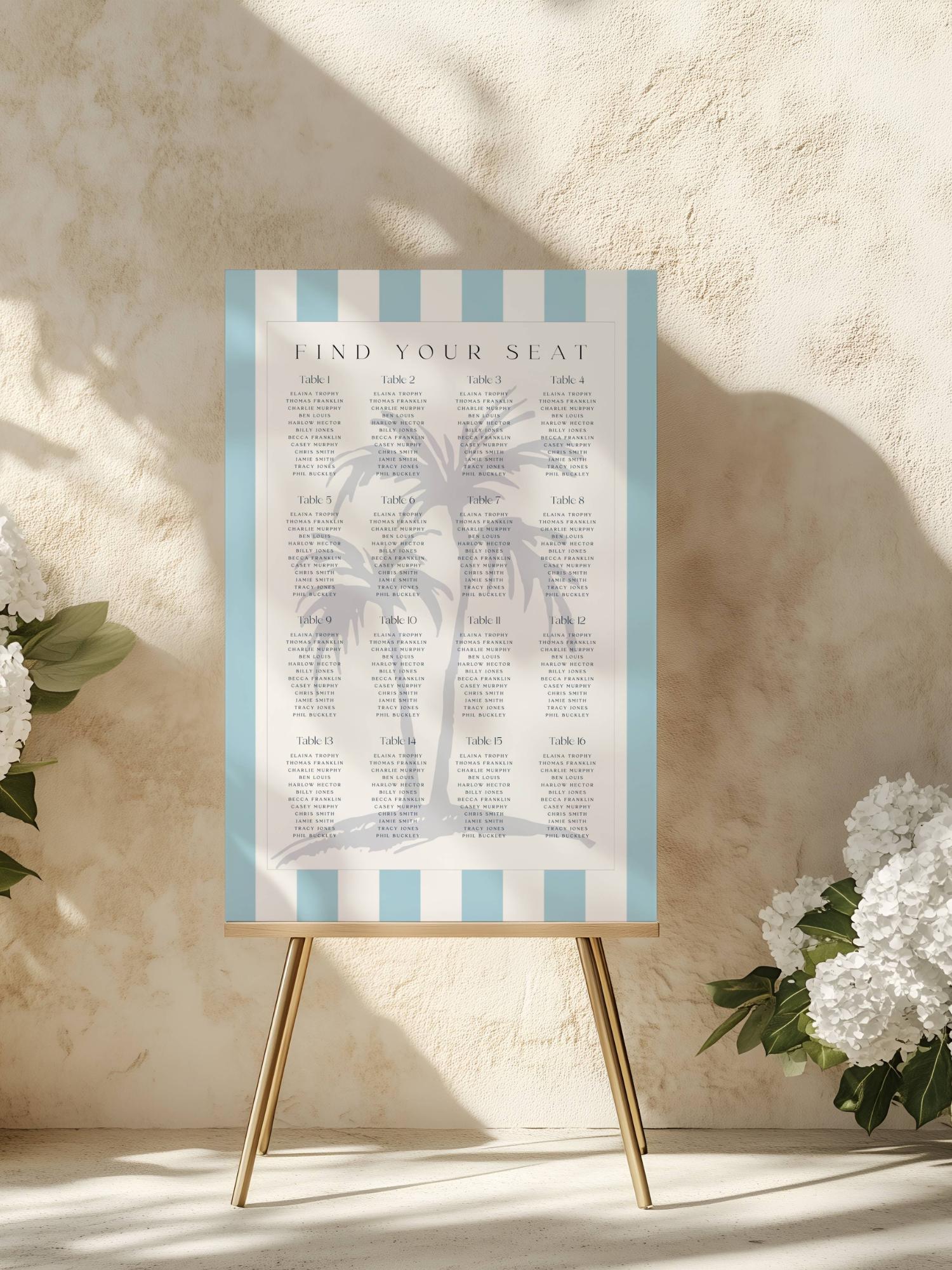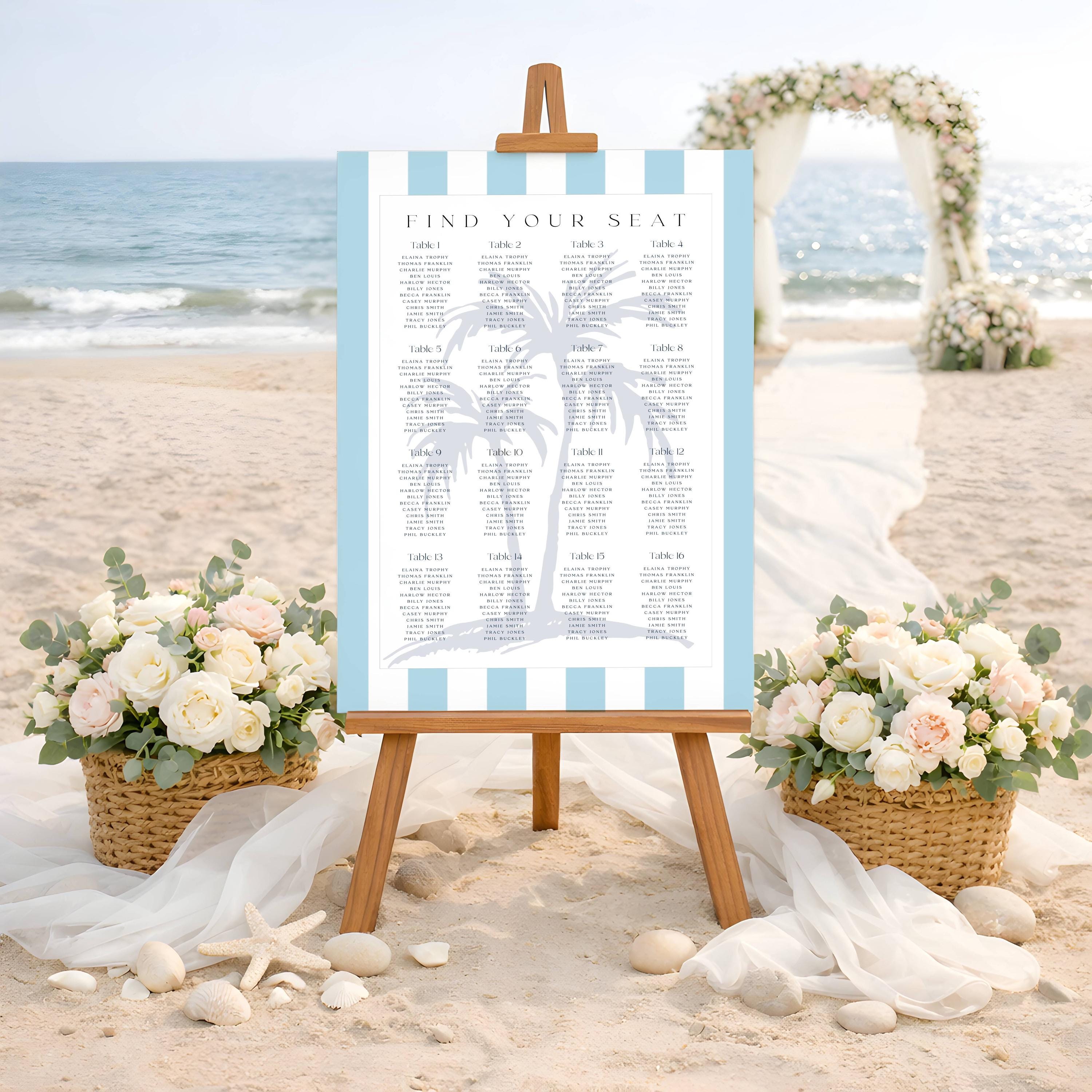 Coastal Design Wedding Seating Plan Template. An Instant download digital file for you to edit in your web browser with Templett straight after your purchase. Once personalized you are ready to print.