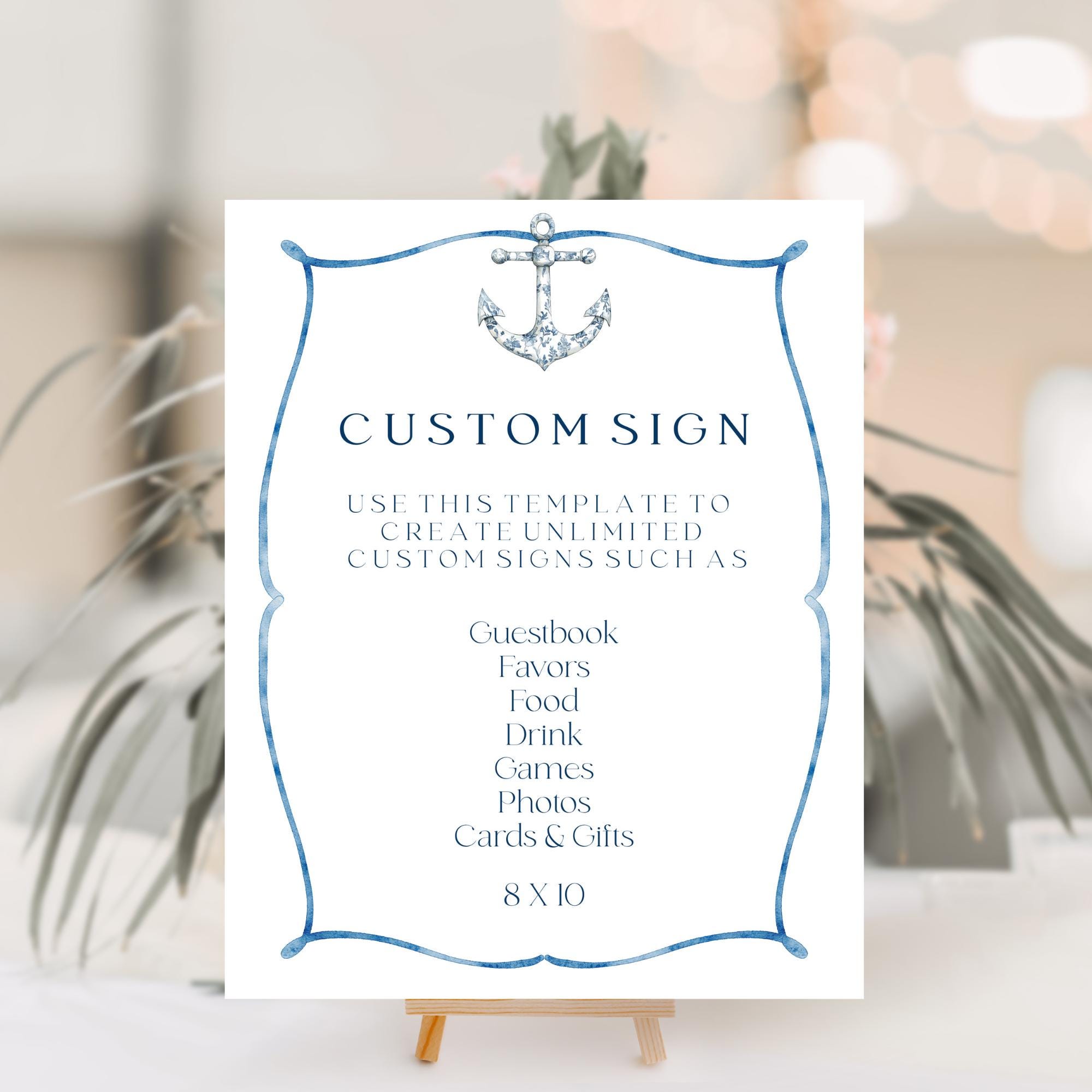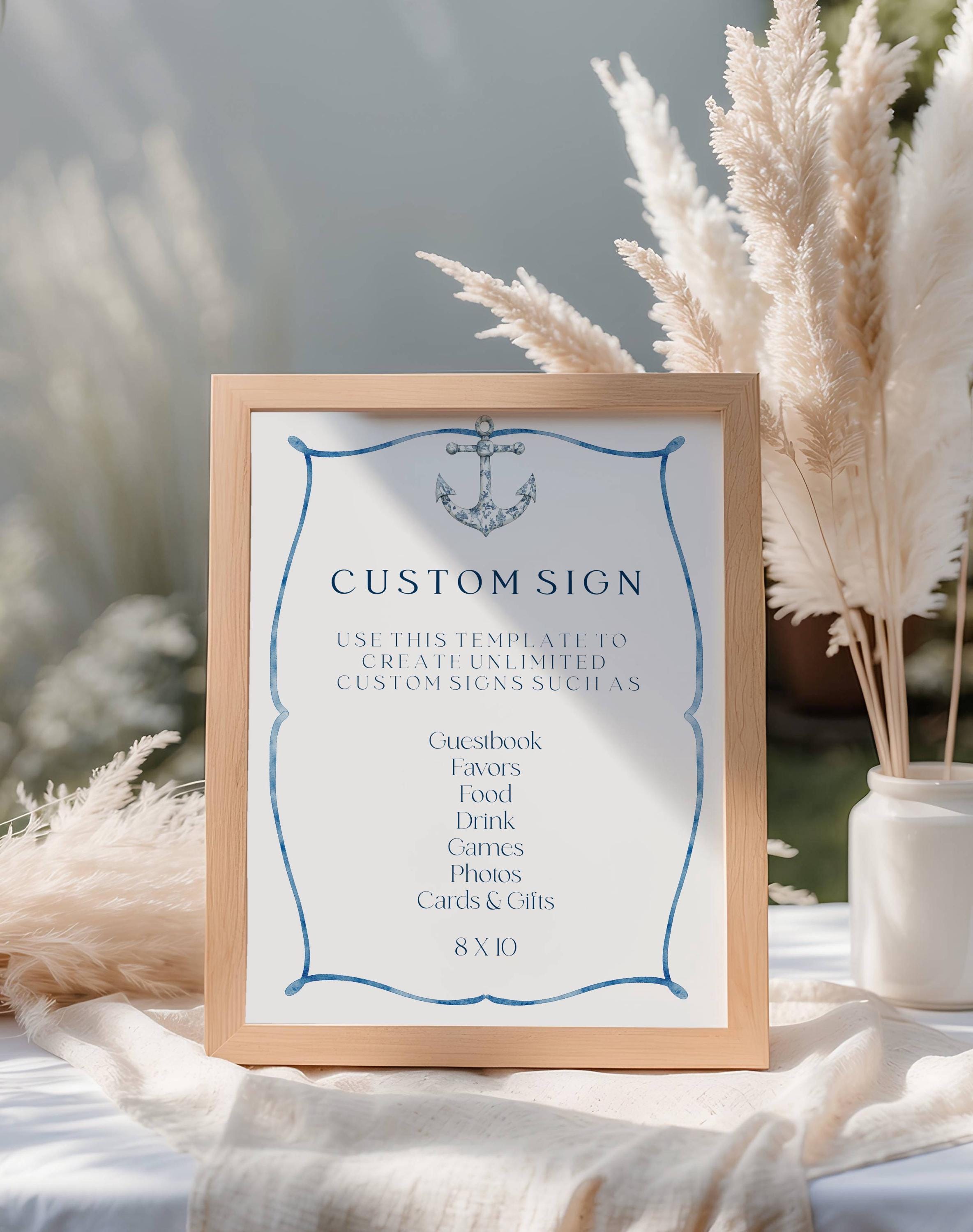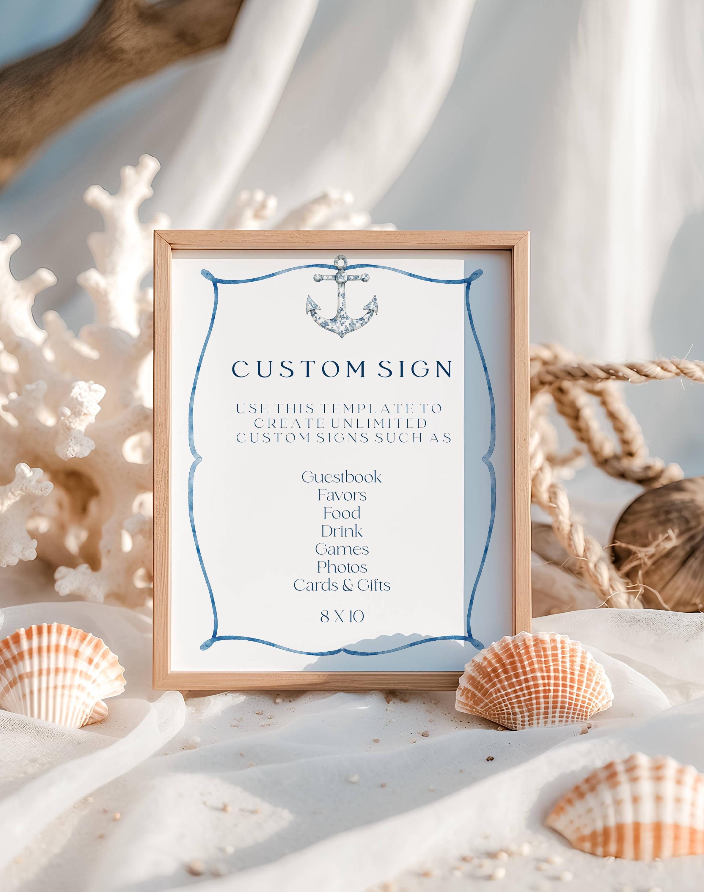 Coastal Customizable Table Sign Template. An Instant download digital file for you to edit in your web browser with Templett straight after your purchase. Once personalized you are ready to print.